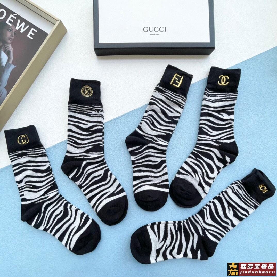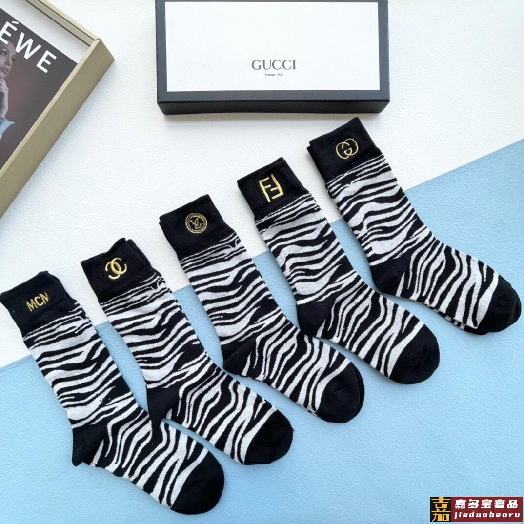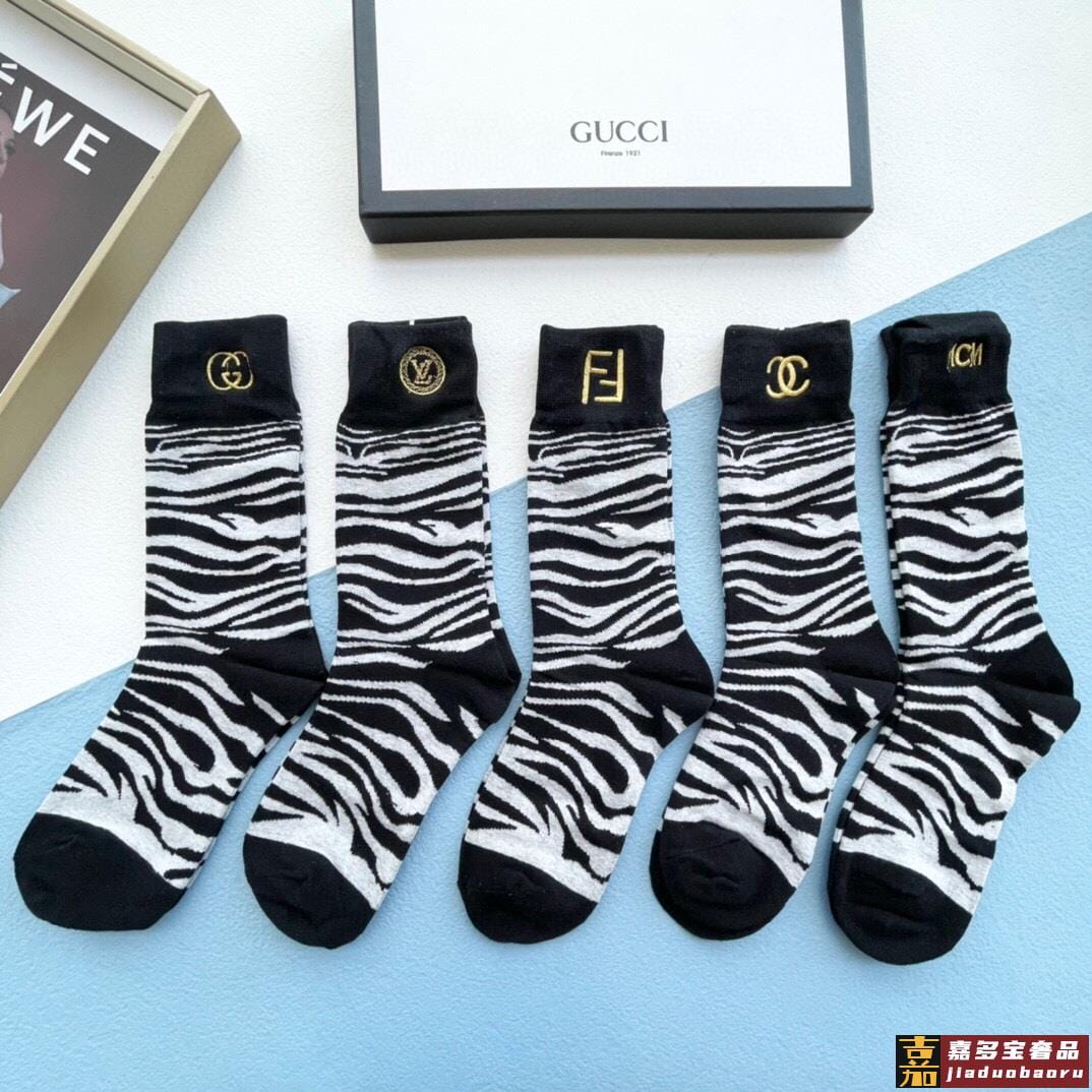 配包装一盒五双芬迪金丝线大新品男女款秋冬款中筒袜子超级经典的