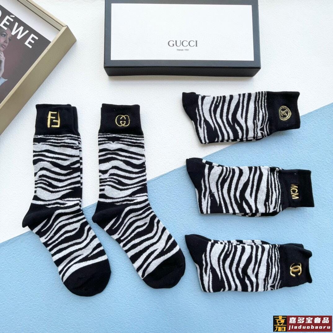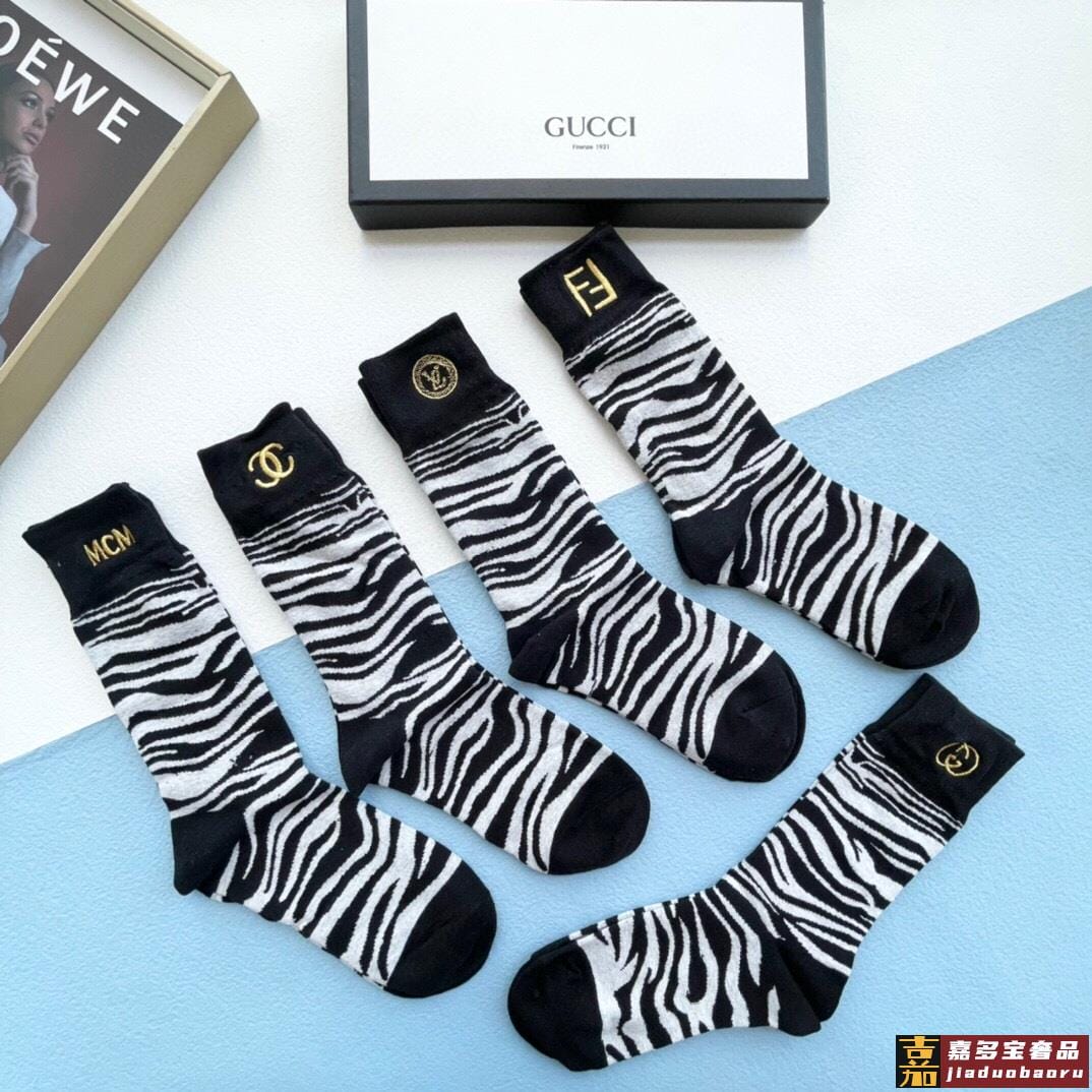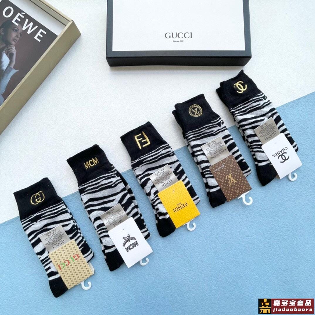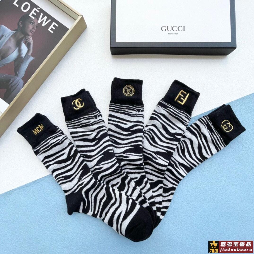 配包装一盒五双芬迪金丝线大新品男女款秋冬款中筒袜子超级经典的