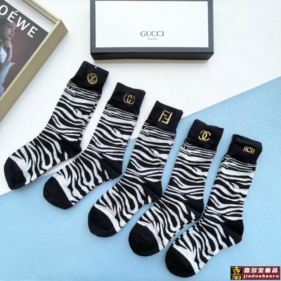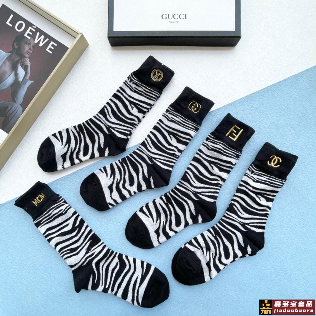 配包装一盒五双欧美大牌爆款斑马刺绣长筒袜高版本好看到爆炸欧美