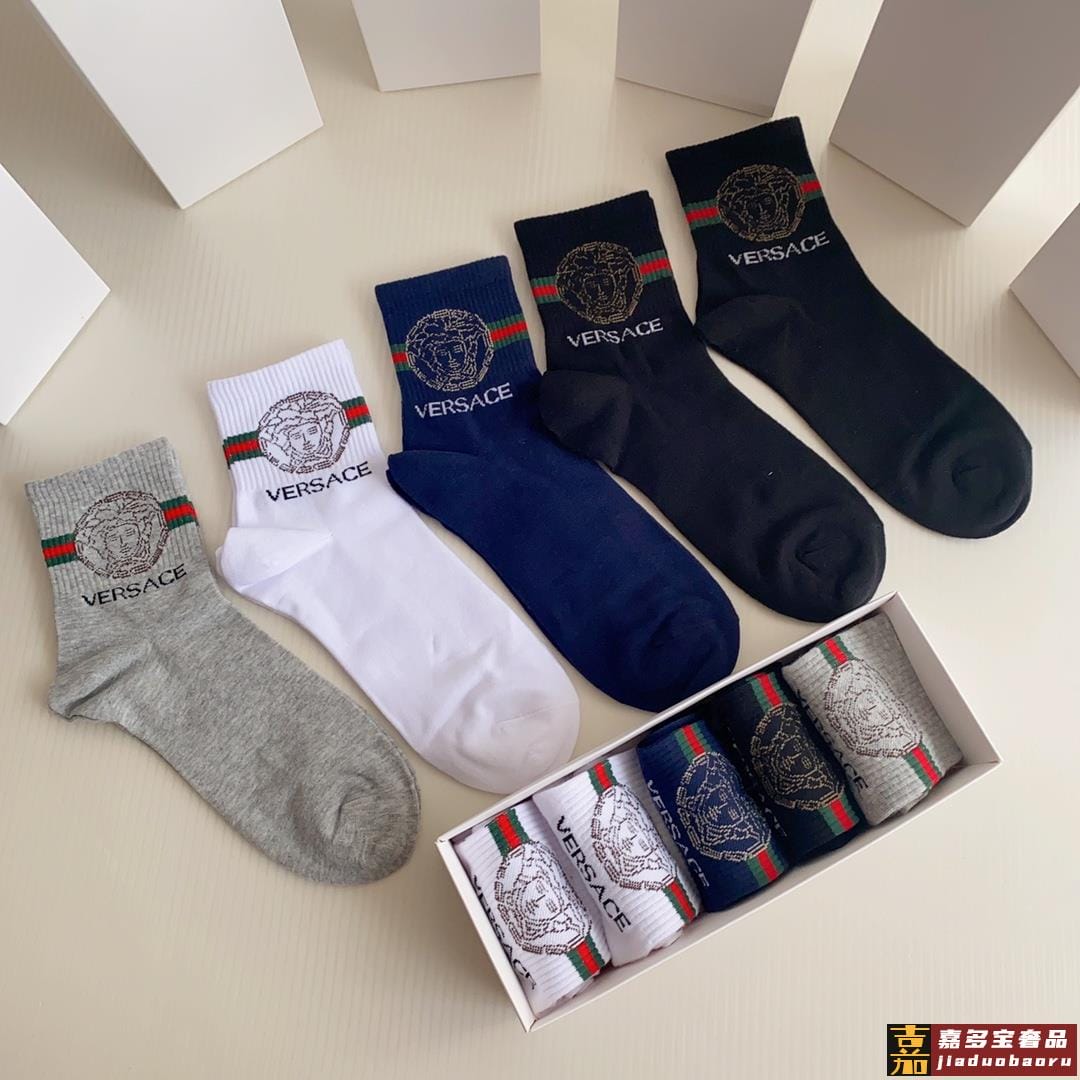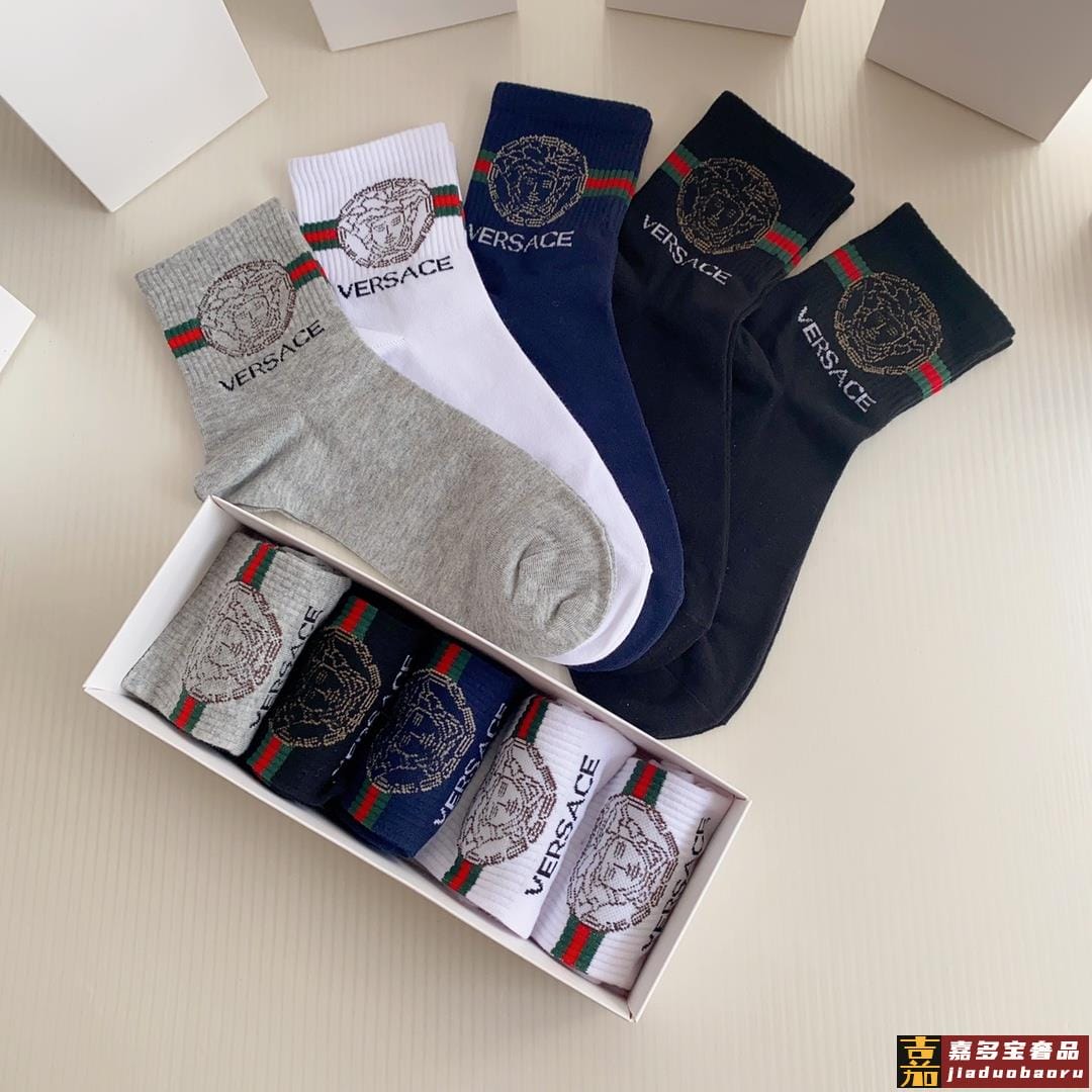 特配包装范思哲新款经典中长款堆堆袜袜子一盒五双专柜同步筒袜袜
