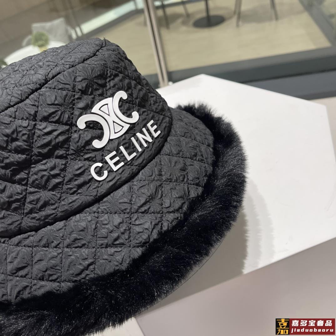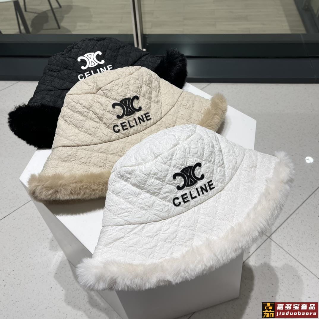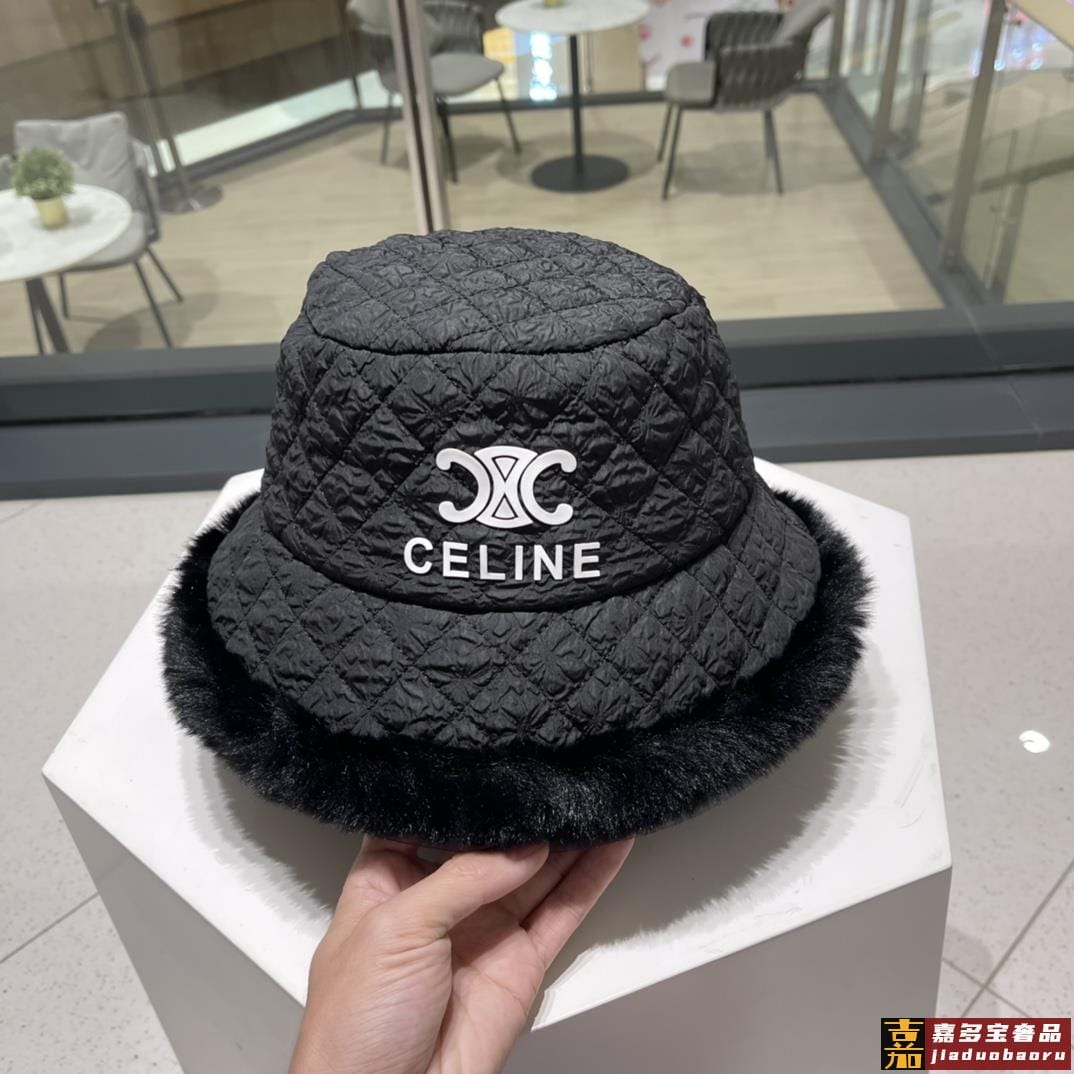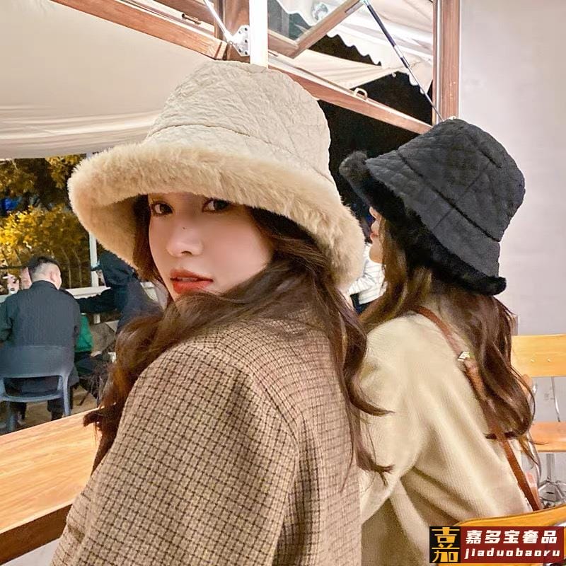赛琳韩国秋冬新款简约夹棉毛绒平顶菱格渔夫帽女保暖防寒毛绒盆帽