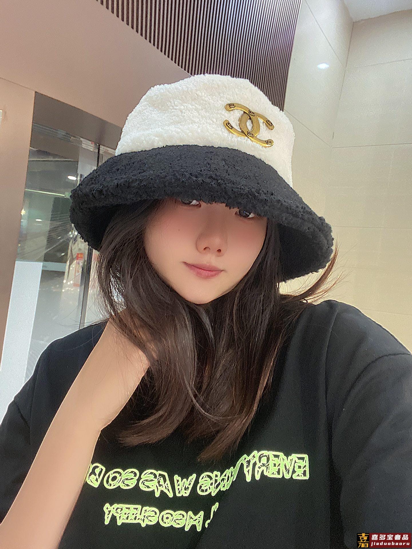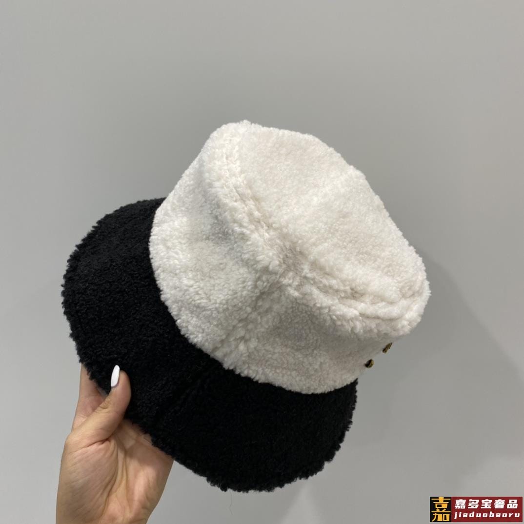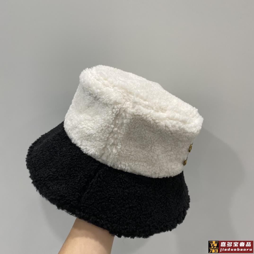 香奈儿秋冬新款渔夫帽拼色羊羔毛边礼帽跑量个色头围