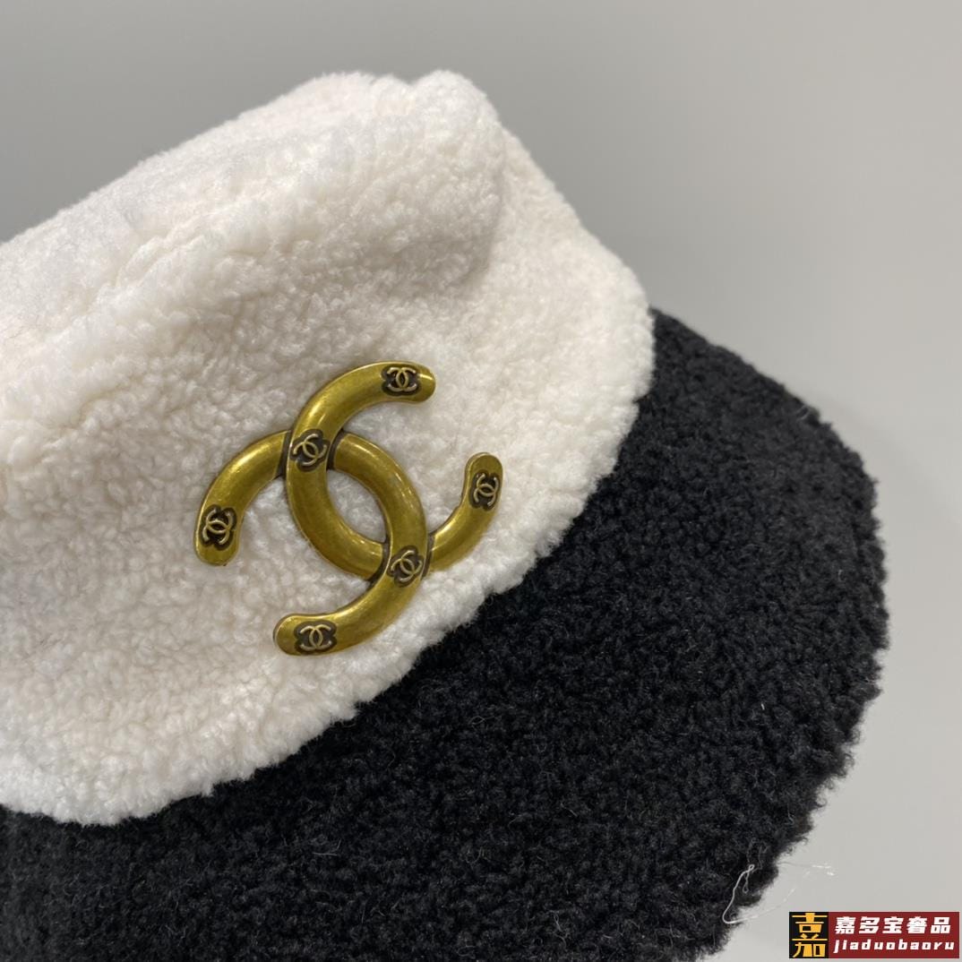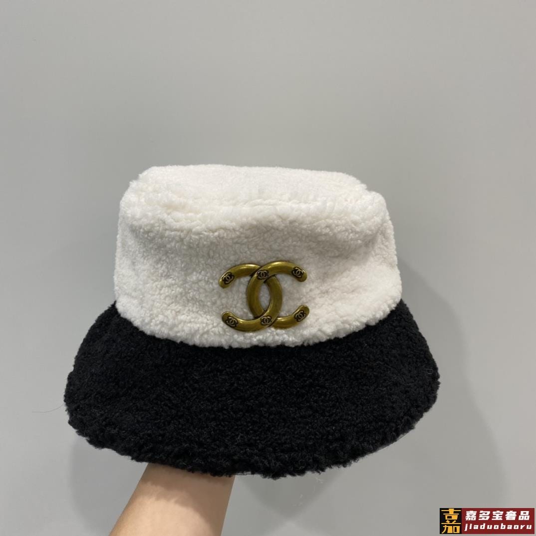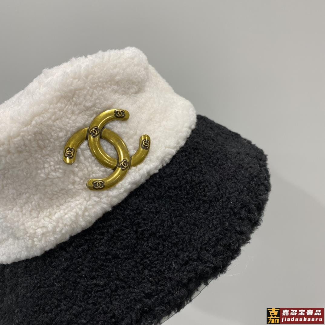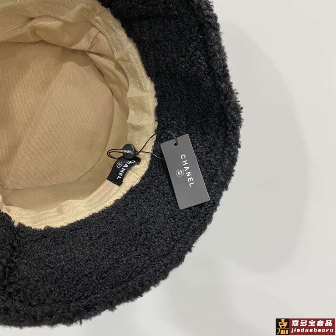 香奈儿秋冬新款渔夫帽拼色羊羔毛边礼帽跑量个色头围