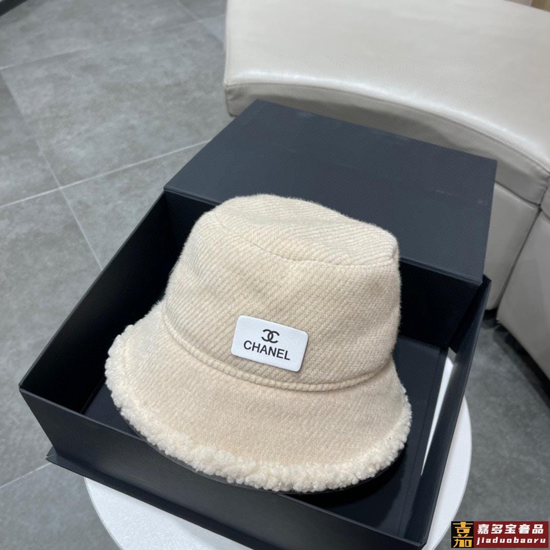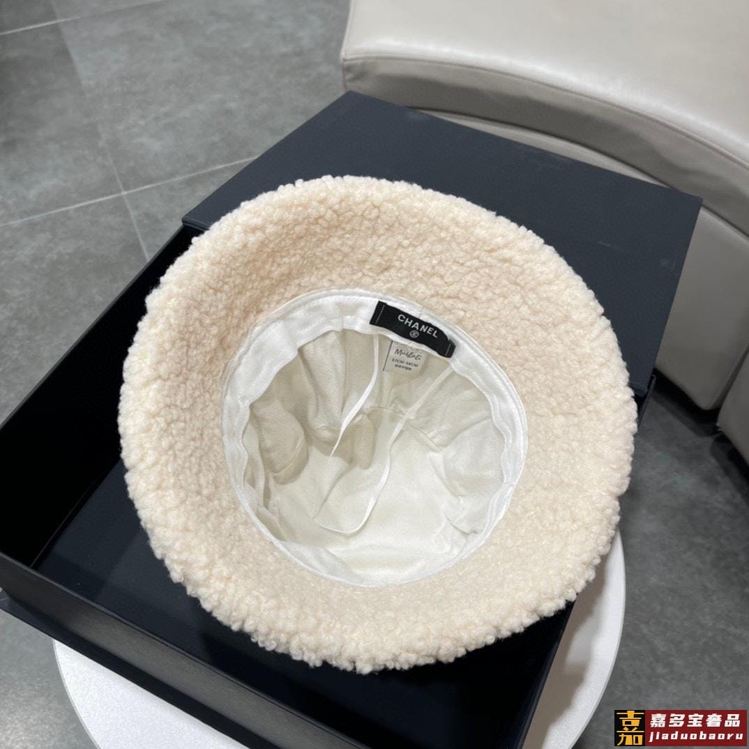 香奈儿秋冬新款爆款小香风羊羔毛简约可折叠渔夫帽细节做工都很精