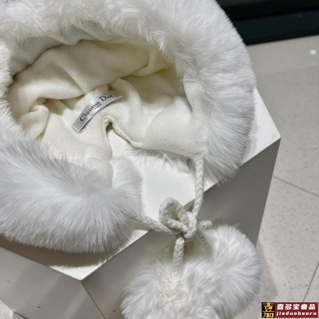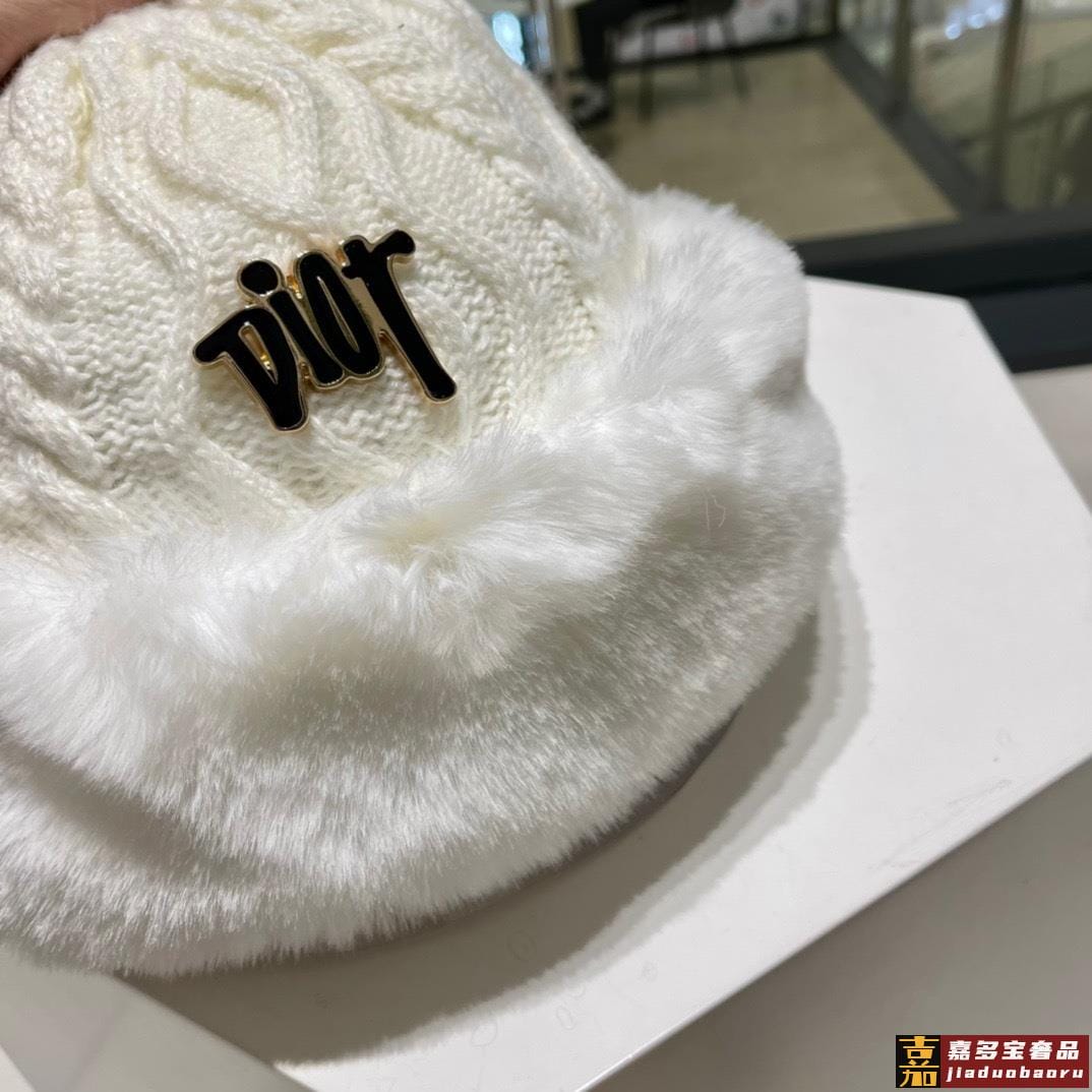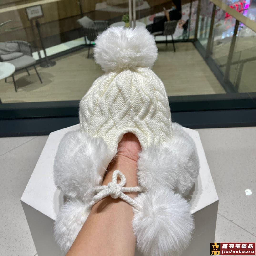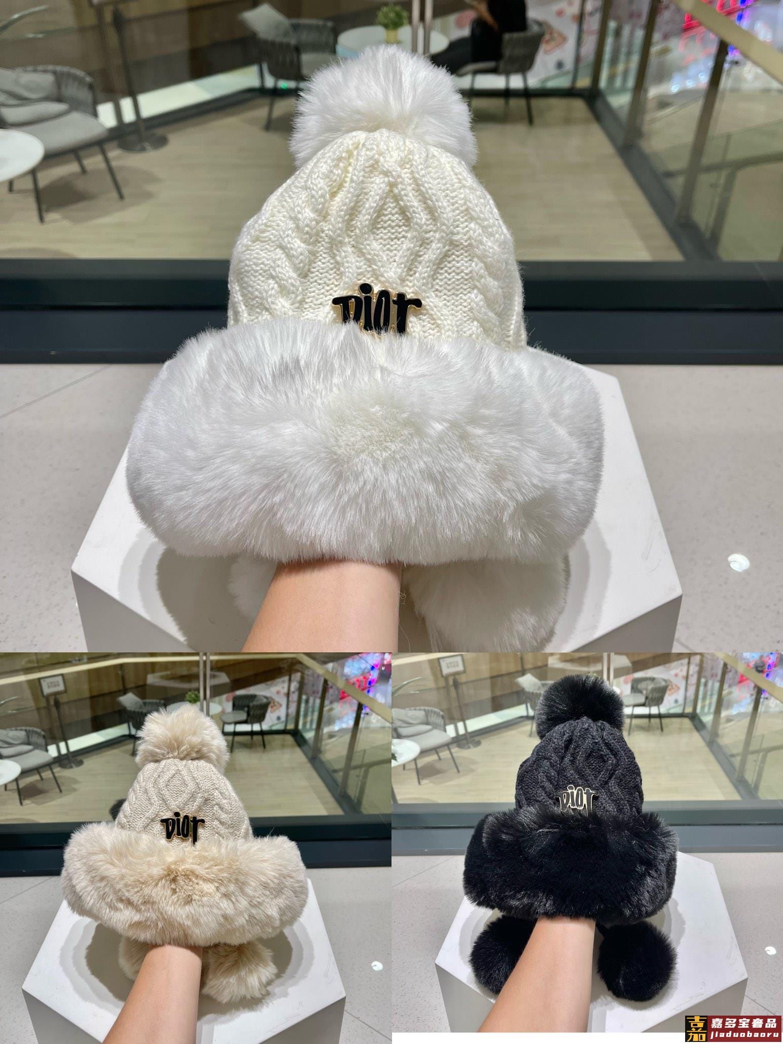 迪奥秋冬新款法国定毛毛球毛线帽秋冬保暖加绒加厚潮针织毛线帽高