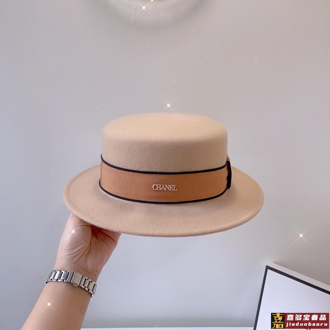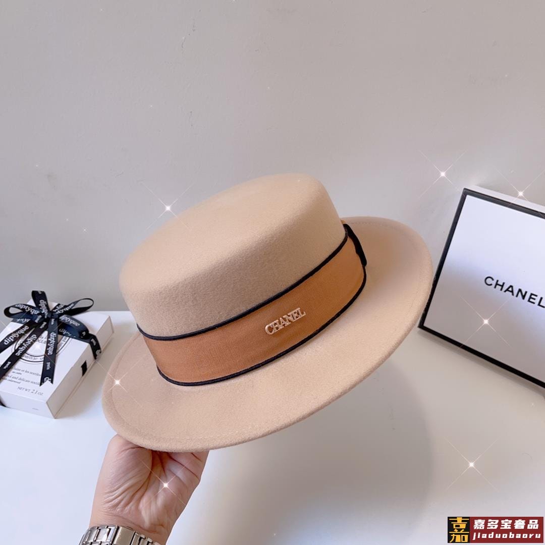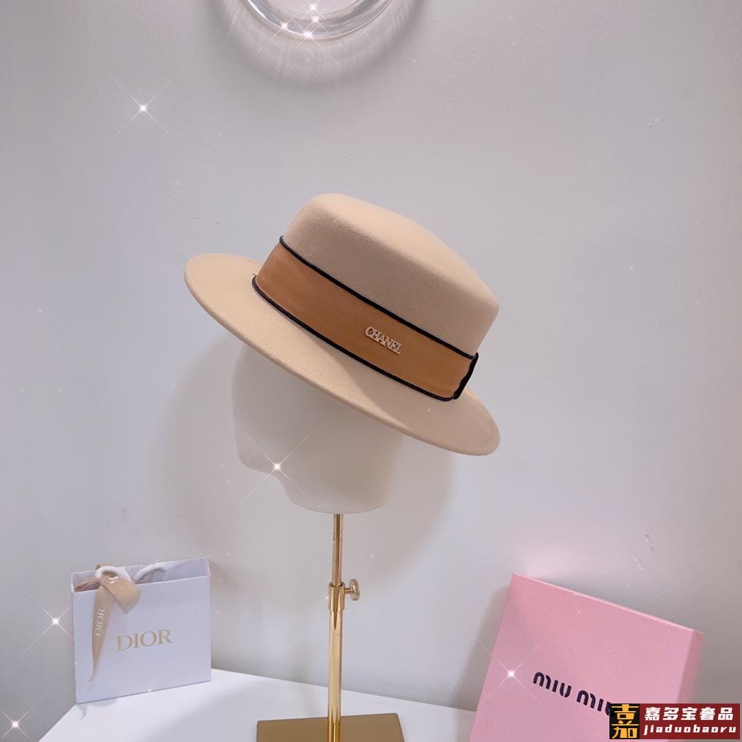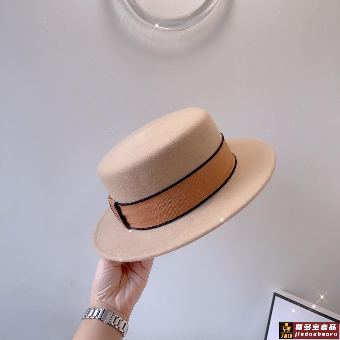 白色黑卡秋冬新款羊毛呢子平顶帽秋冬礼帽高级优雅名媛风一款细腻