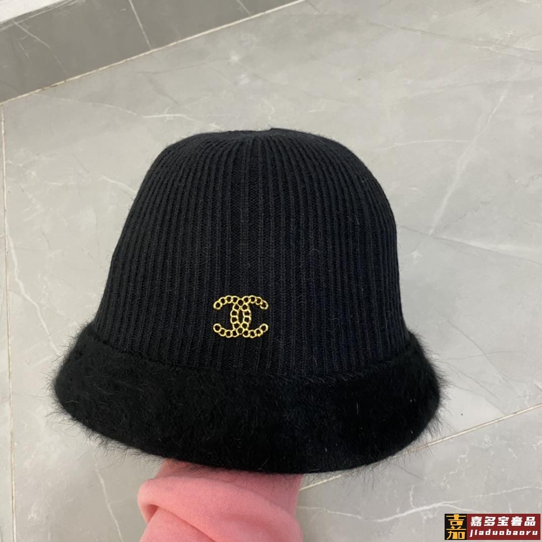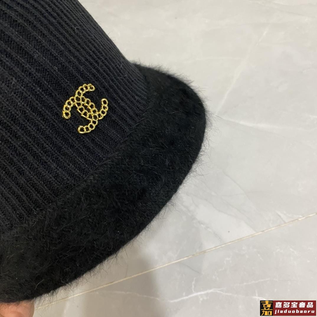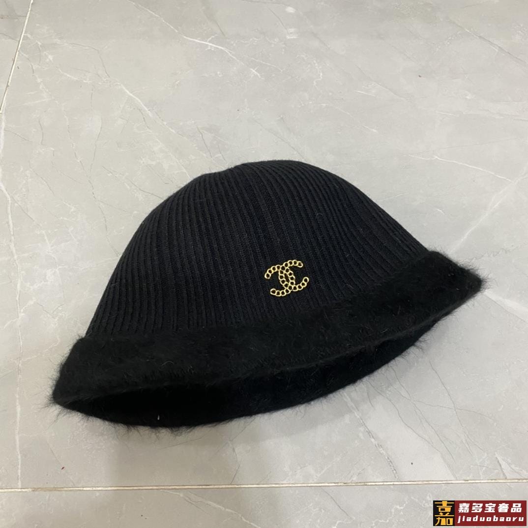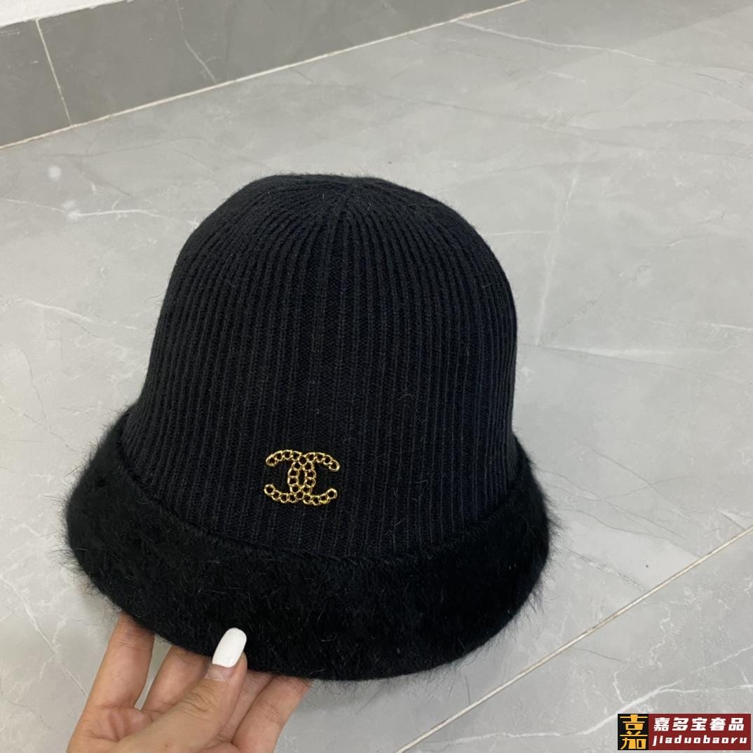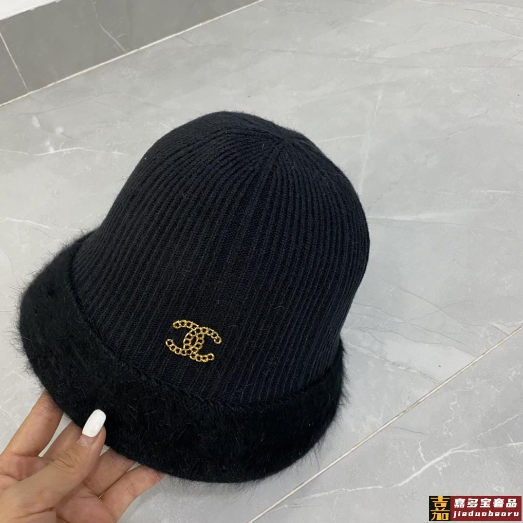 香奈儿秋冬新款兔毛渔夫帽毛线小圆帽简约百搭款秋冬搭衣必备 <