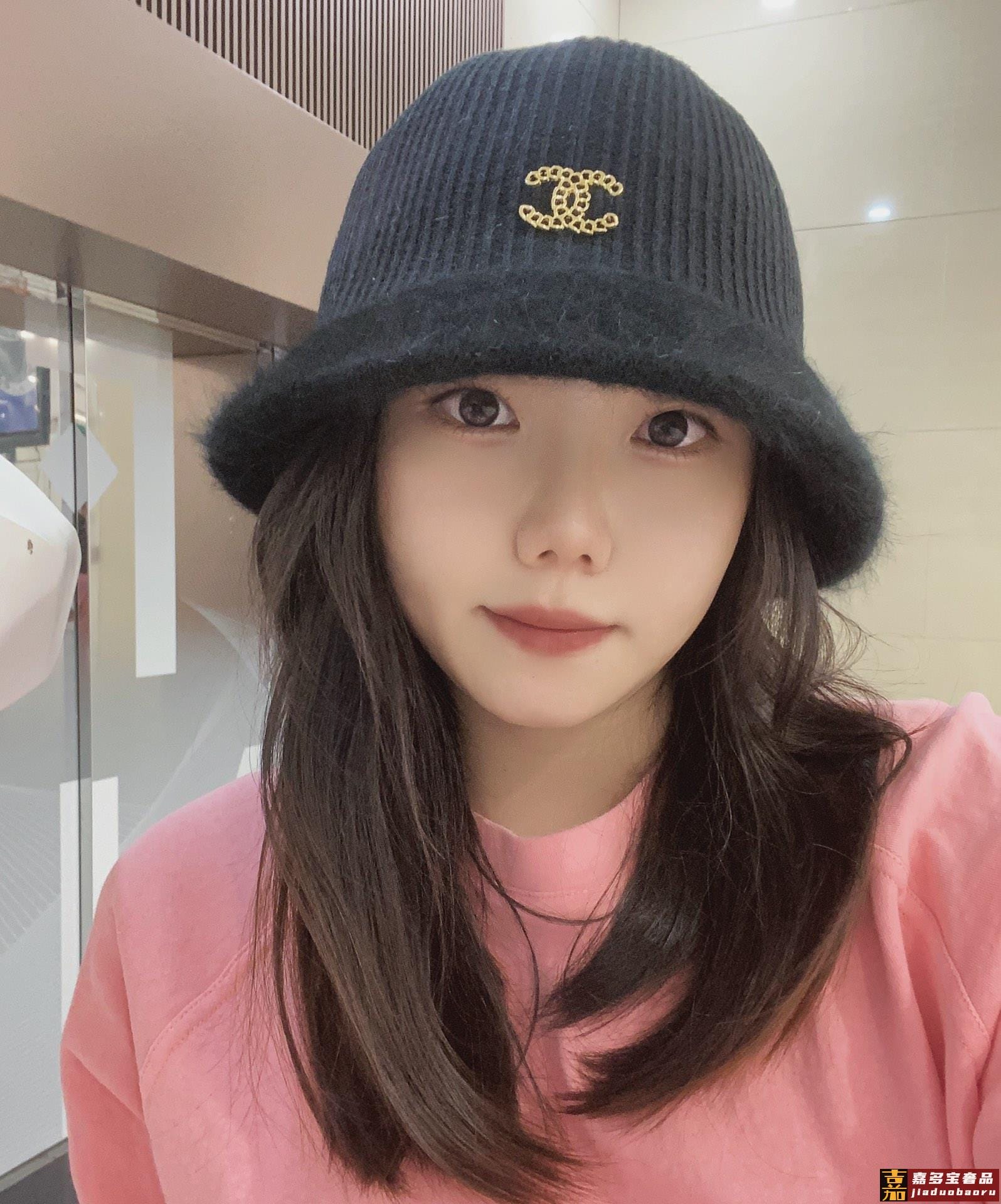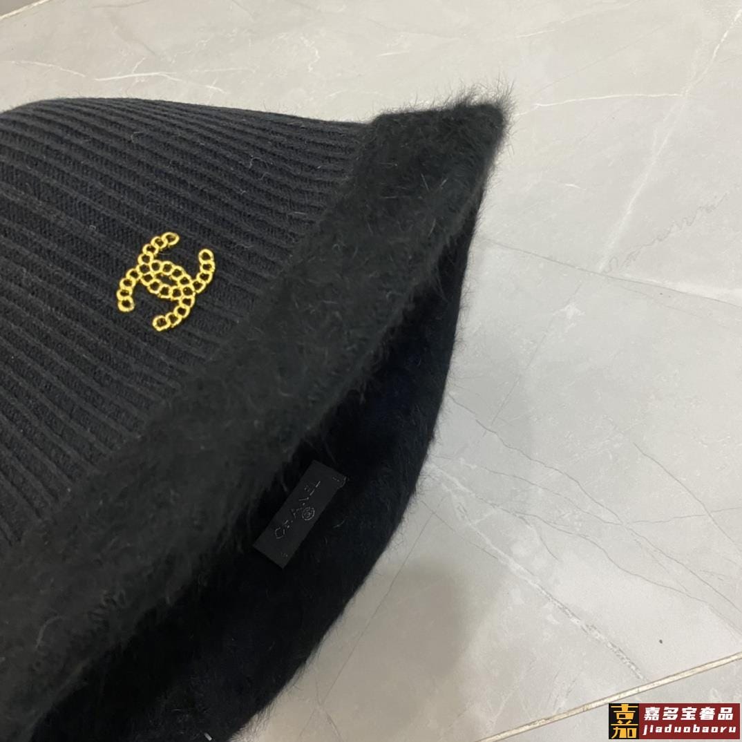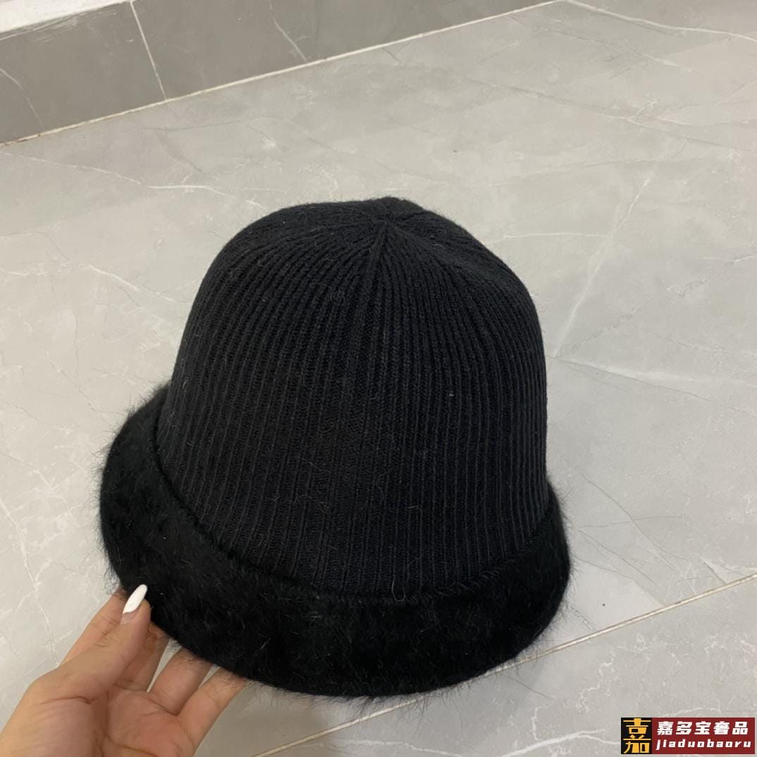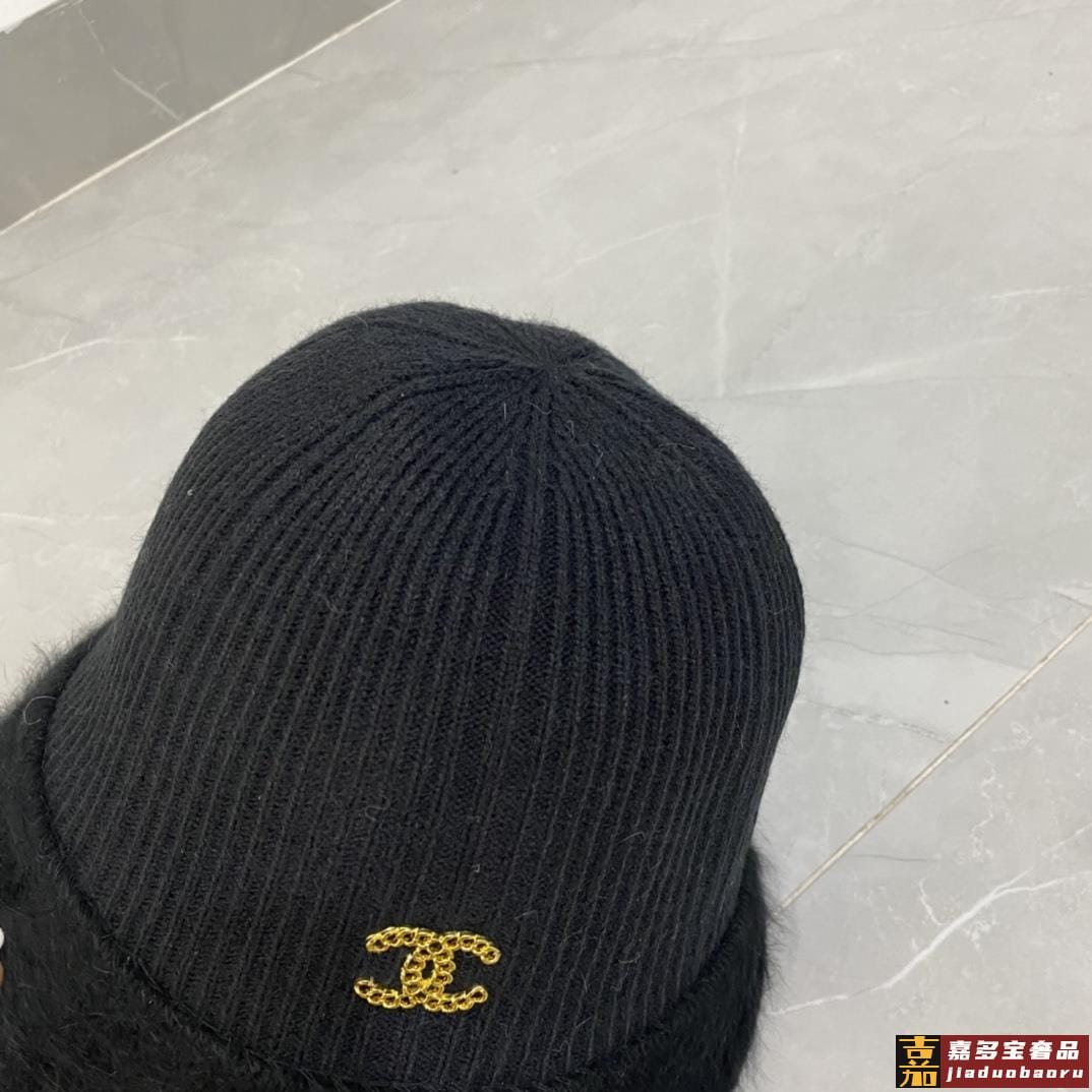 香奈儿秋冬新款兔毛渔夫帽毛线小圆帽简约百搭款秋冬搭衣必备 <