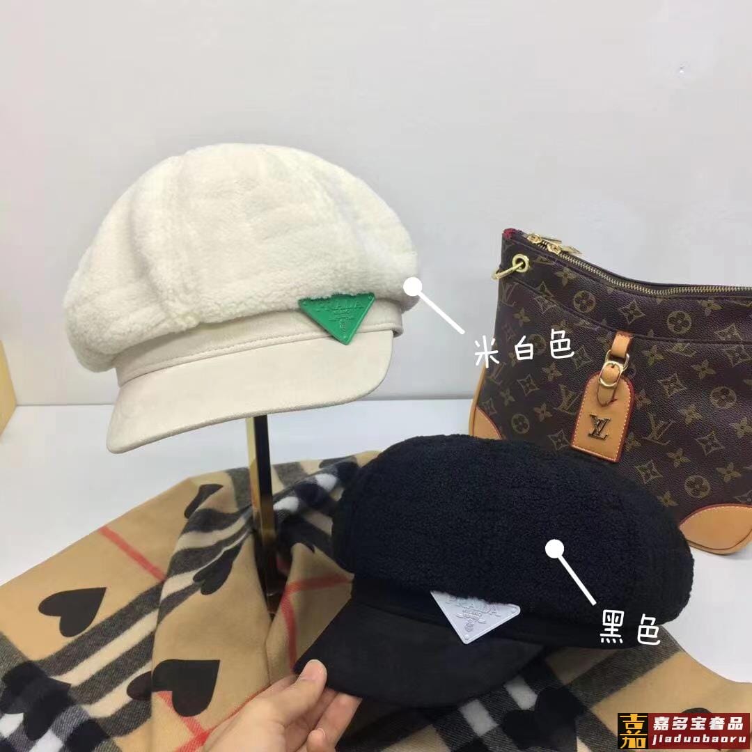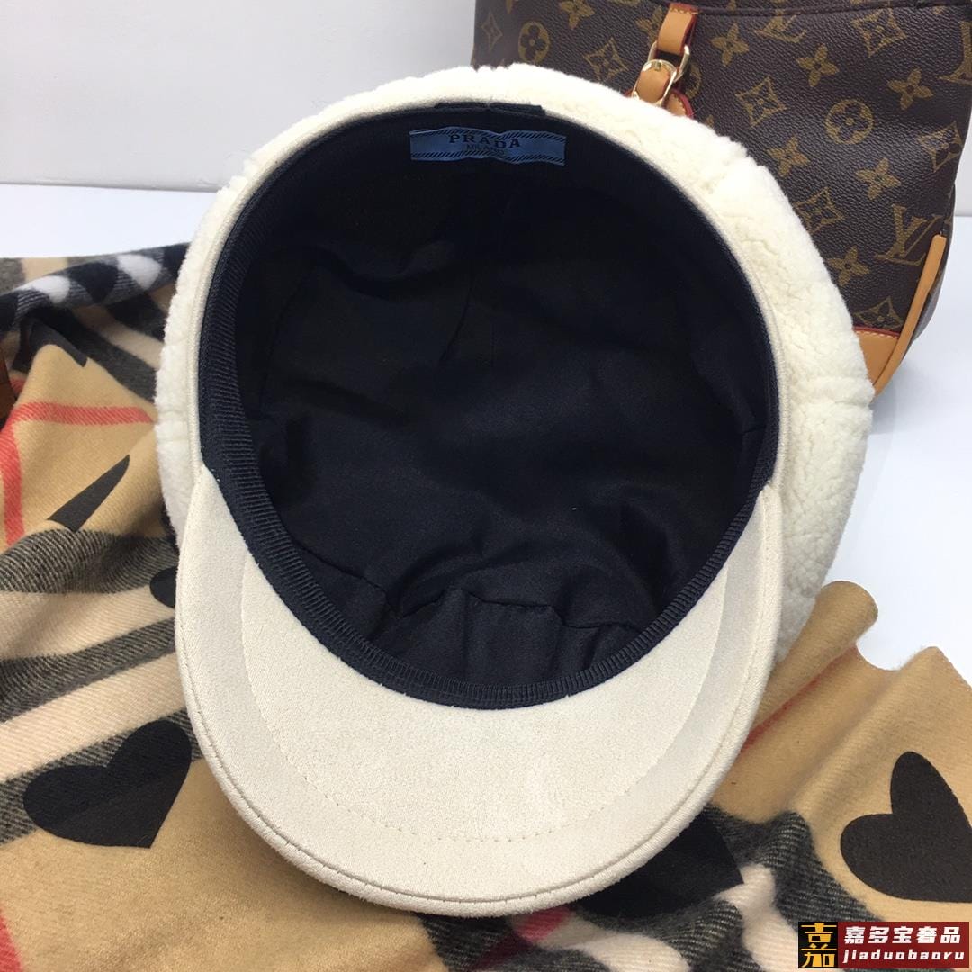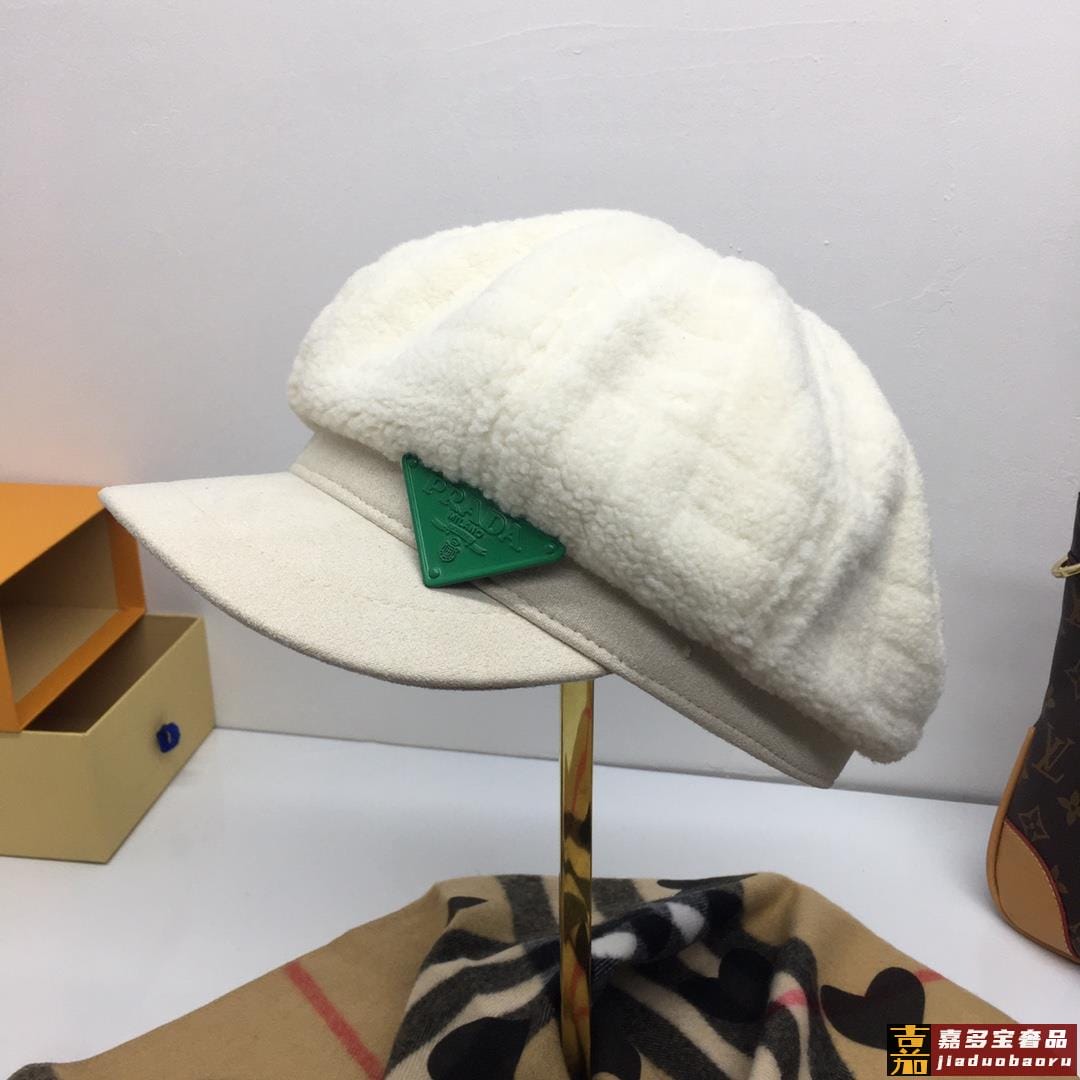 普拉达秋冬新款羊羔毛八角帽军帽网红同款内衬纯棉透气舒适时尚潮