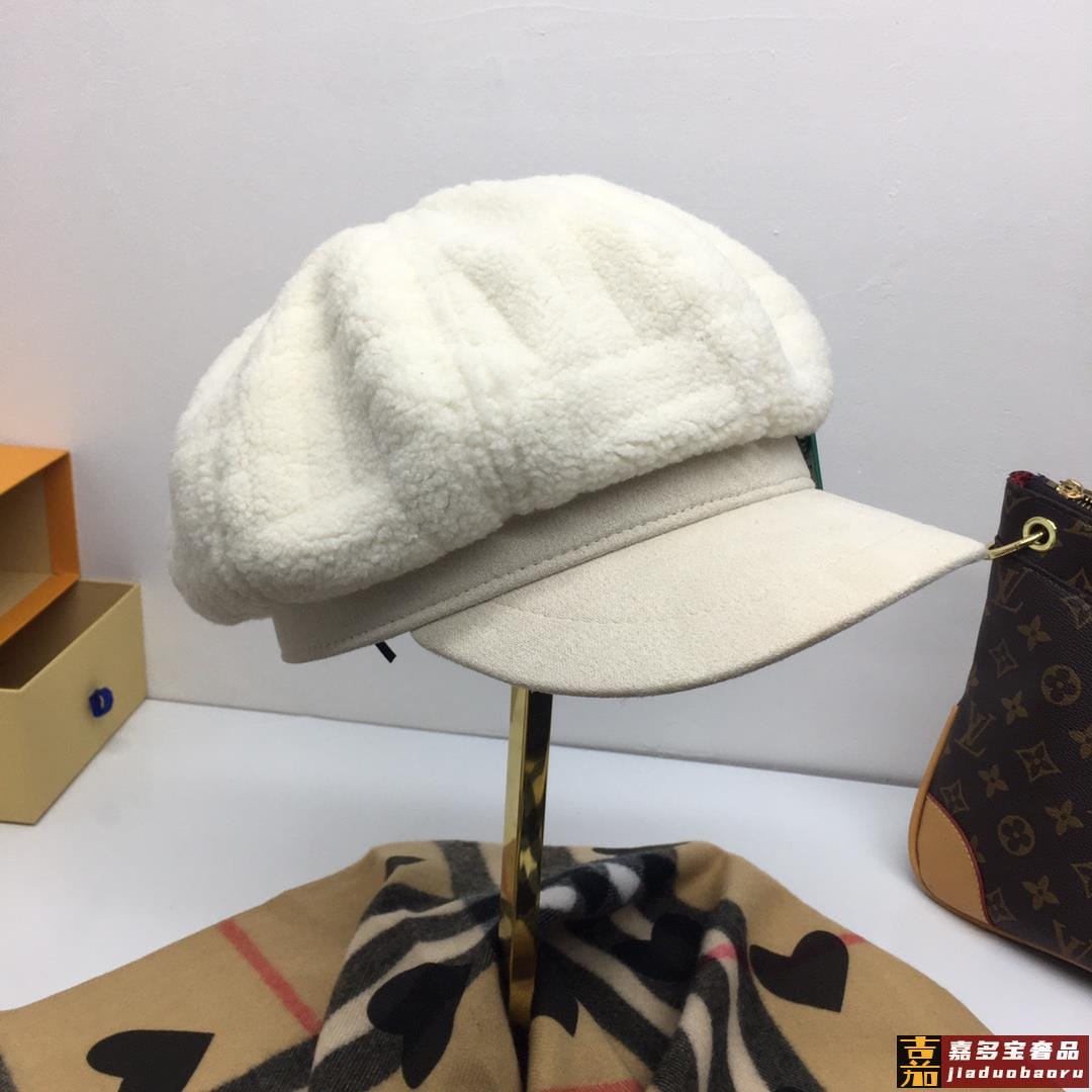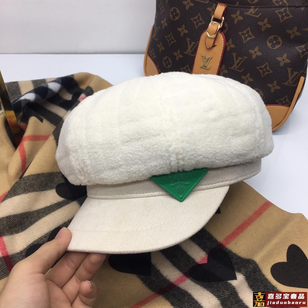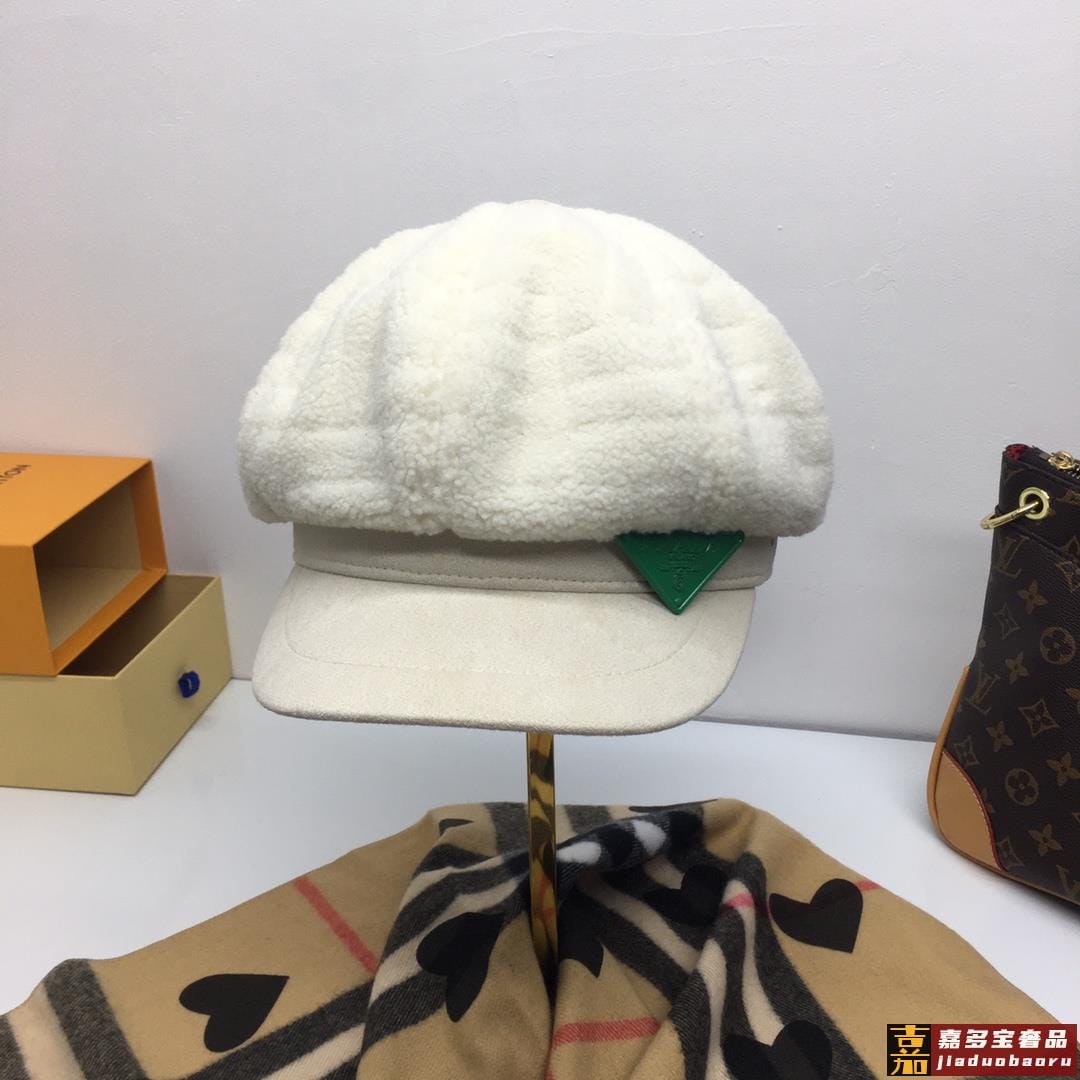 普拉达秋冬新款羊羔毛八角帽军帽网红同款内衬纯棉透气舒适时尚潮
