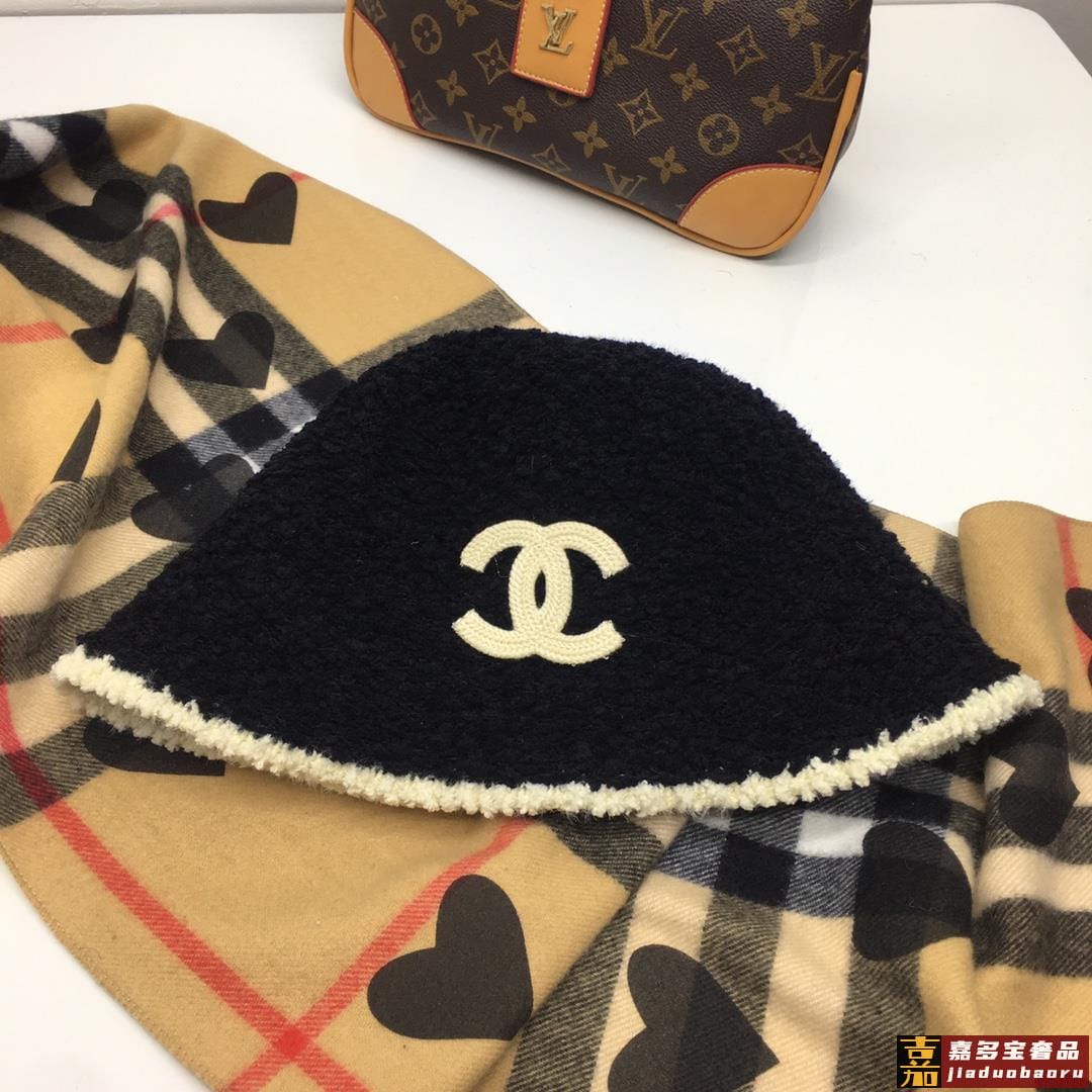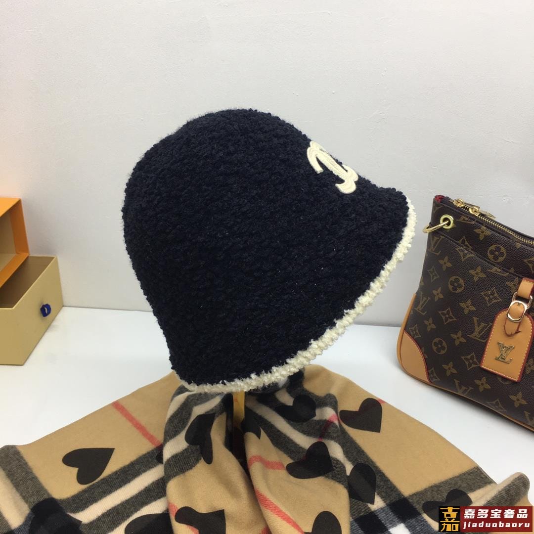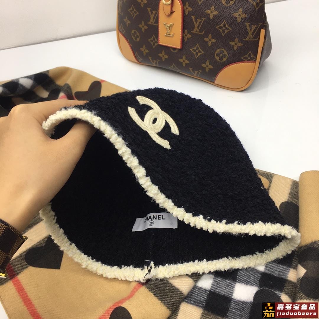 香奈儿新款爆款明星同款专柜款羊羔毛渔夫帽盆帽卷边设计细节做工