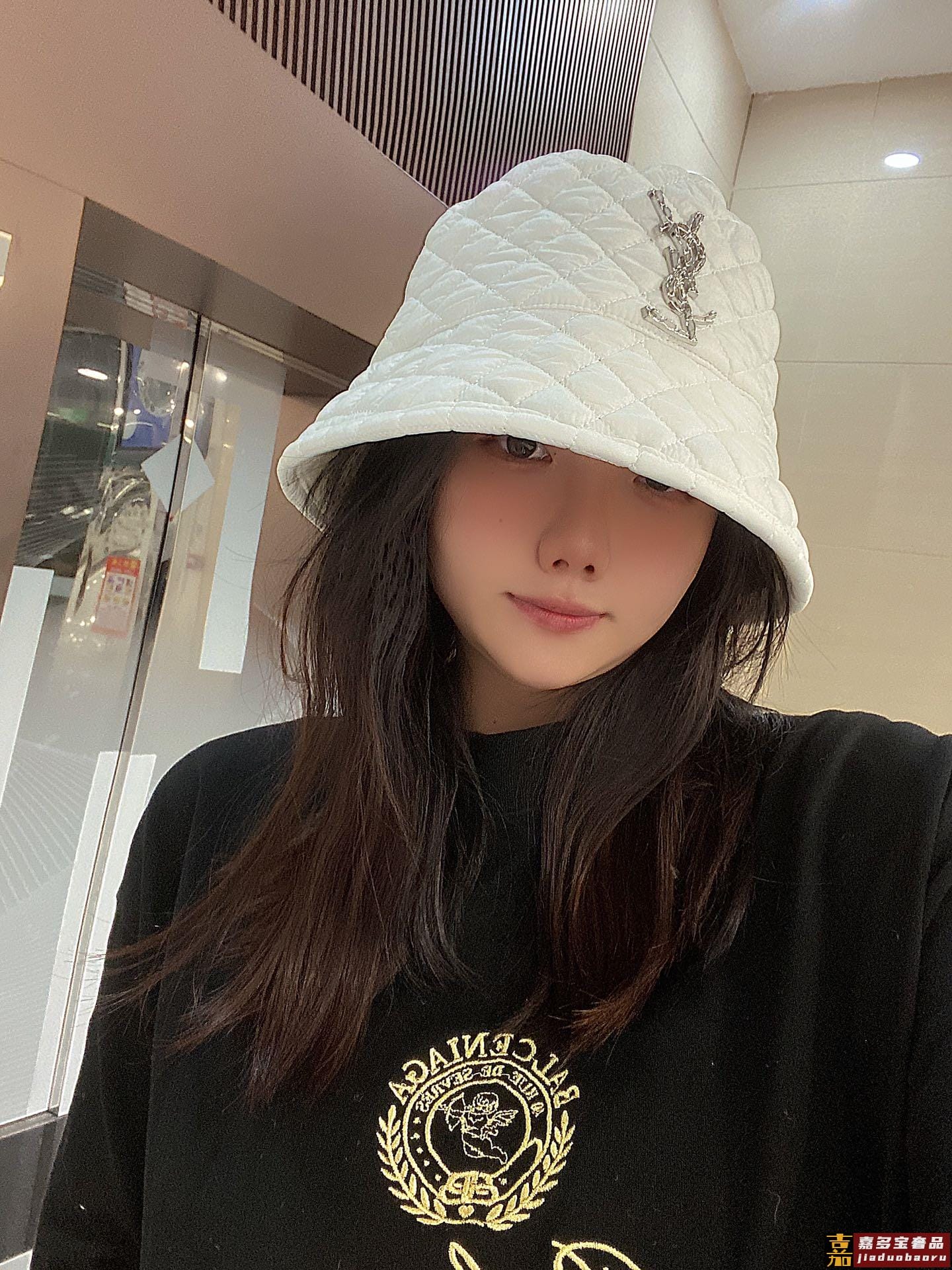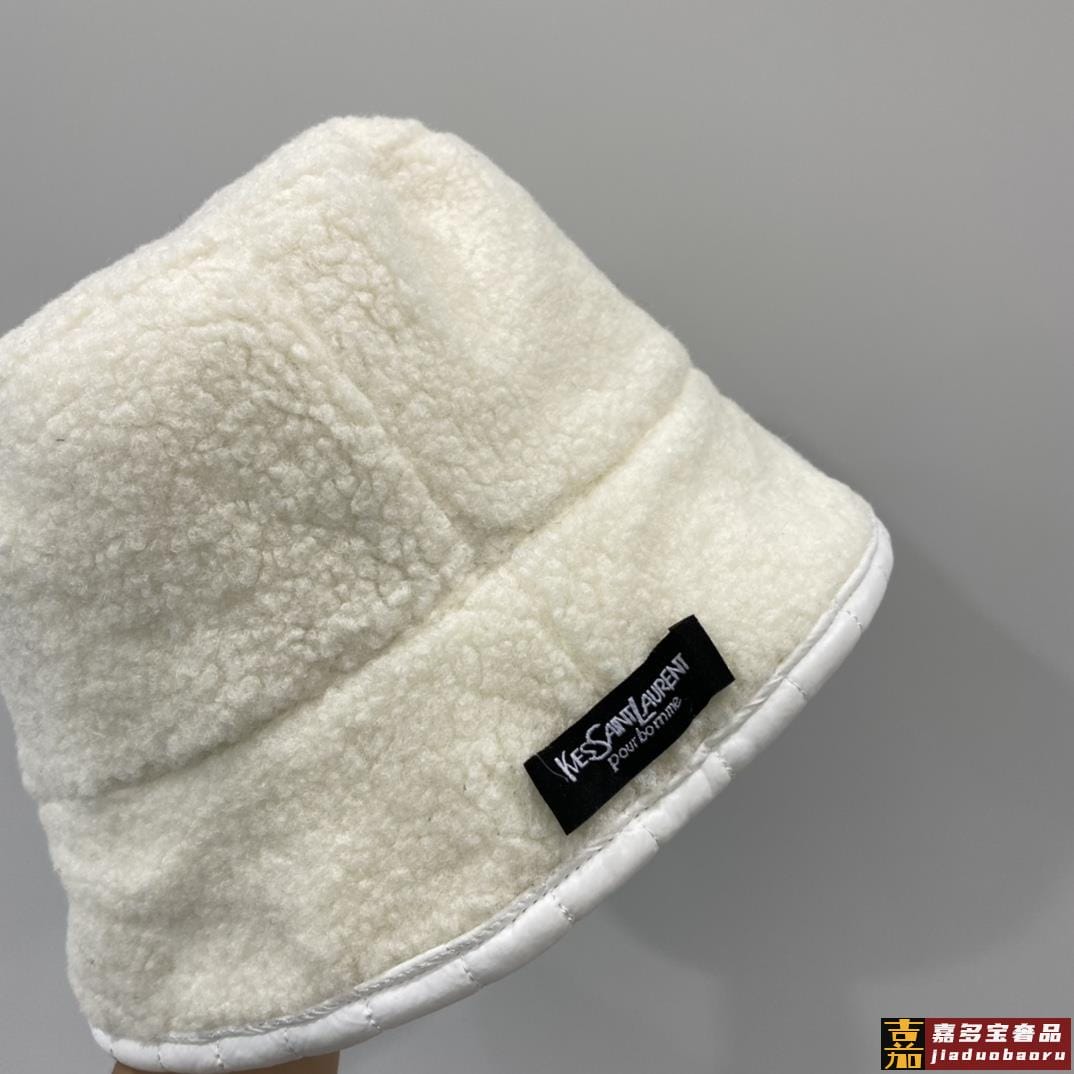 圣罗兰秋冬新款双面羊羔毛渔夫帽菱格礼帽简约百搭搭衣保暖必备头