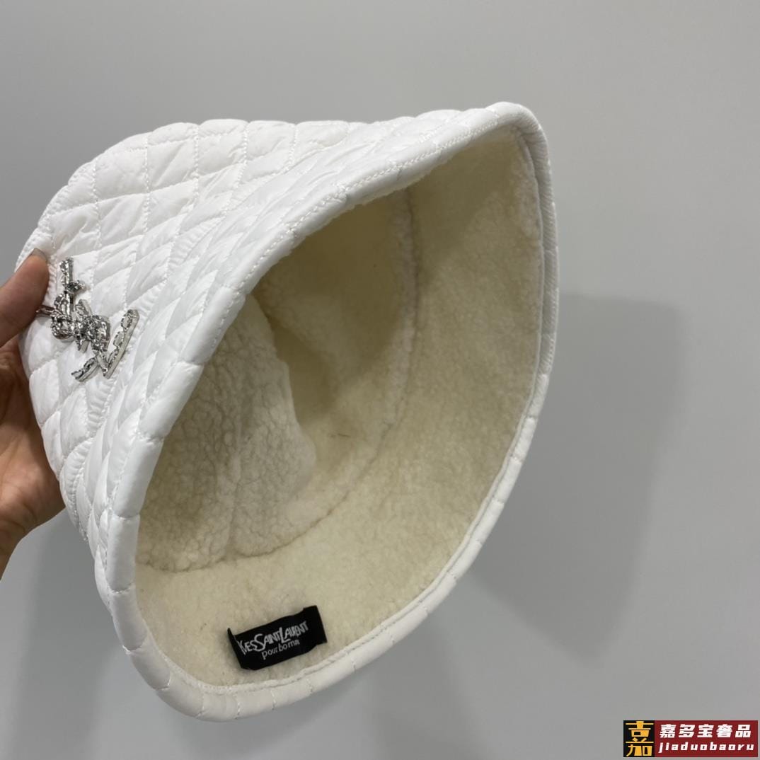 圣罗兰秋冬新款双面羊羔毛渔夫帽菱格礼帽简约百搭搭衣保暖必备头围