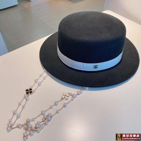 黑色白色秋冬款专柜同款平顶礼帽进口澳洲羊毛呢优雅搭配小香外套