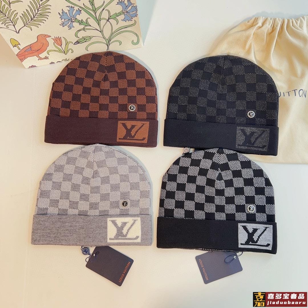 特配防尘袋秋冬新款棋盘格大牌针织毛线帽设计款男女可戴出街超好