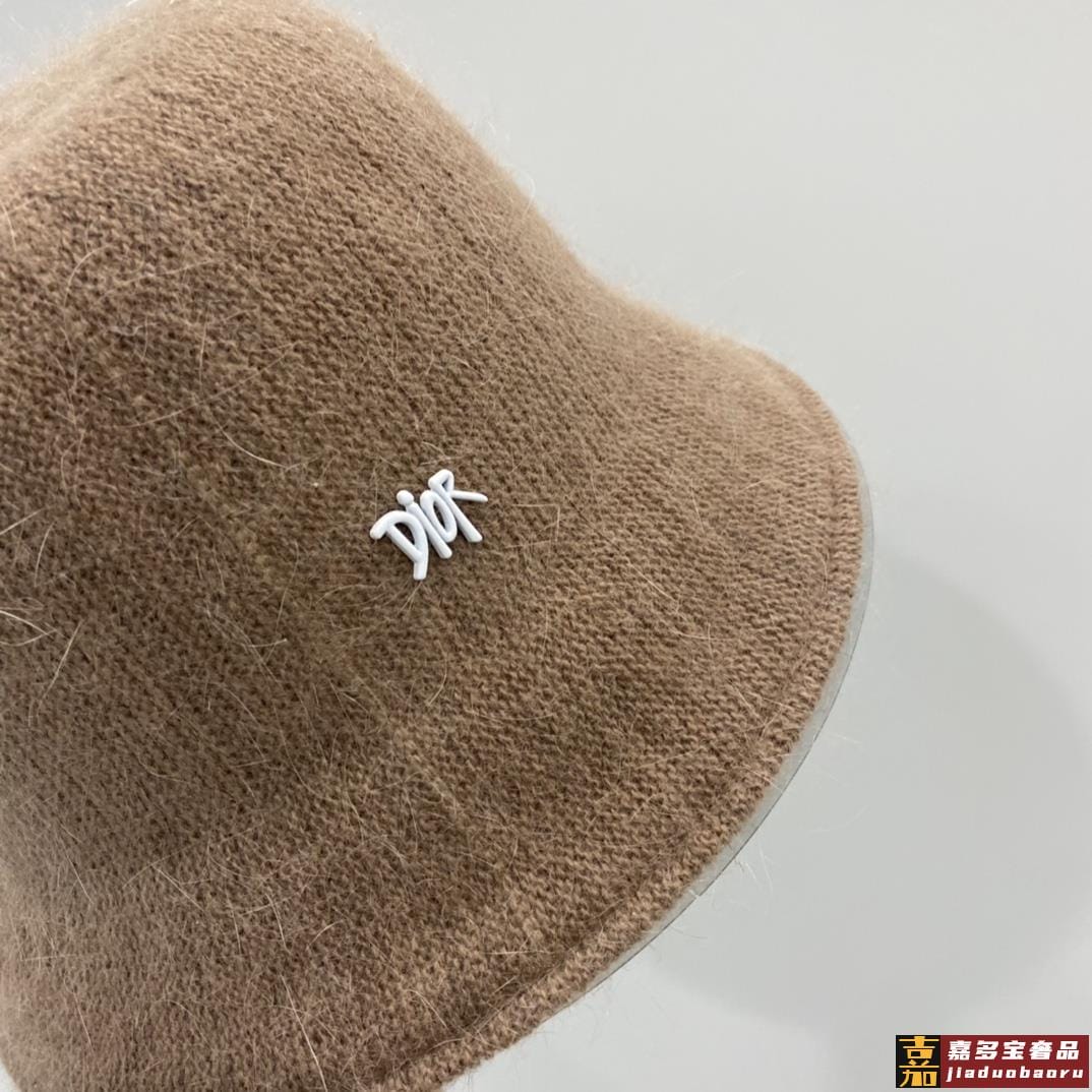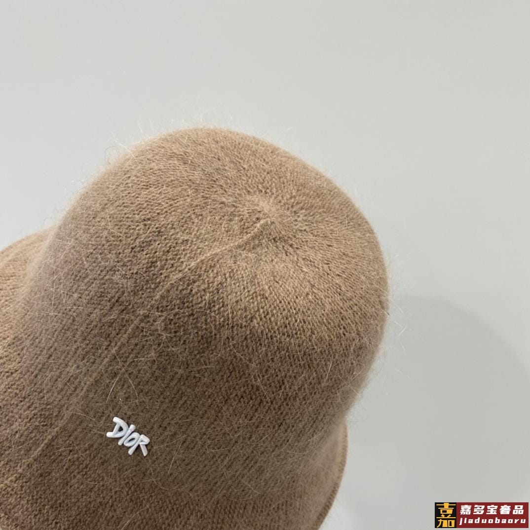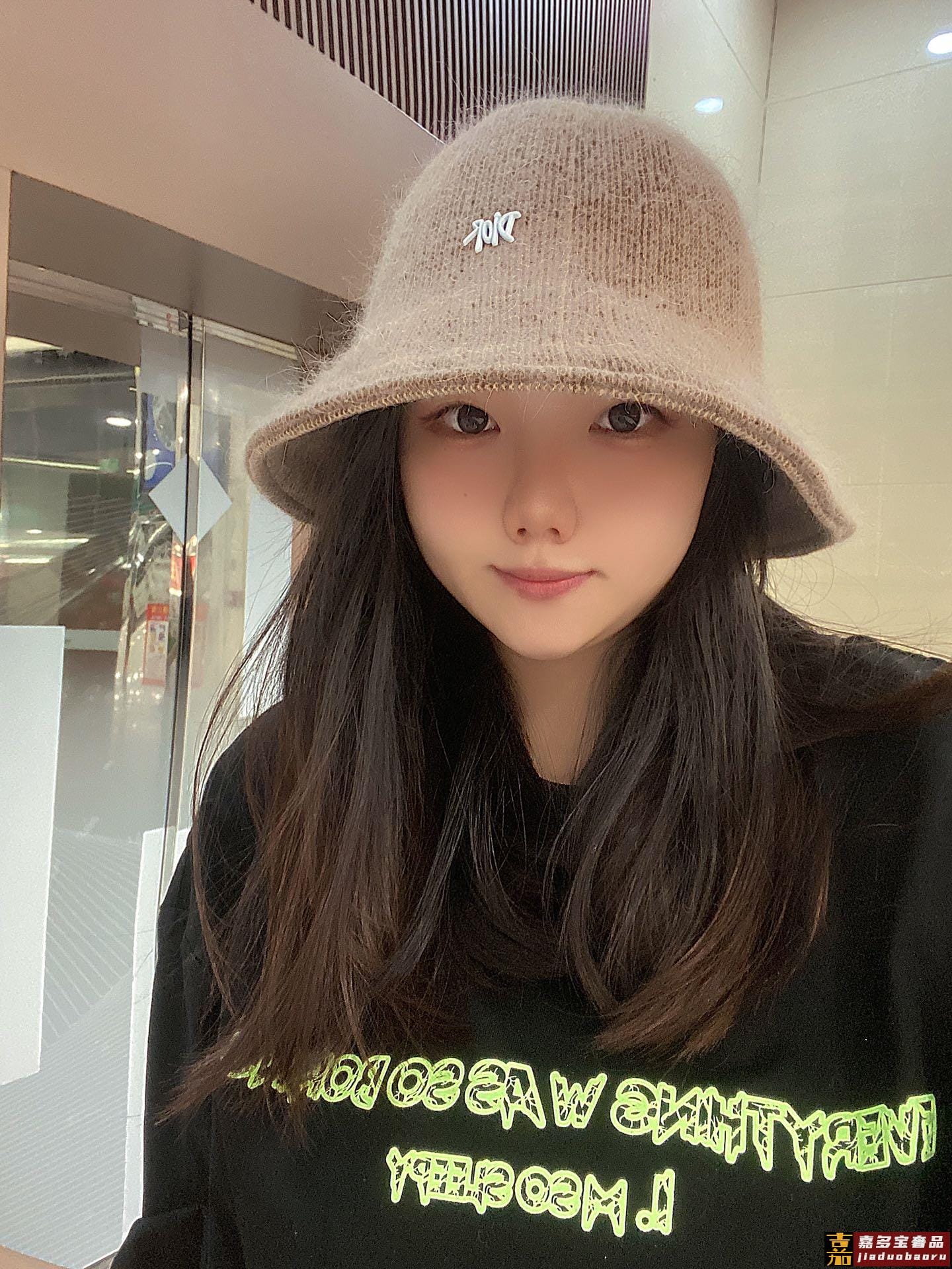 迪奥秋冬新款兔毛渔夫帽毛线小圆帽简约百搭款秋冬搭衣必备