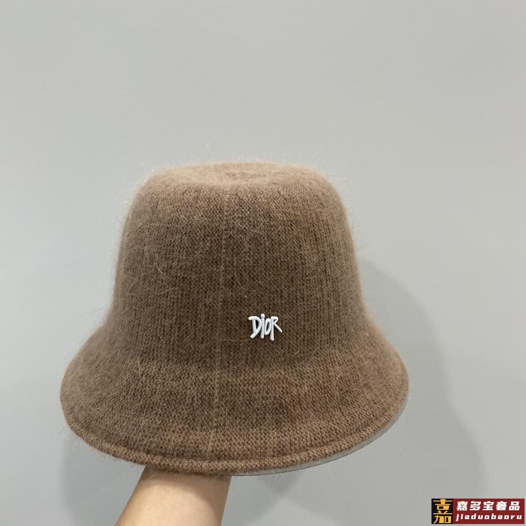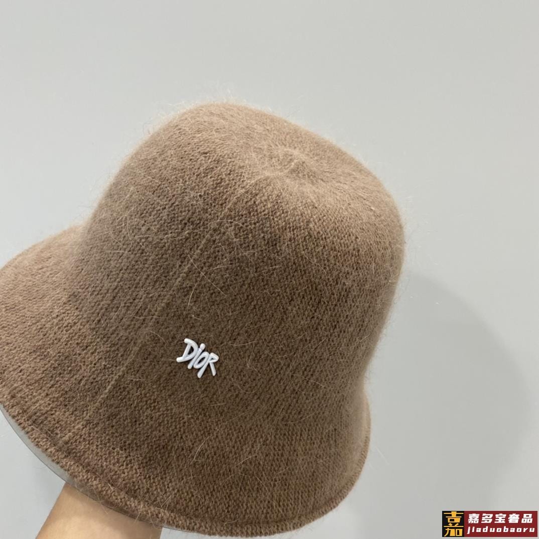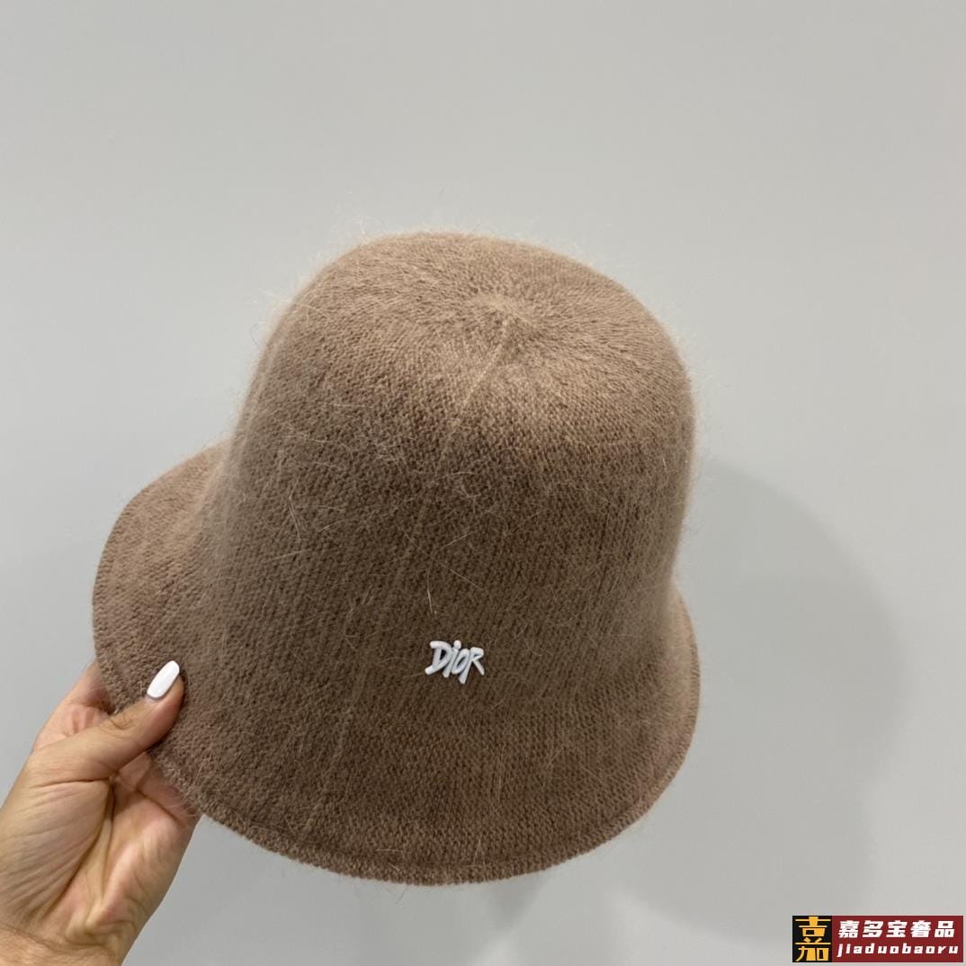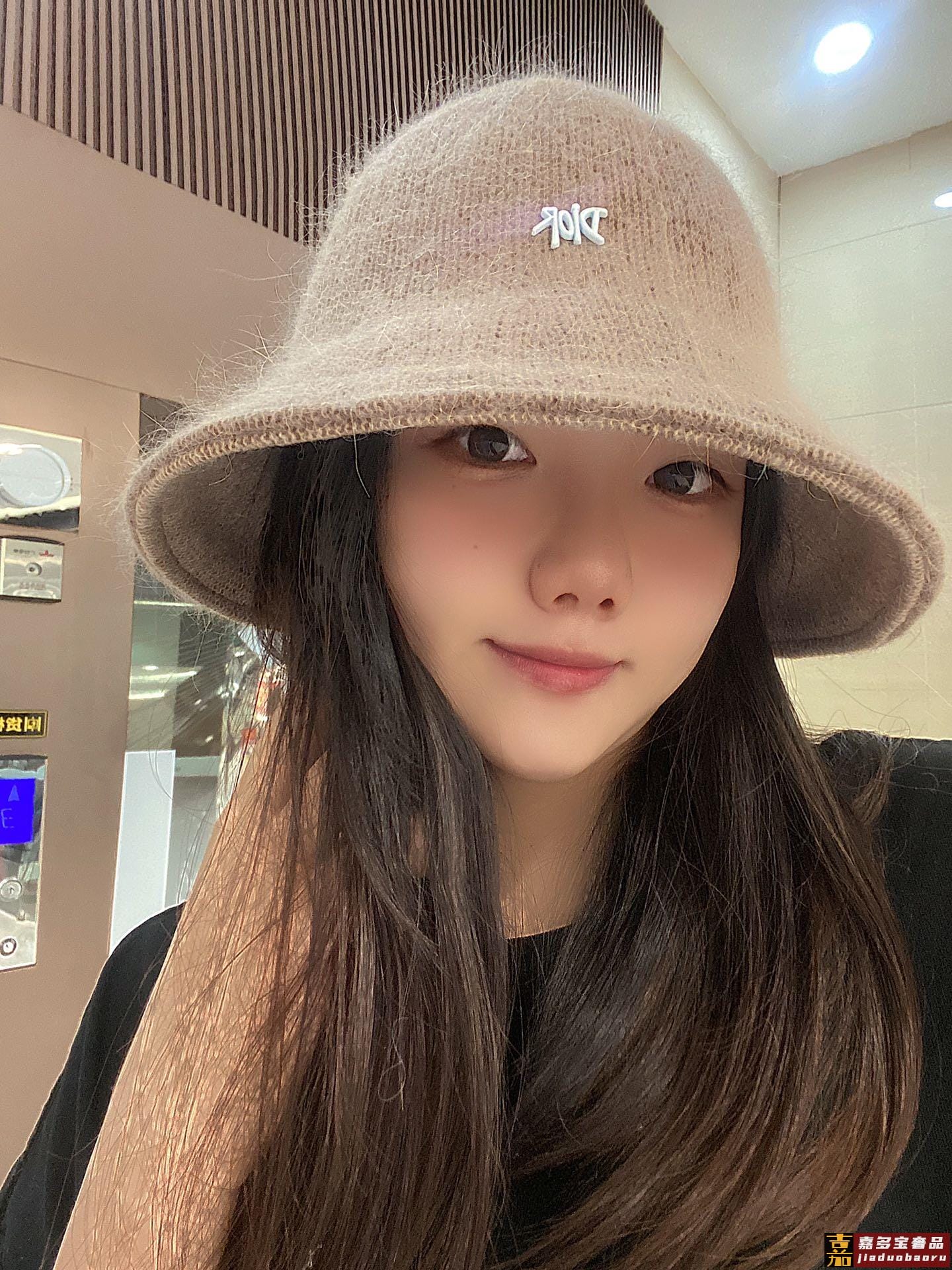 迪奥秋冬新款兔毛渔夫帽毛线小圆帽简约百搭款秋冬搭衣必备