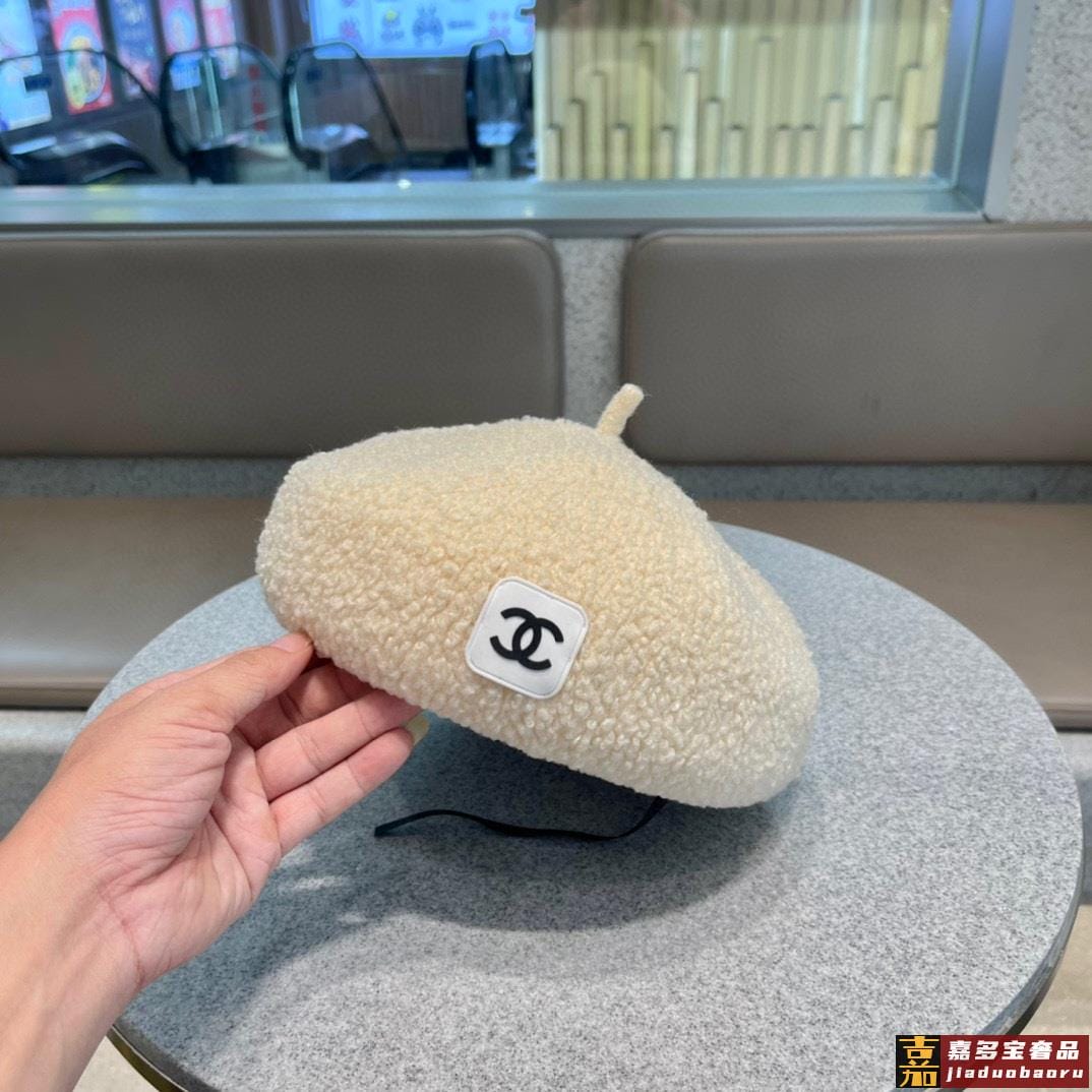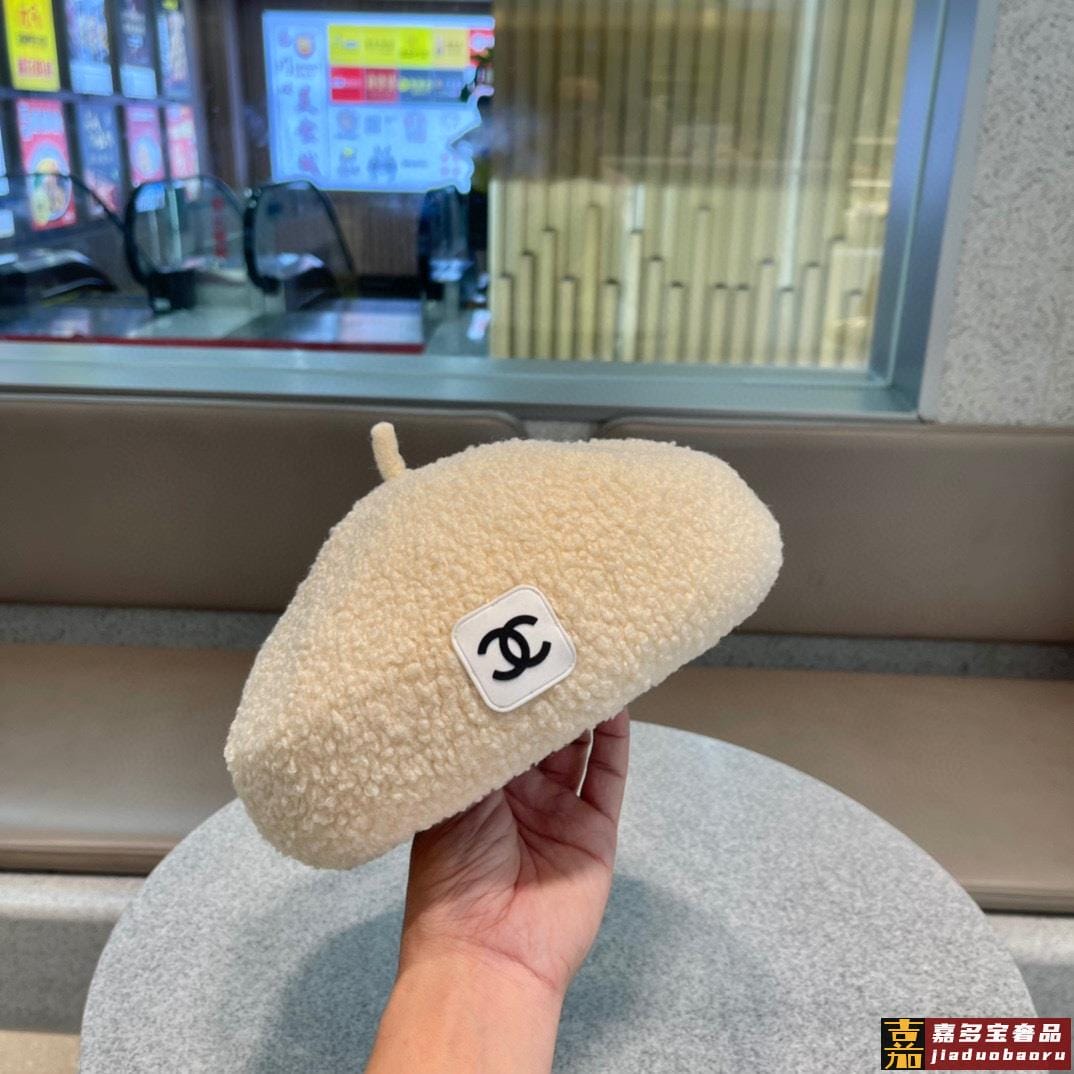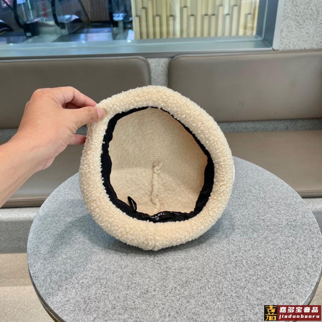 香奈儿秋冬新款小香羊羔毛经典休闲款贝雷帽文艺画家帽范儿十足百