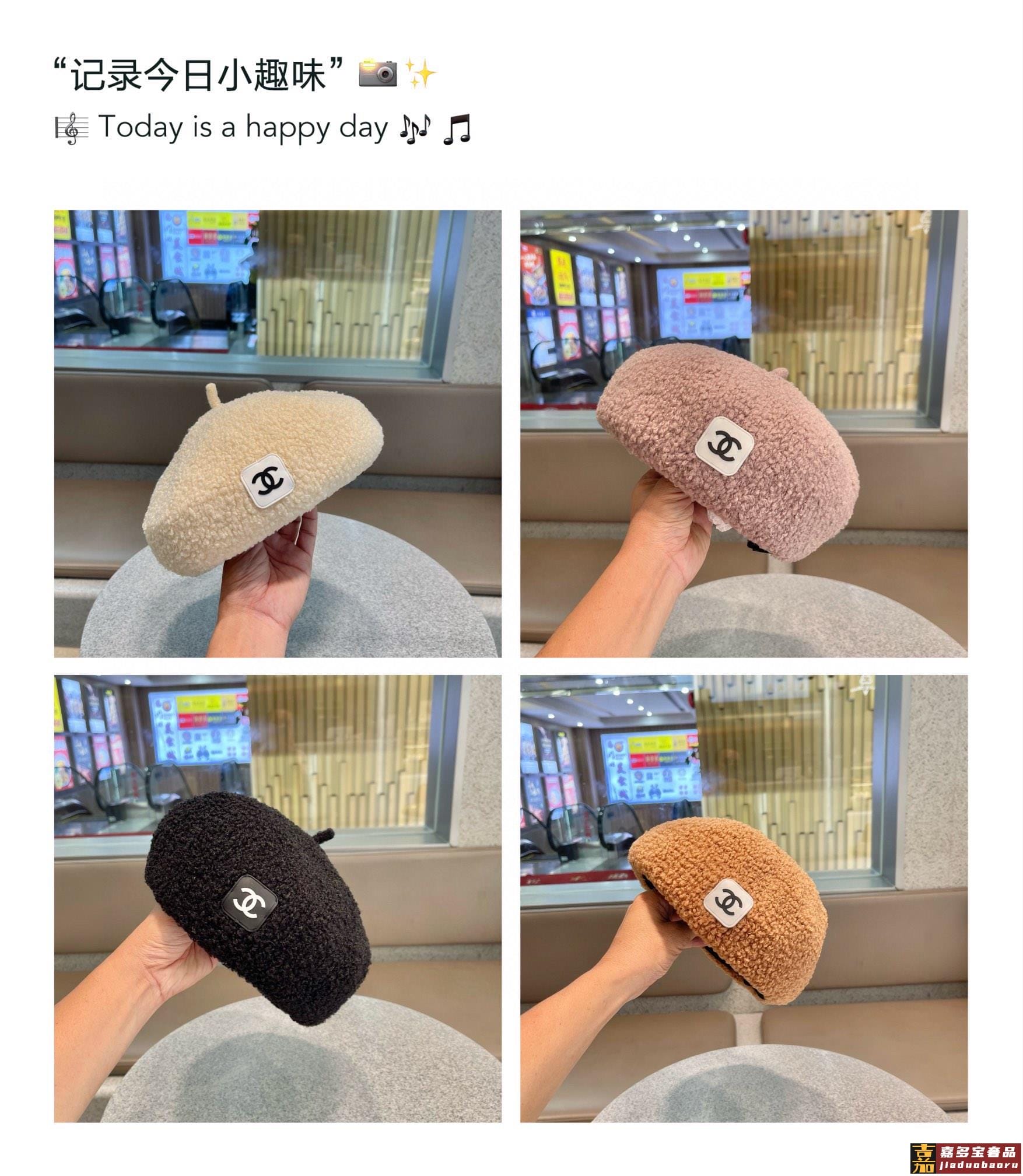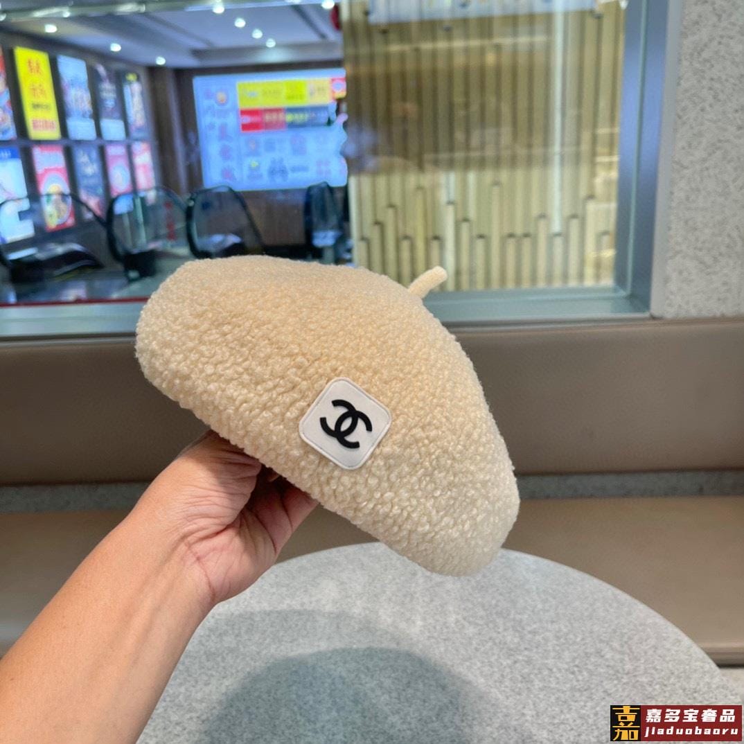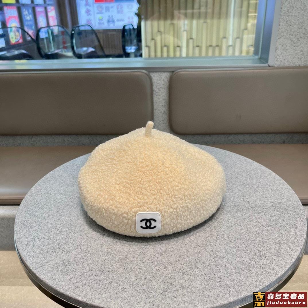 香奈儿秋冬新款小香羊羔毛经典休闲款贝雷帽文艺画家帽范儿十足百