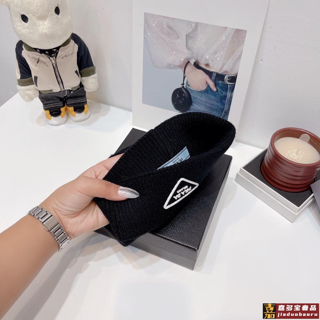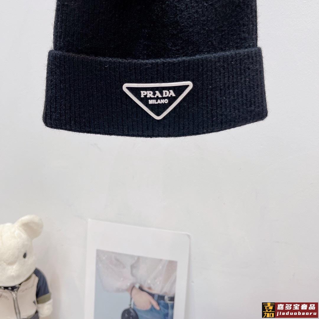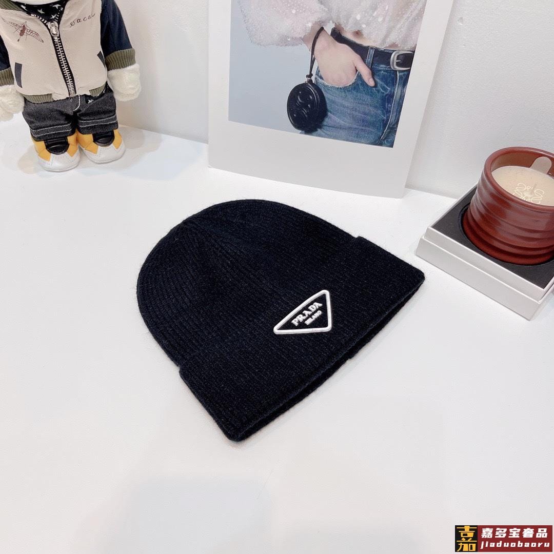 普拉达新款倒三角标针织羊毛毛线帽高品质定制羊毛简约帅气新标志