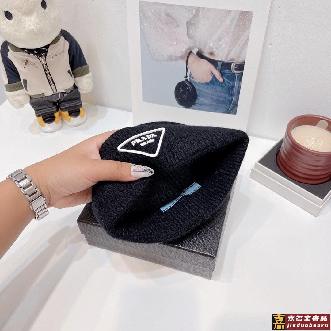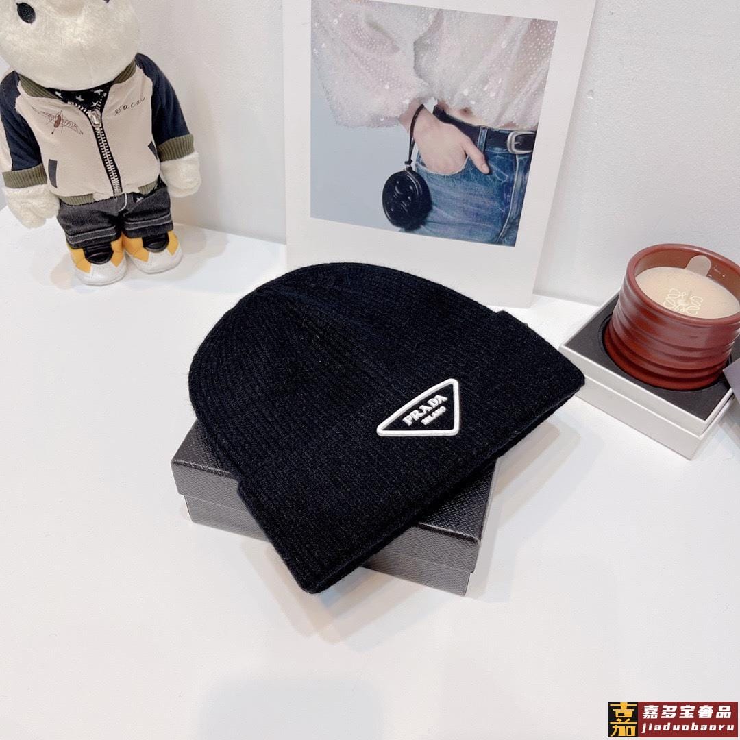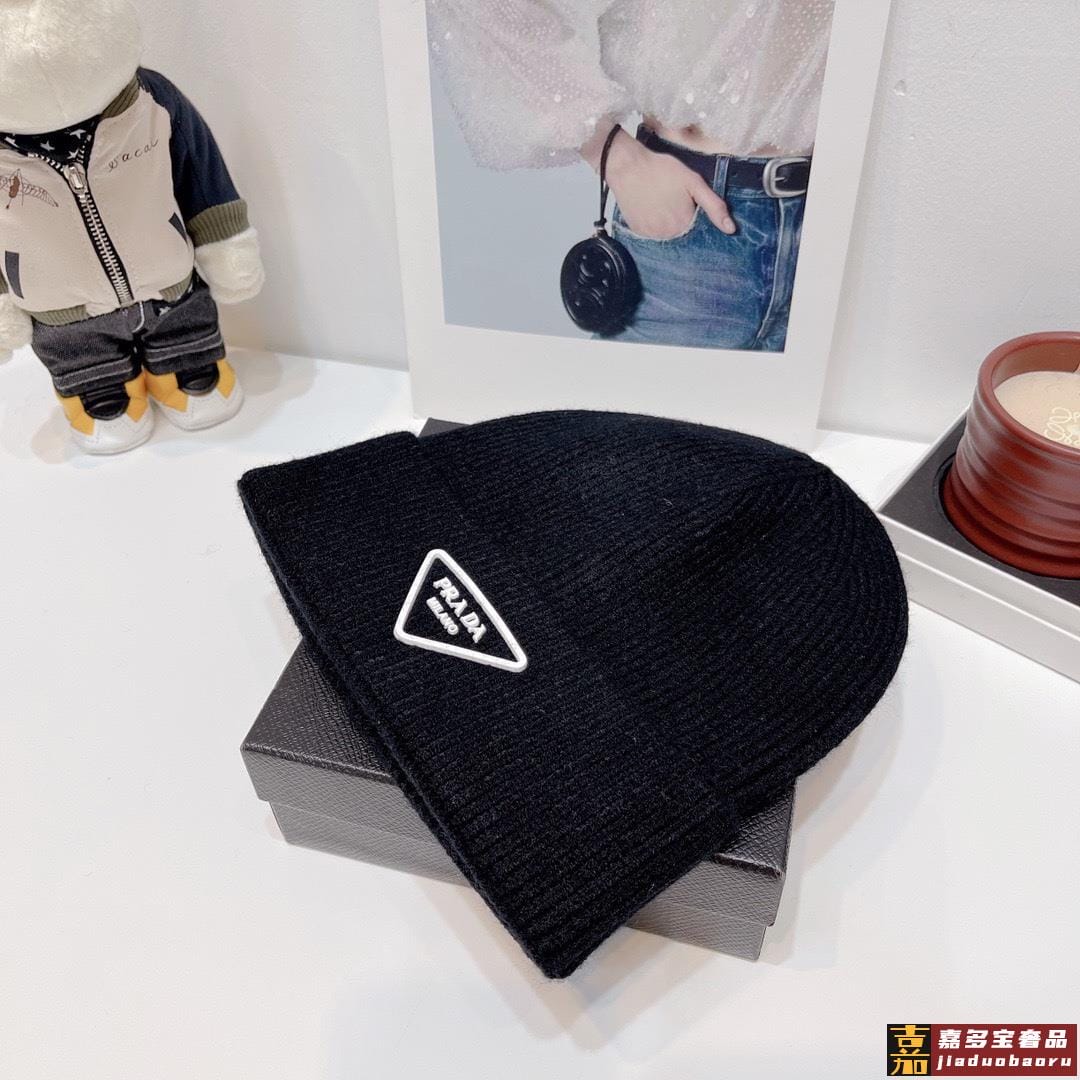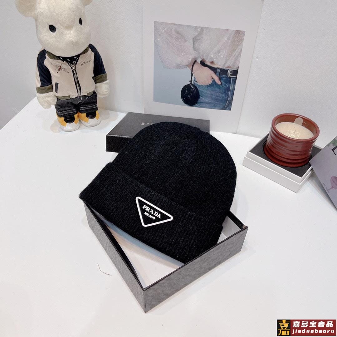 普拉达新款倒三角标针织羊毛毛线帽高品质定制羊毛简约帅气新标志