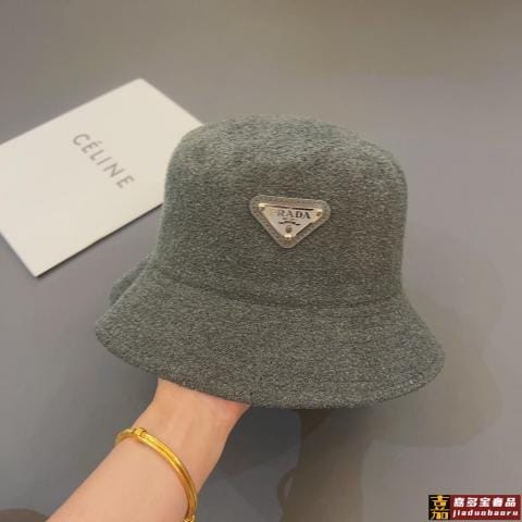 普拉达秋冬新款毛线渔夫帽三角标渔夫帽简约手抓帽