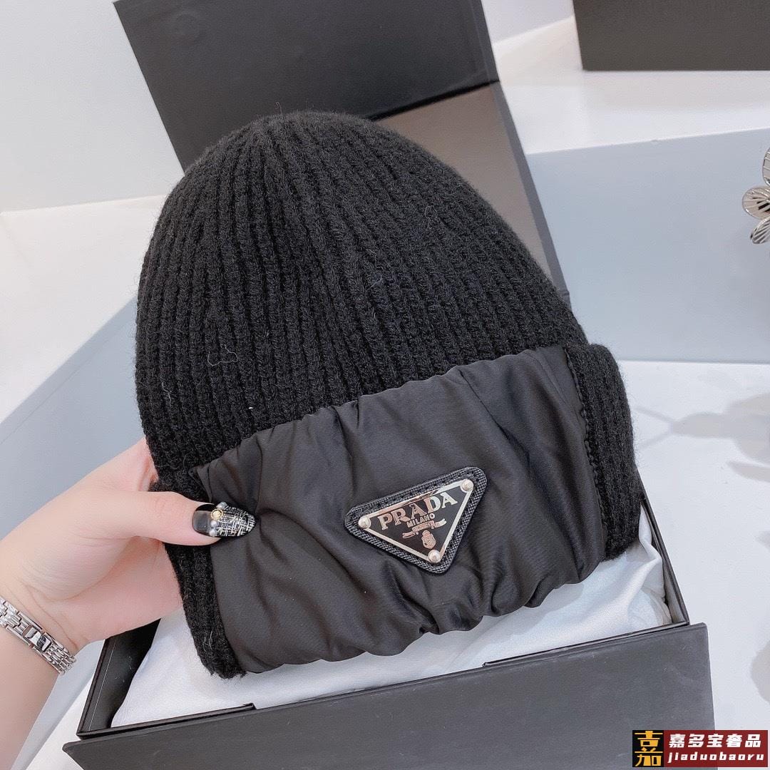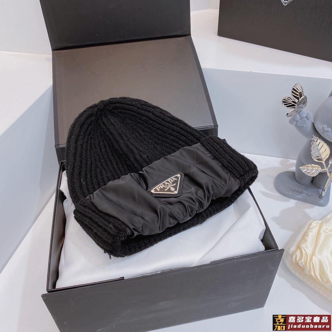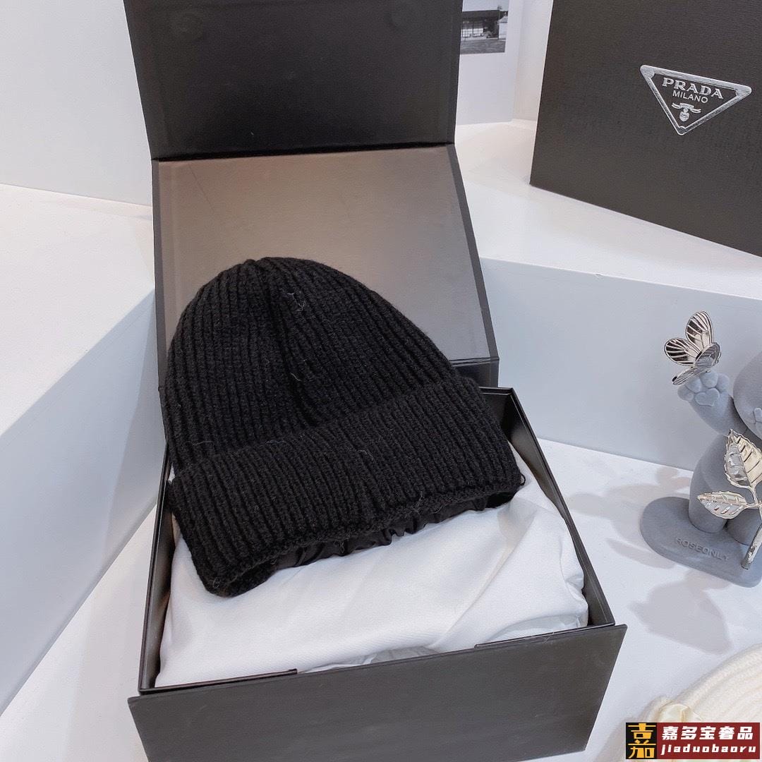 普拉达新款倒三角标针织羊毛毛线帽高品质定制羊毛简约帅气新标志