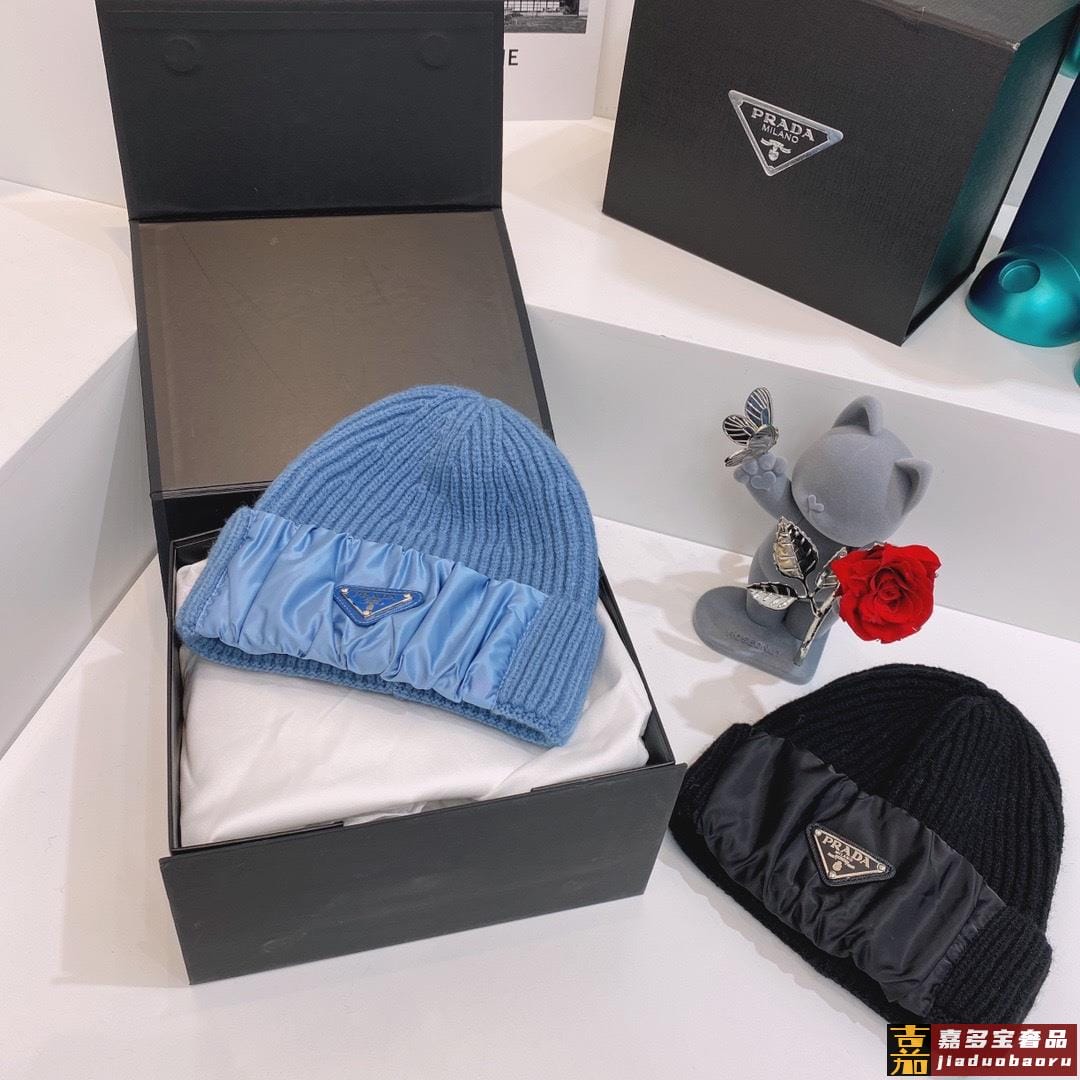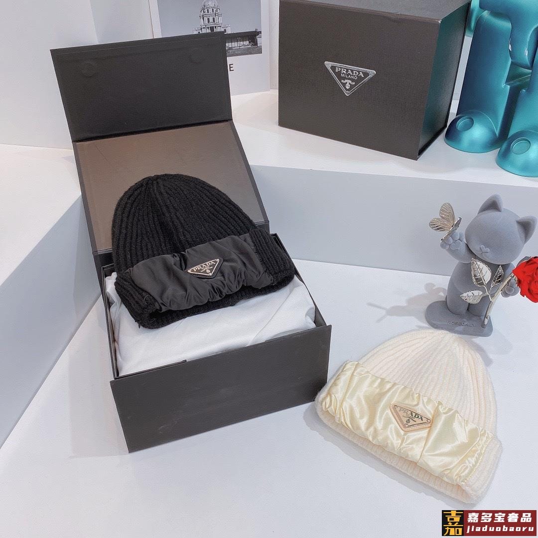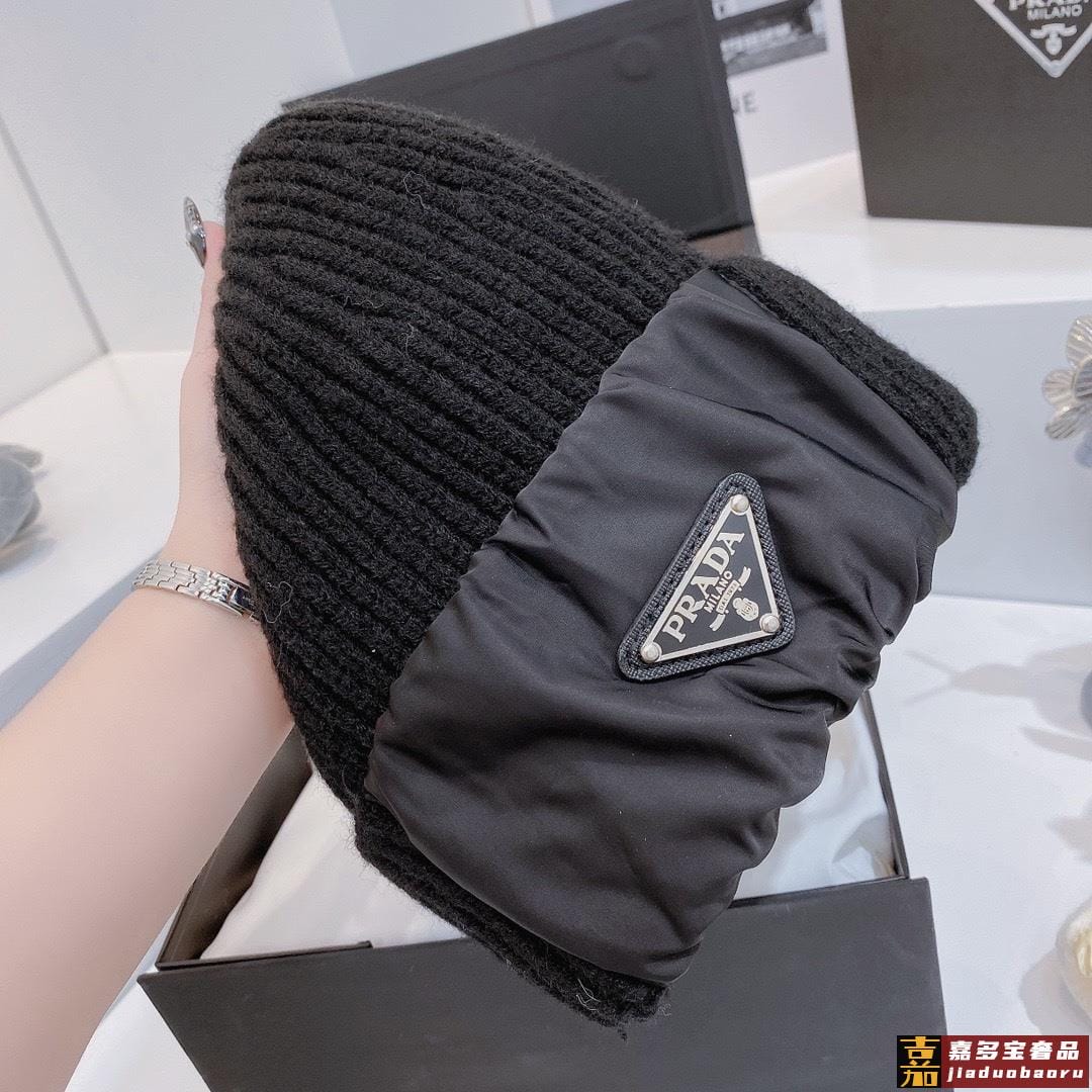 普拉达新款倒三角标针织羊毛毛线帽高品质定制羊毛简约帅气新标志