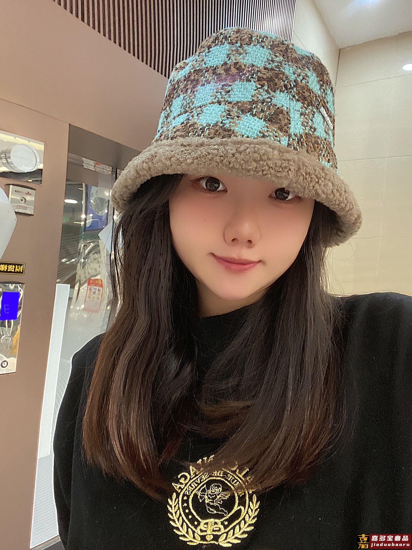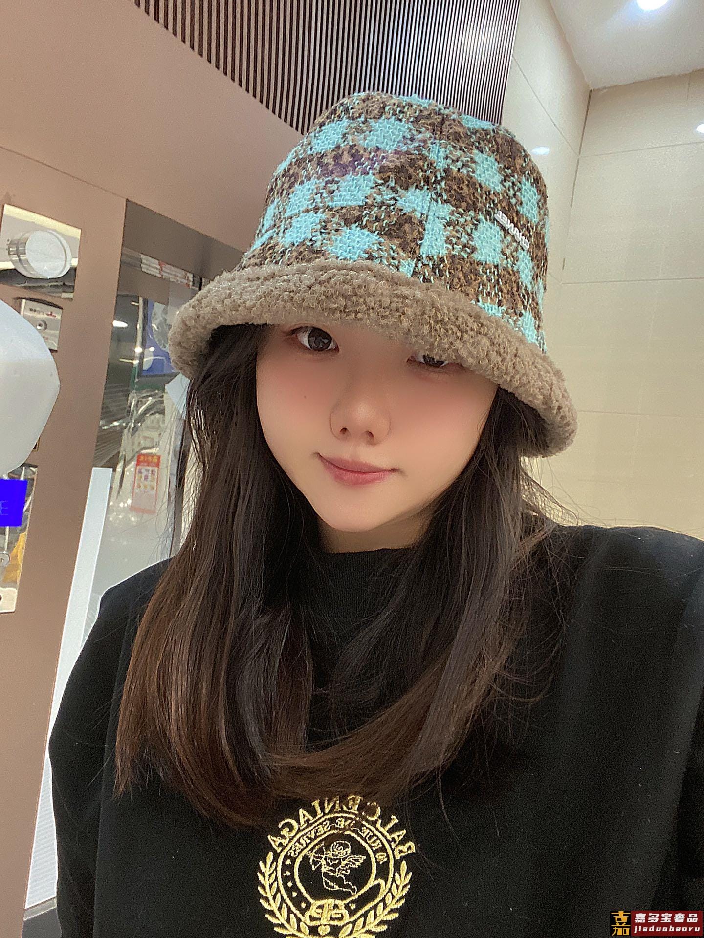 小香秋冬新款羊羔毛渔夫帽格子冷帽跑量个色品质性价比超高双面可