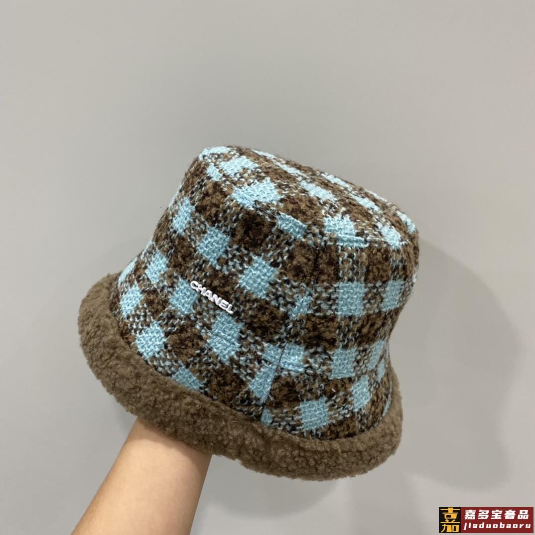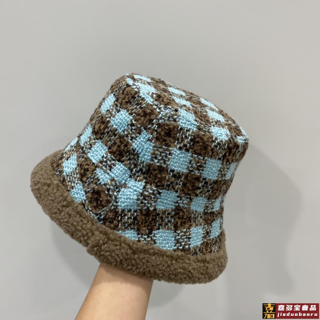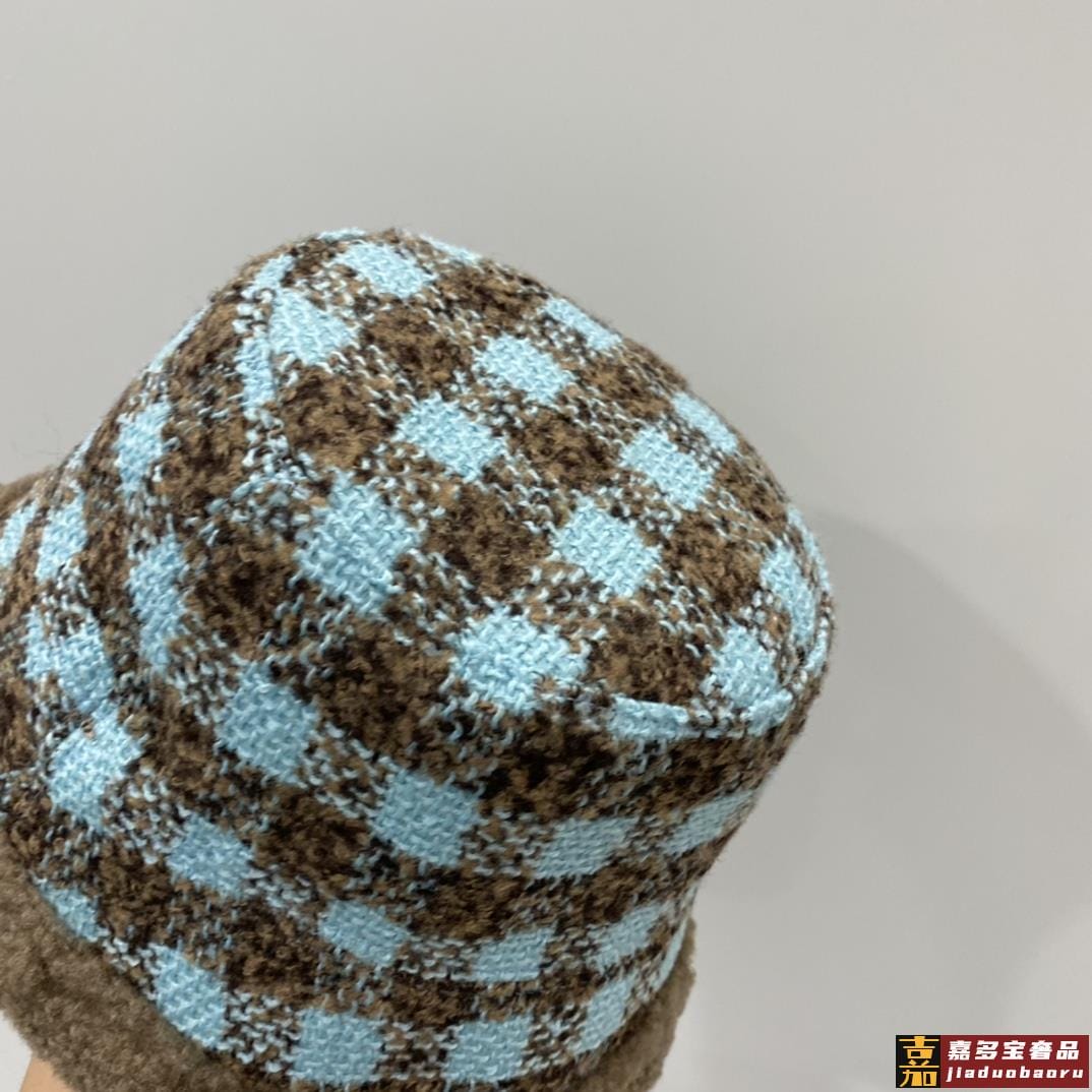 小香秋冬新款羊羔毛渔夫帽格子冷帽跑量三个色品质性价比超高双面