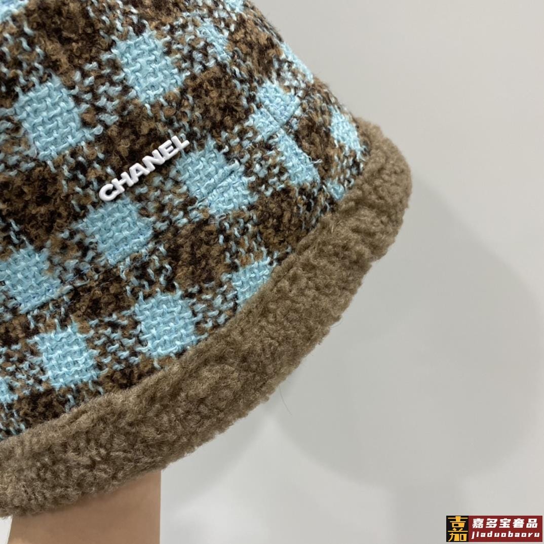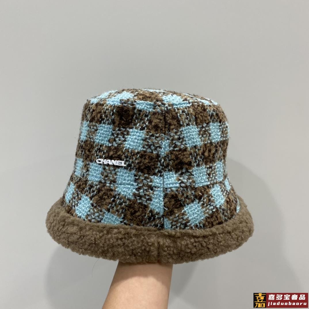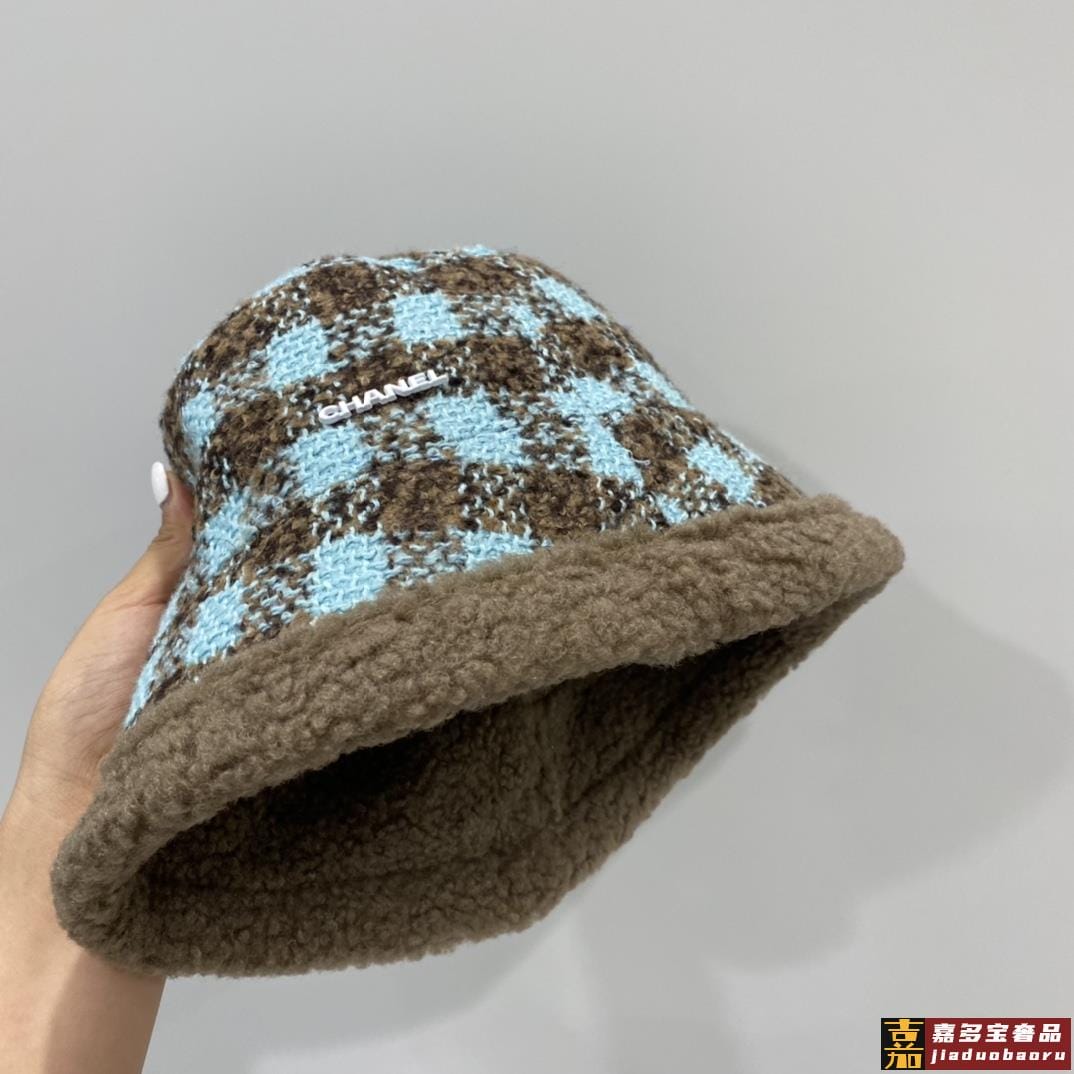 小香秋冬新款羊羔毛渔夫帽格子冷帽跑量三个色品质性价比超高双面