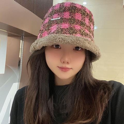 小香秋冬新款羊羔毛渔夫帽格子冷帽跑量个色品质性价比超高双面可