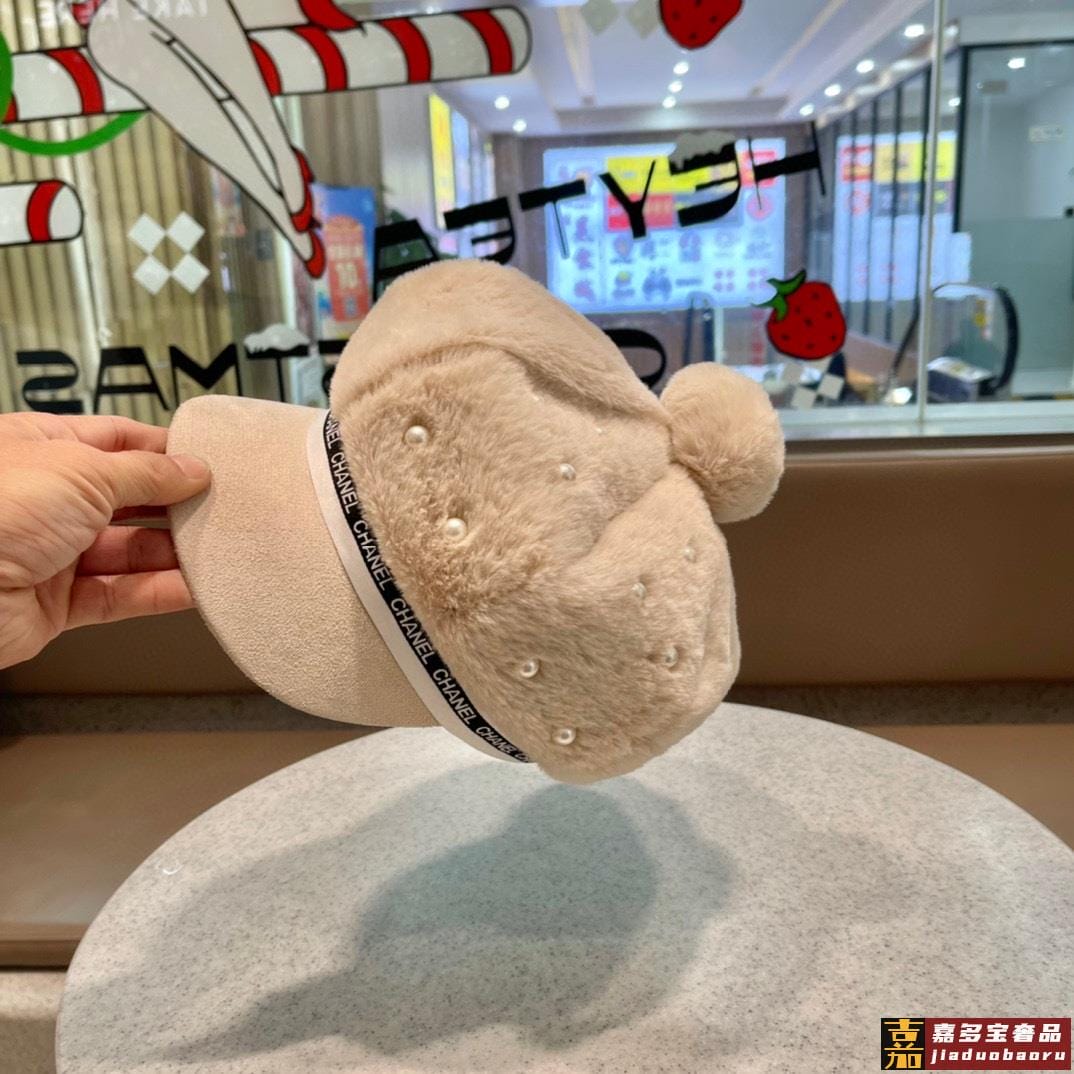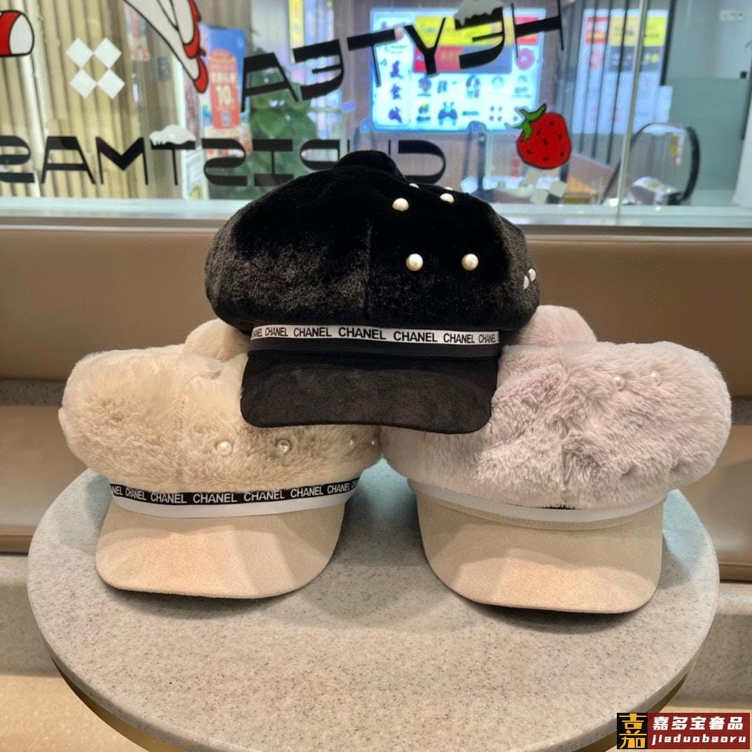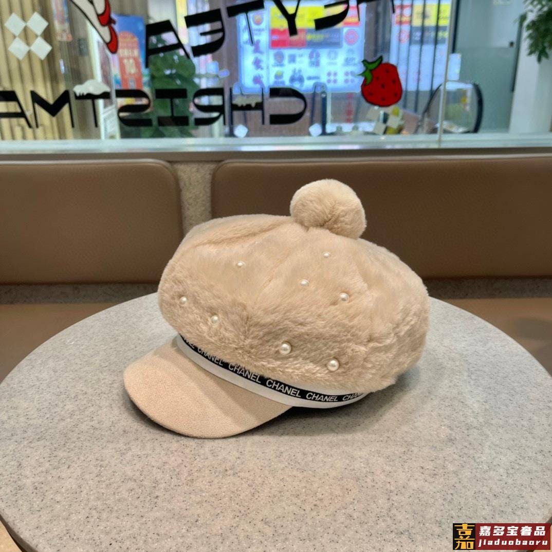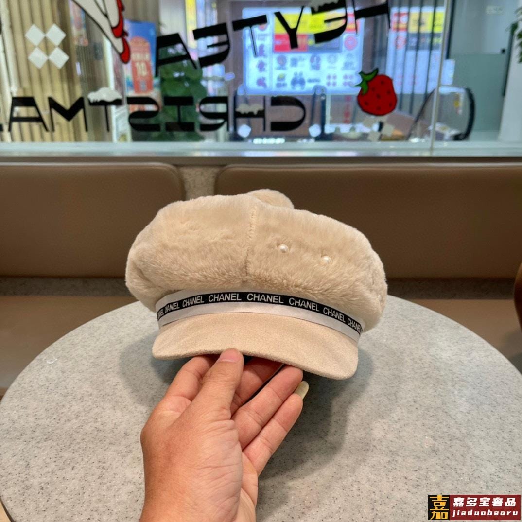 香奈儿秋冬新款羊绒毛优雅珍珠网红八角帽军帽韩版百搭毛绒保暖大