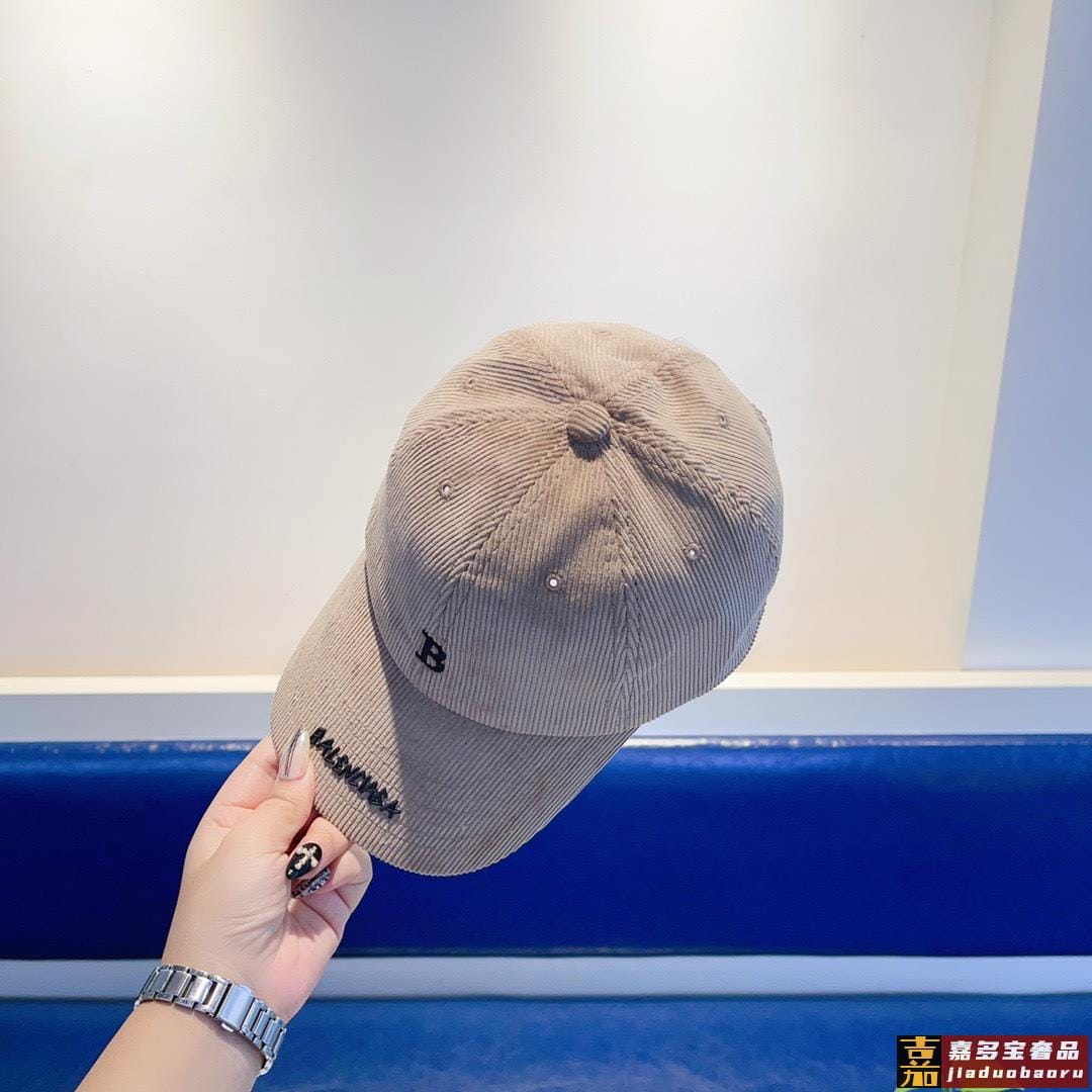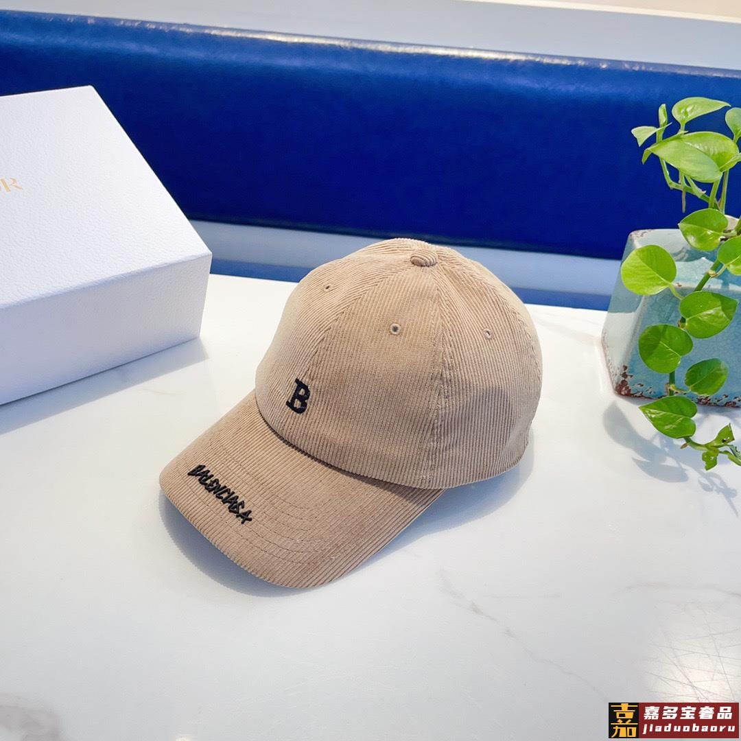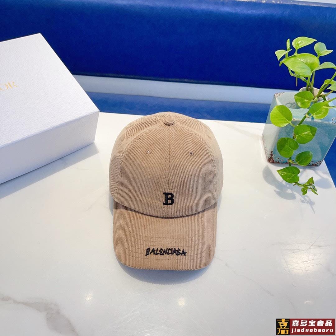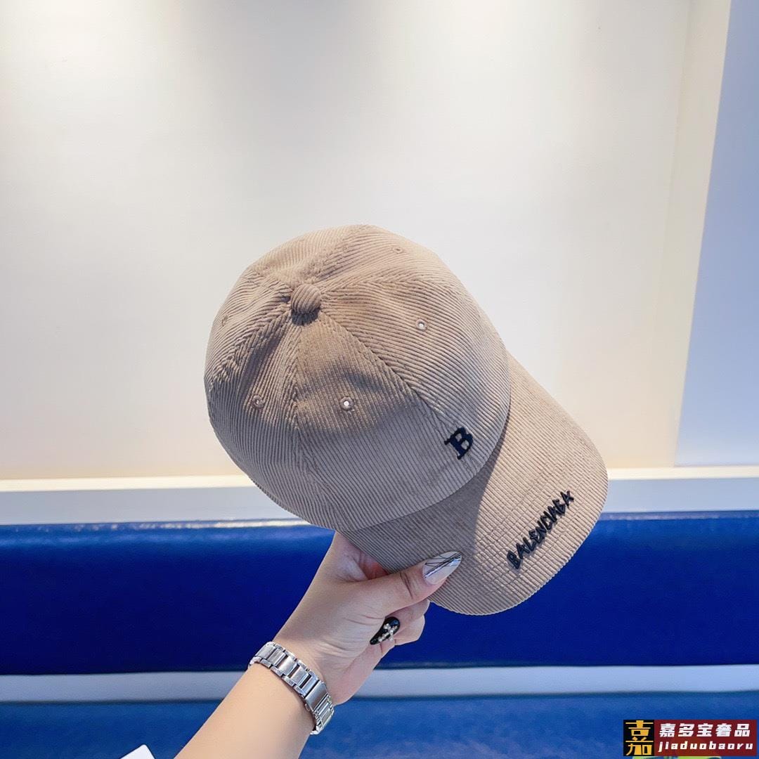 巴黎世家秋冬款灯芯绒字母棒球帽男女同款软顶棒球帽