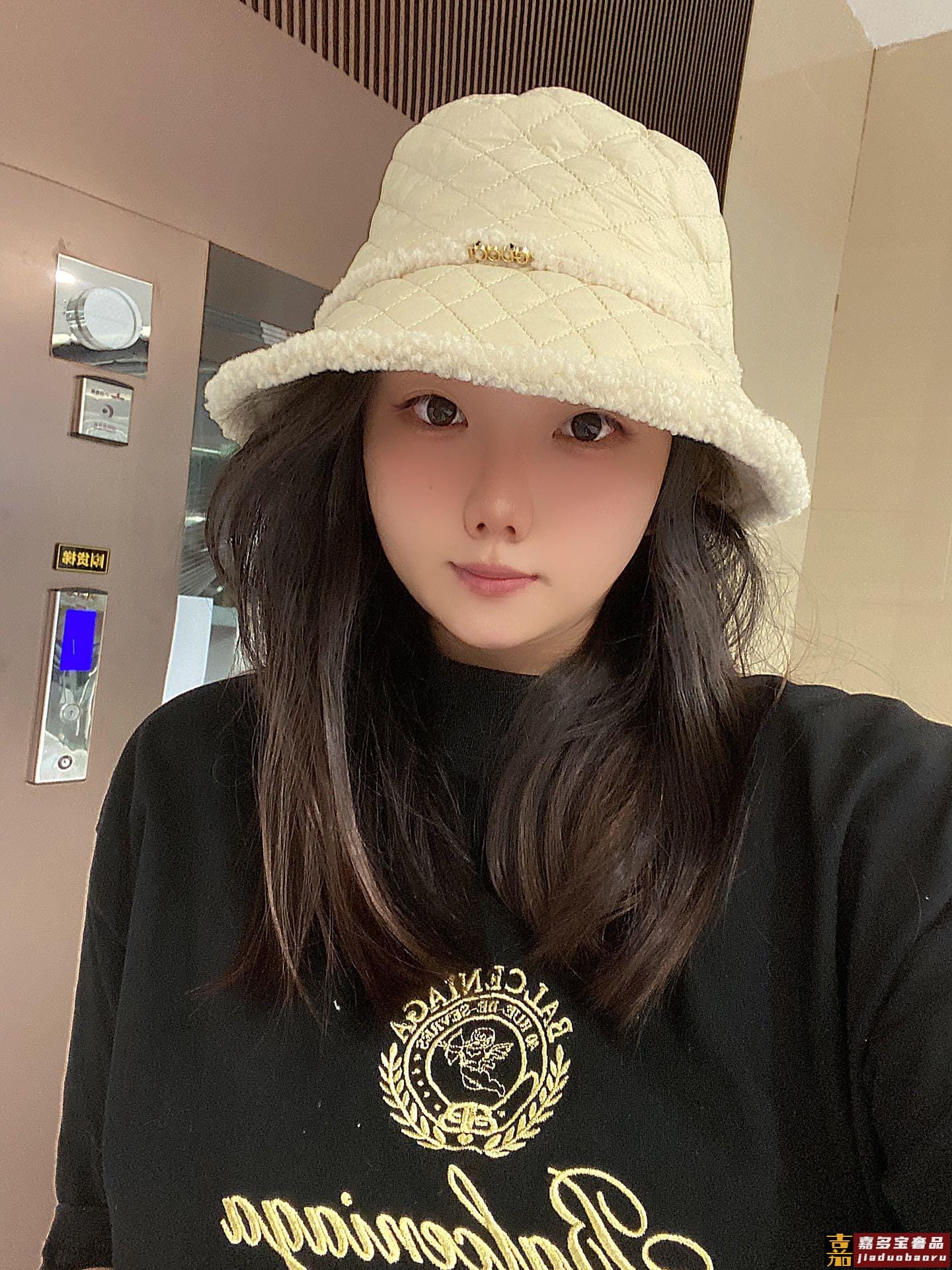 古奇秋冬新款渔夫帽菱格礼帽搭衣保暖必备头围