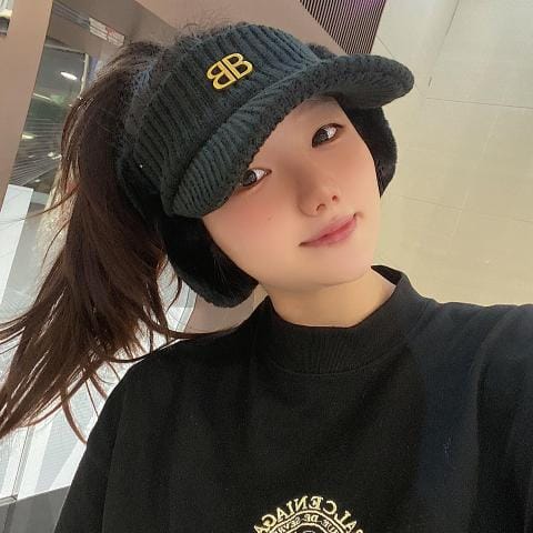 针织兔毛空顶帽戴上额头保暖完全吹不到风对大头高发际线的集美也