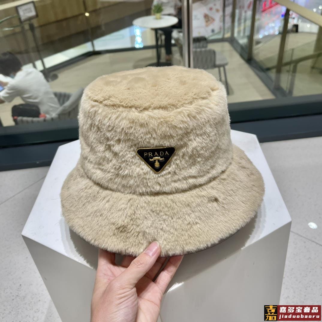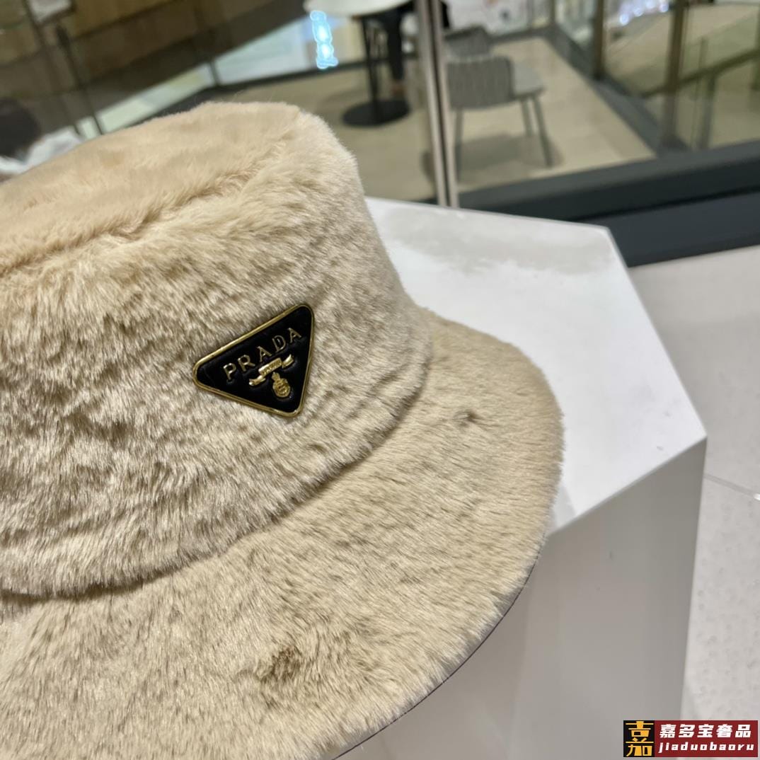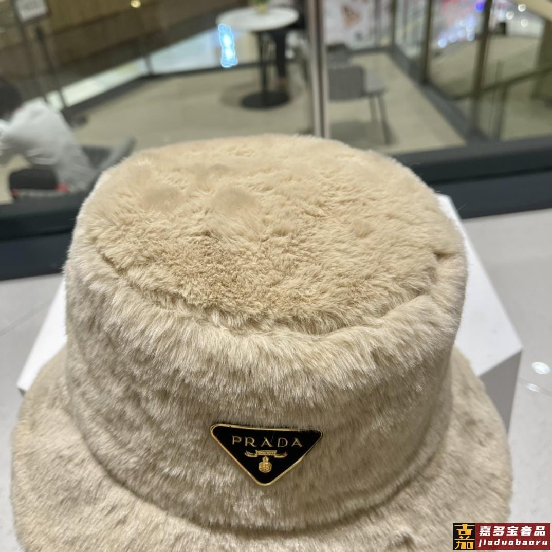 普拉达官方新款渔夫帽兔毛面料三角标渔夫帽