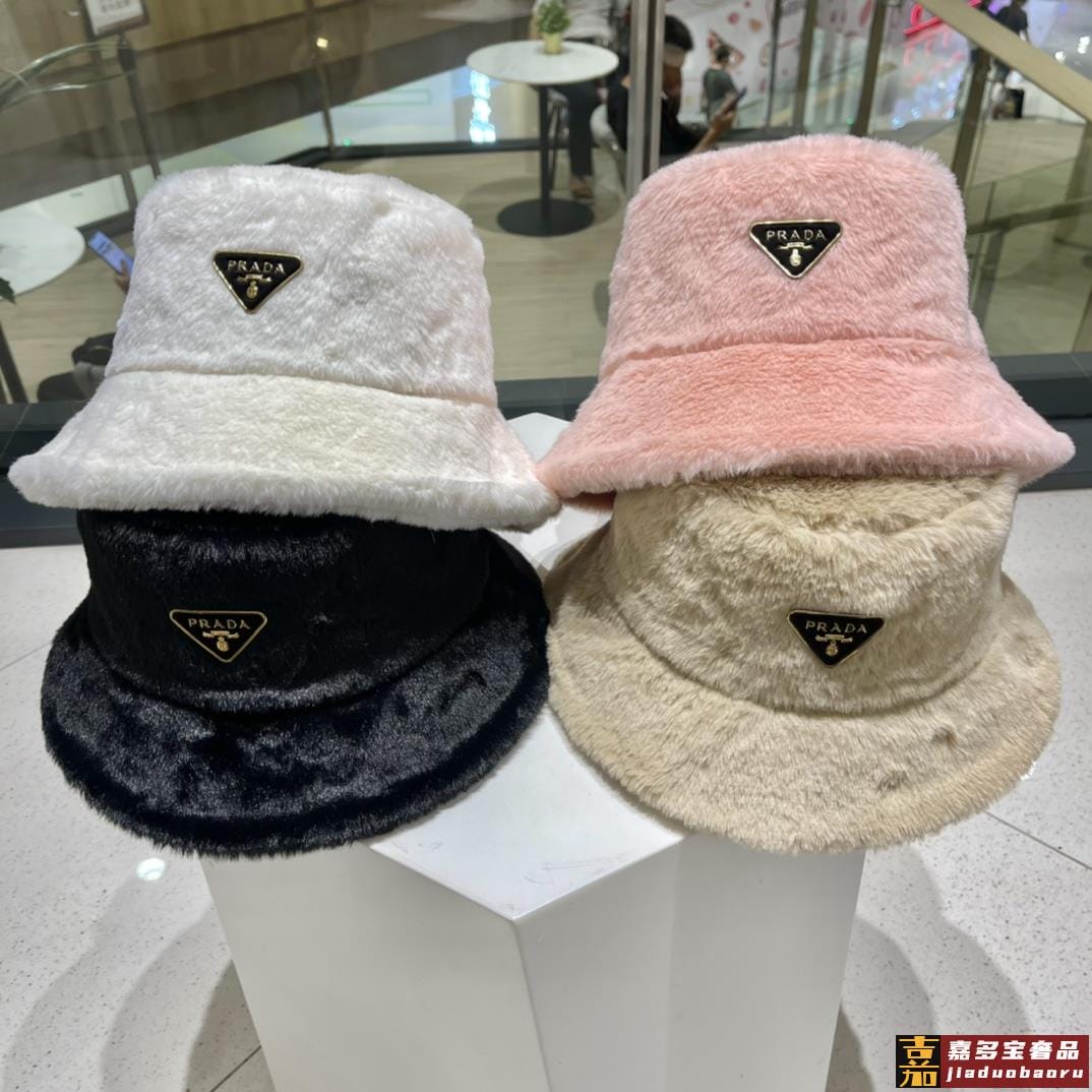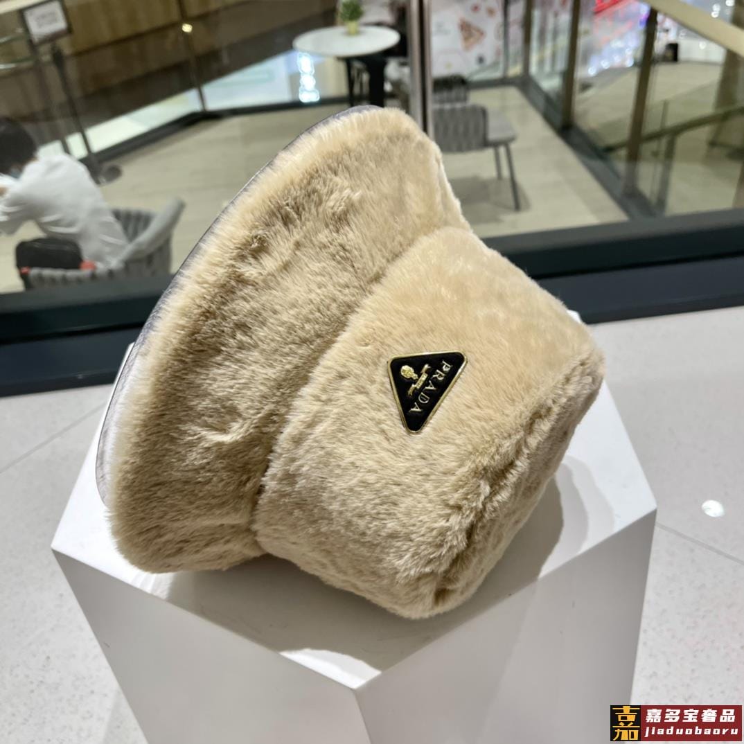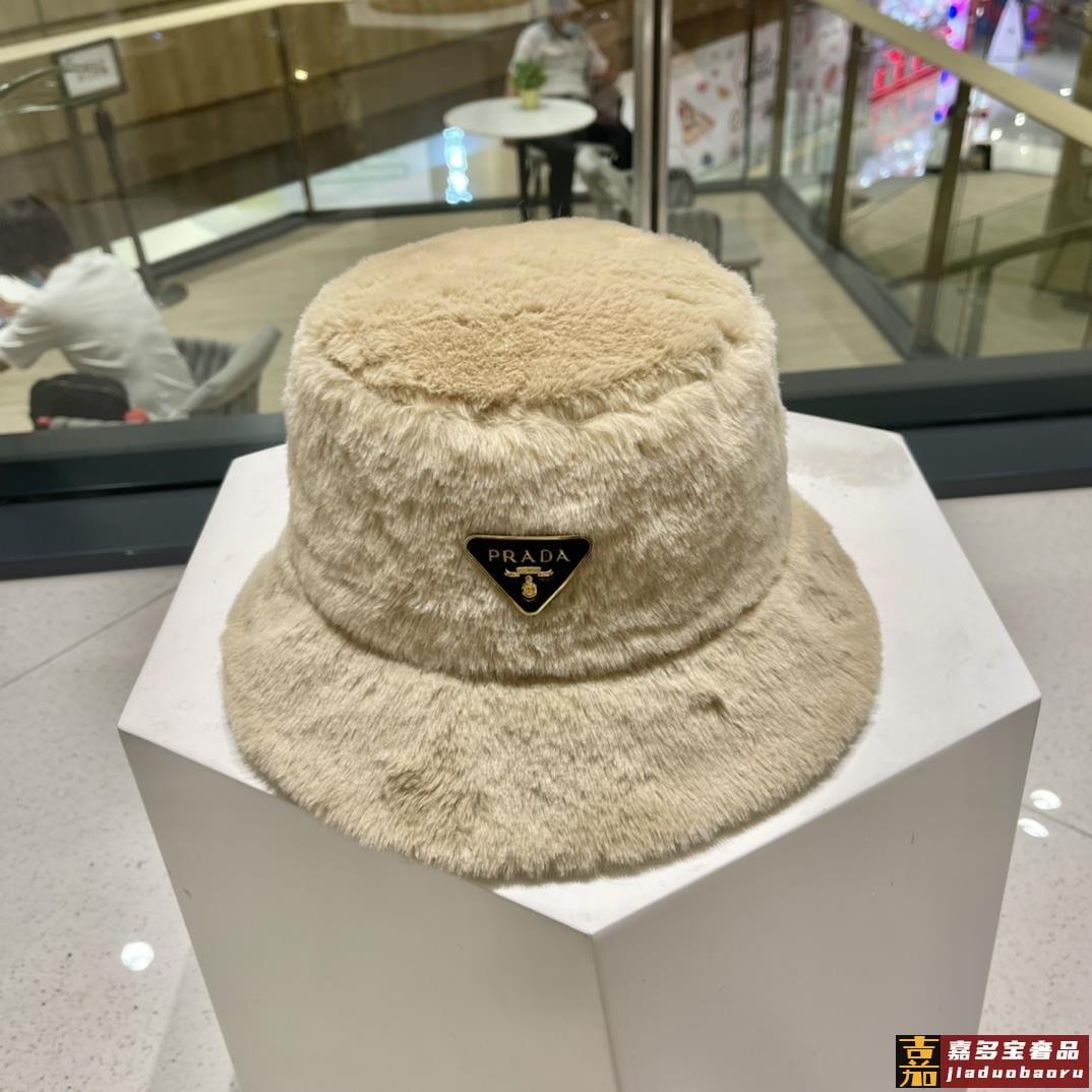 普拉达官方新款渔夫帽兔毛面料三角标渔夫帽