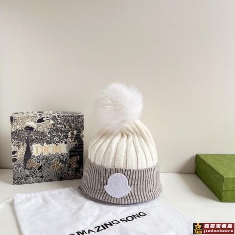 特配防尘袋蒙口秋冬新款小香风撞色狐狸毛球毛线帽超火爆质感一流