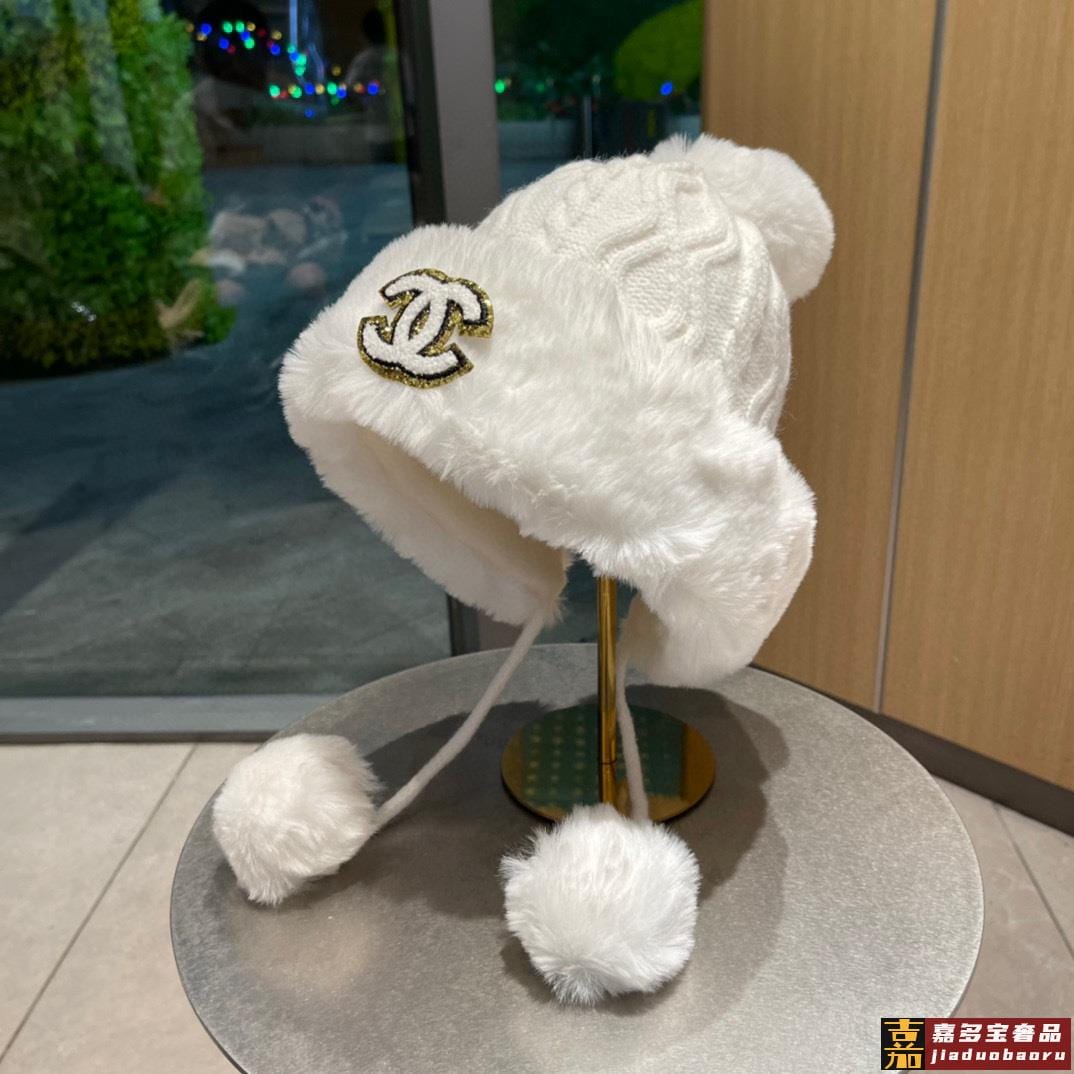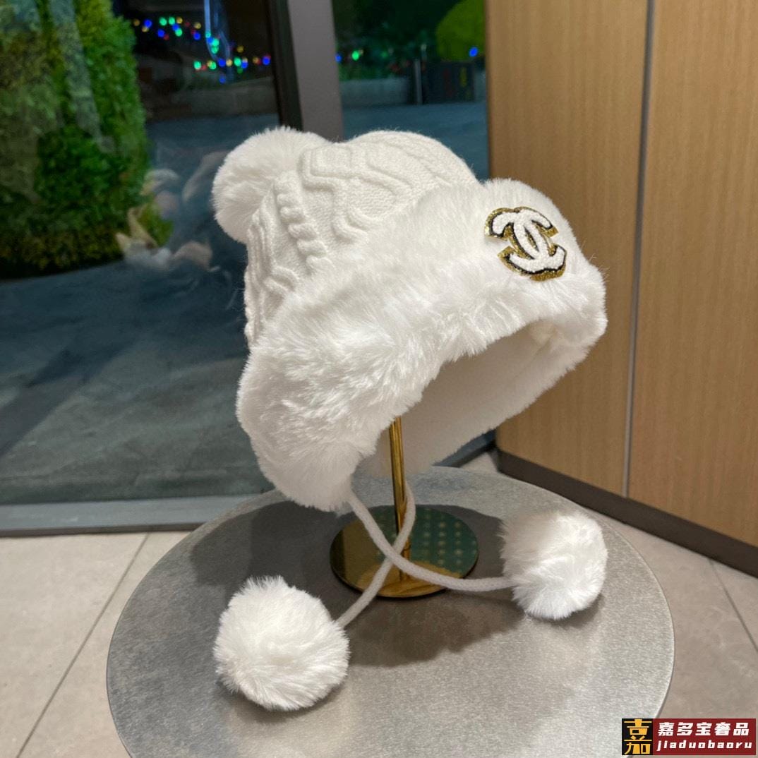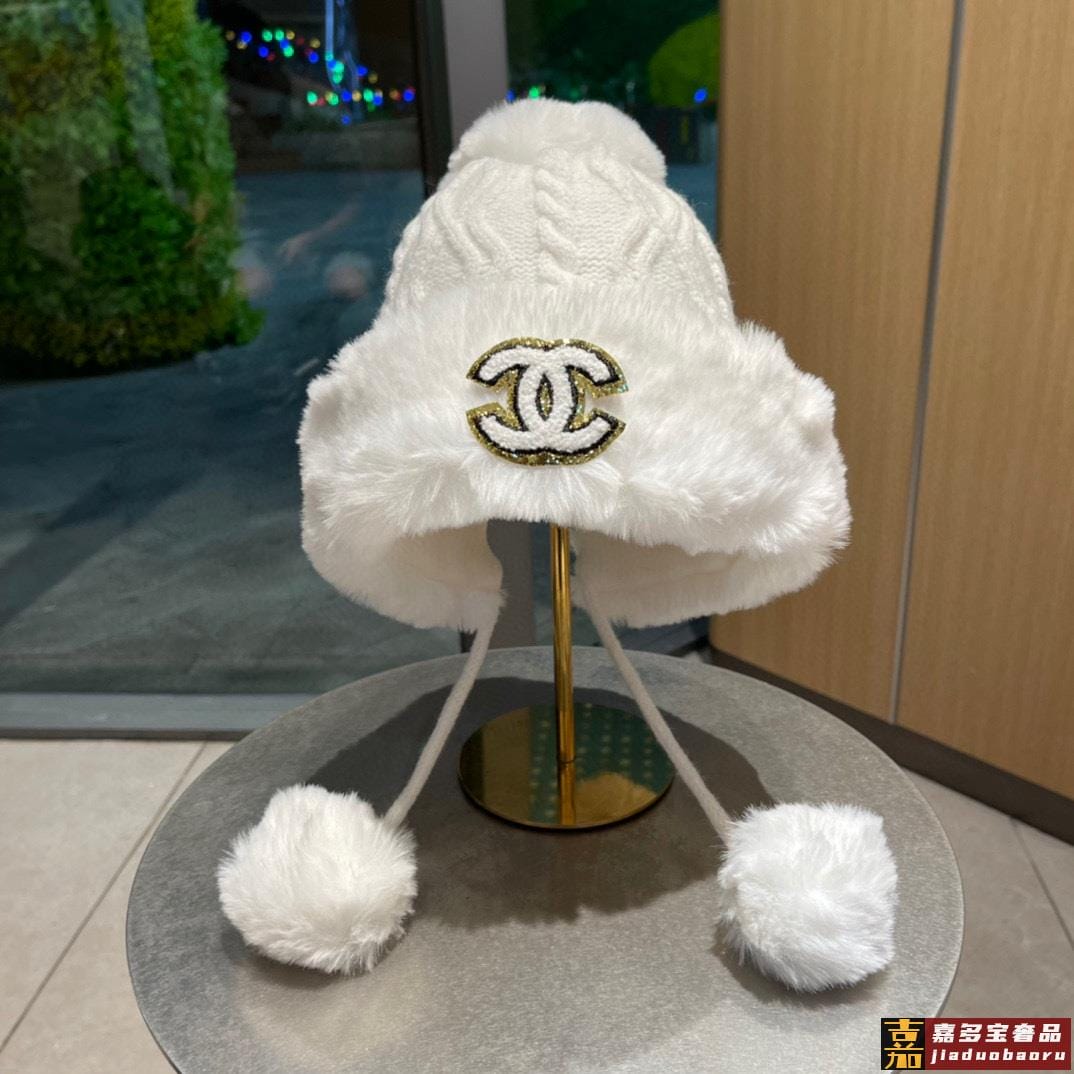 香奈儿新款秋冬毛球麻花针织帽毛毛公主冬季保暖弹力毛线帽女防风