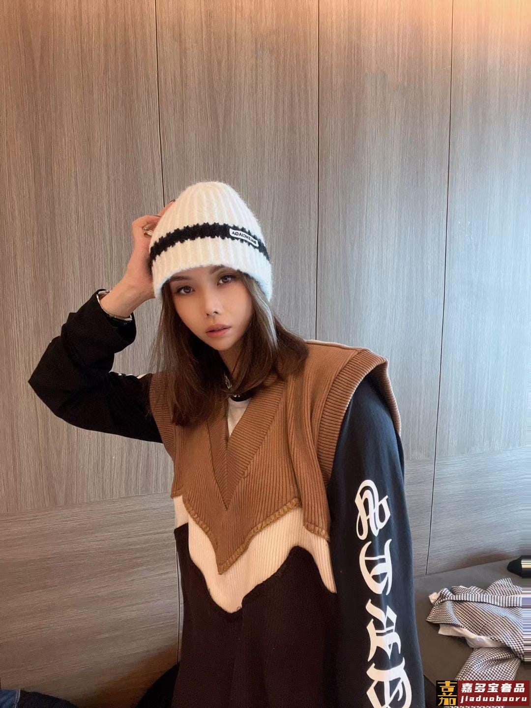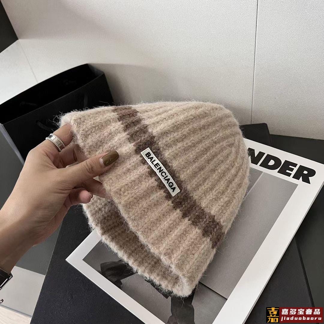 新款复古拼色针织羊毛毛线帽甜酷神仙小单品条纹撞色设计非常贴合