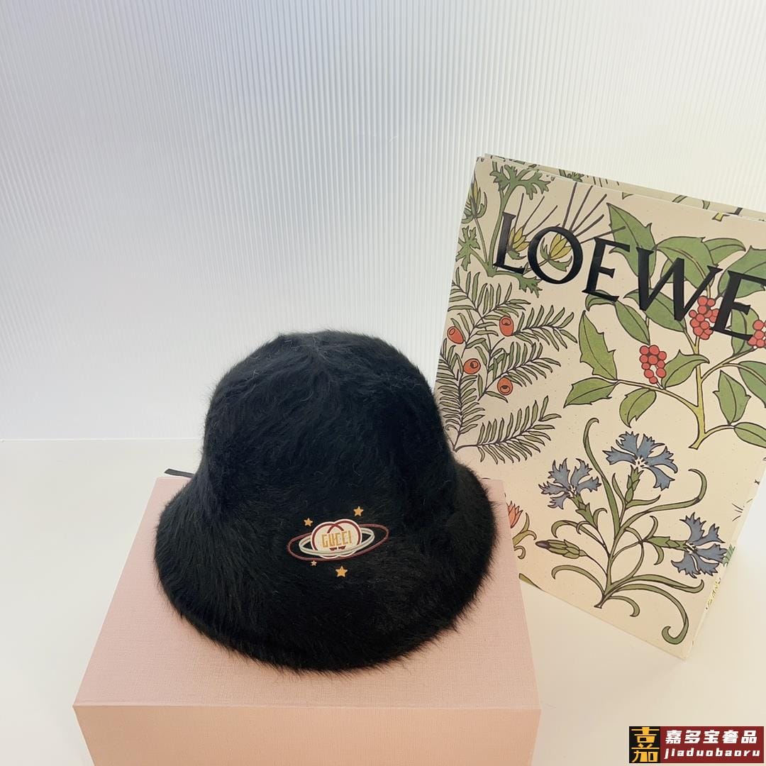 特配防尘袋古驰秋冬新款毛绒大牌渔夫帽小香风大牌出街优雅不失个