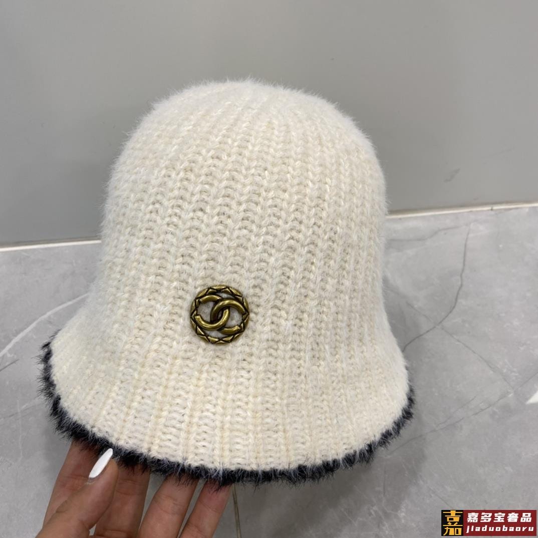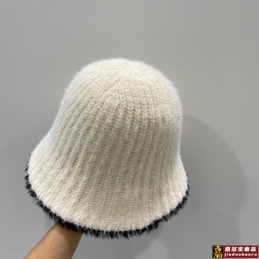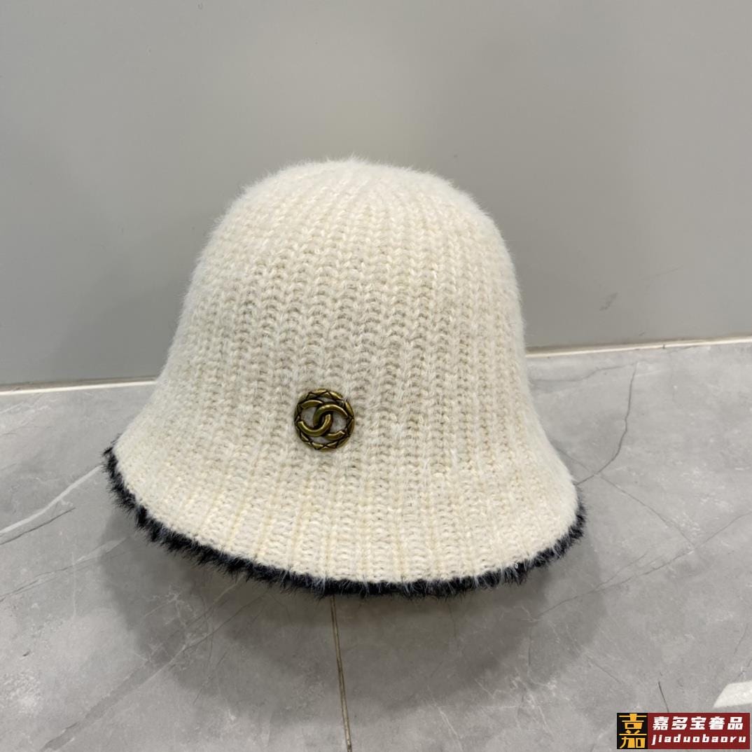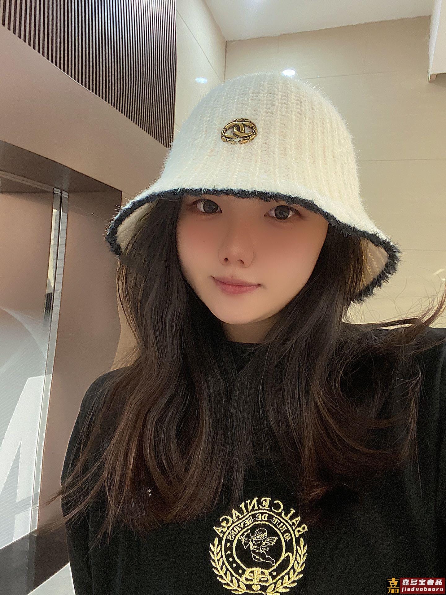 香奈儿秋冬新款针织毛线帽手抓渔夫帽简约百搭款黑米两色