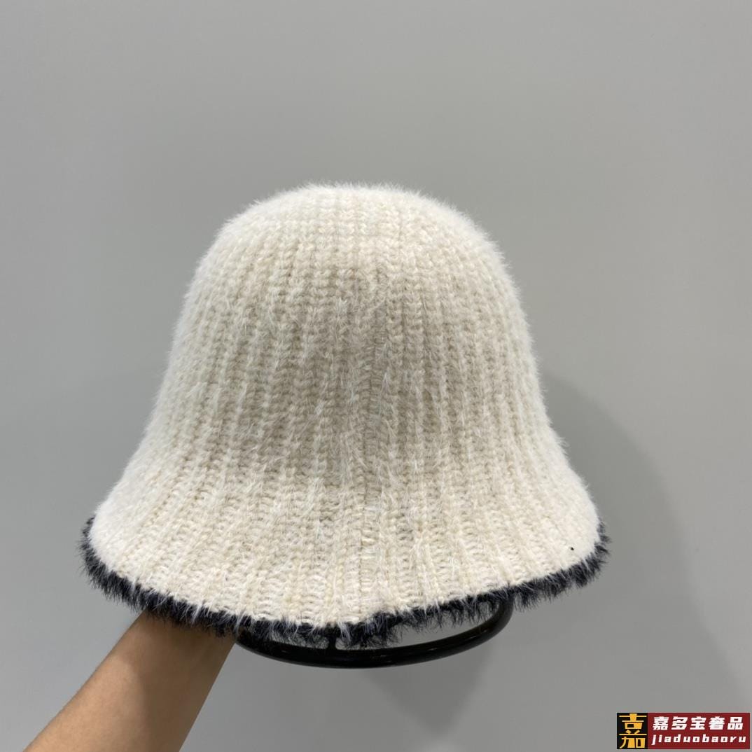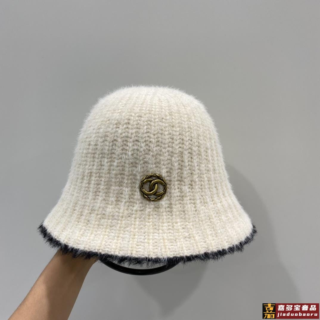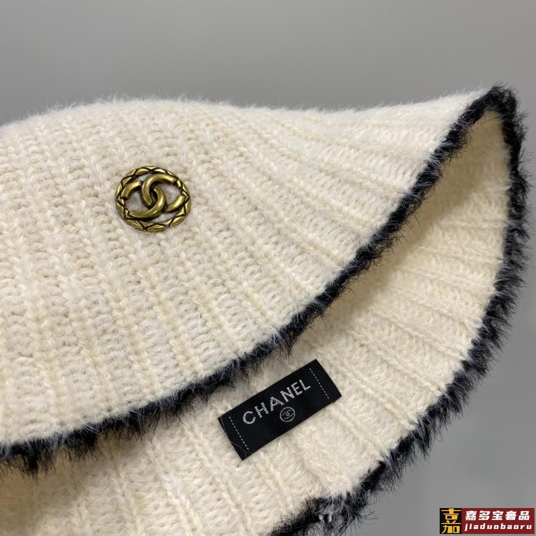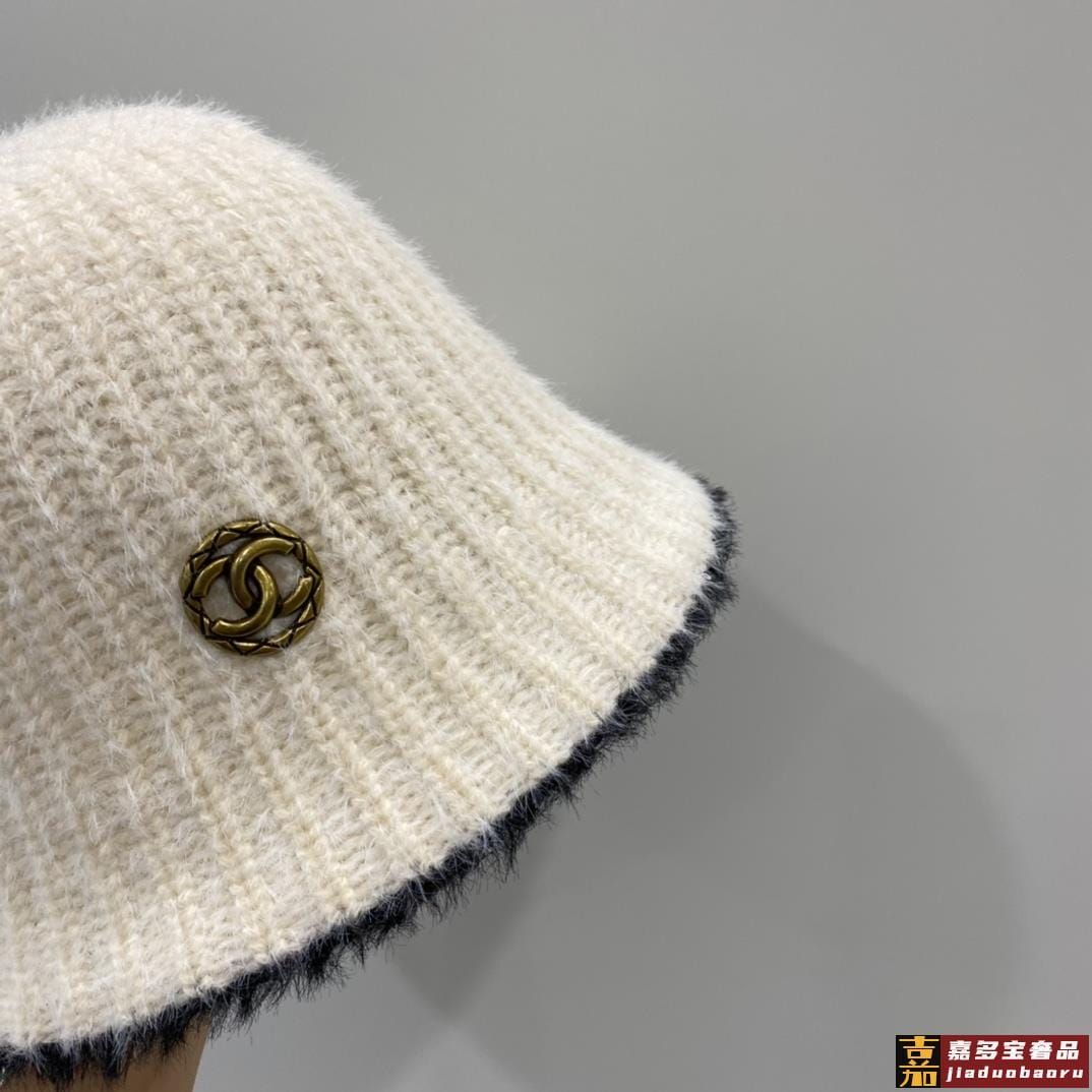 香奈儿秋冬新款针织毛线帽手抓渔夫帽简约百搭款黑米两色