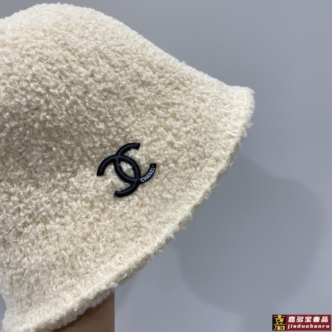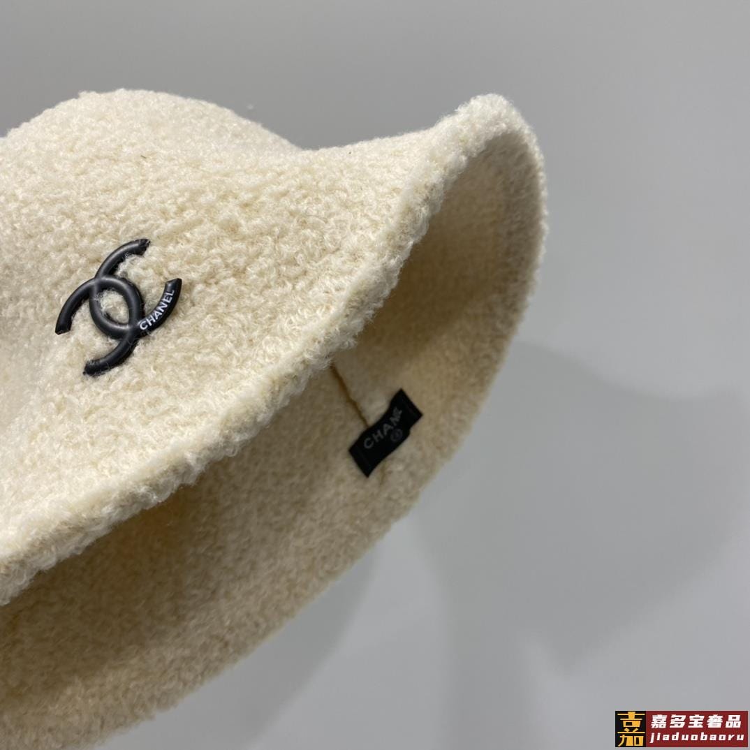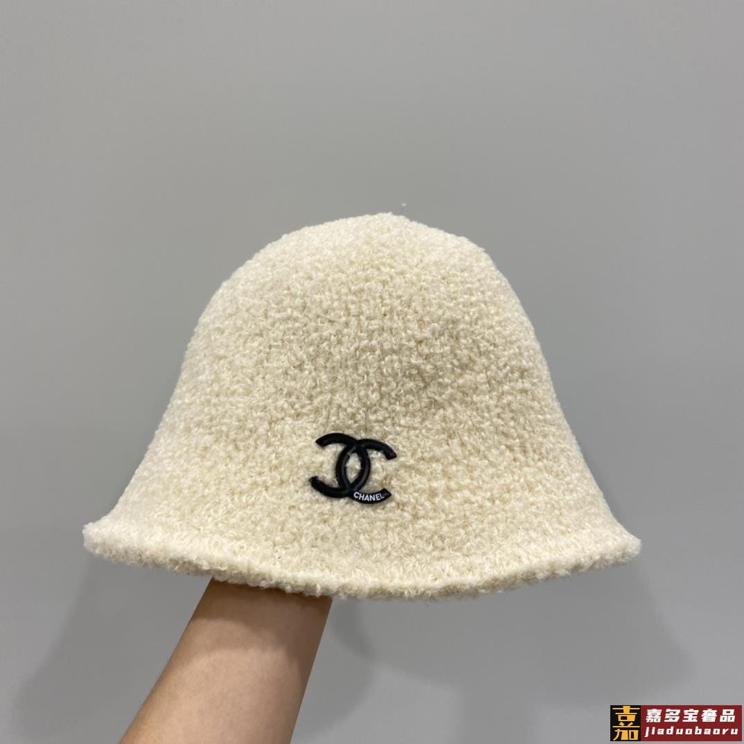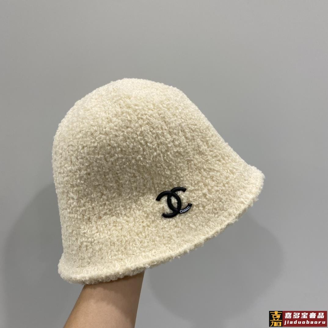 香奈儿秋冬新款针织毛线帽手抓渔夫帽简约百搭款黑米两色