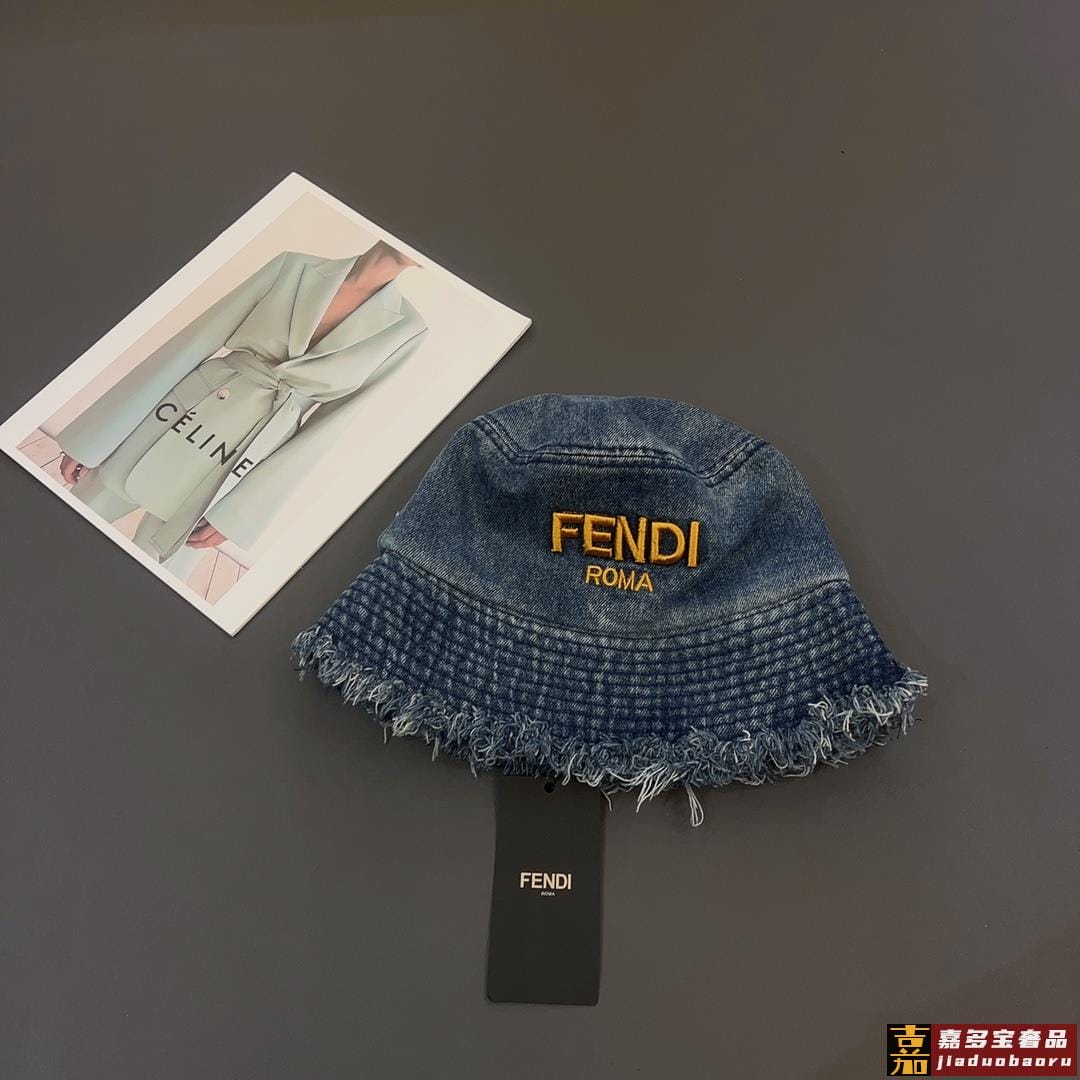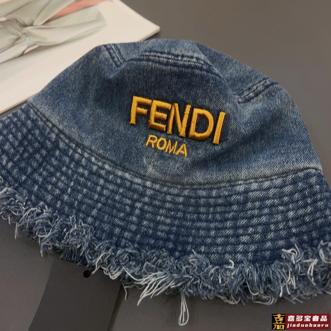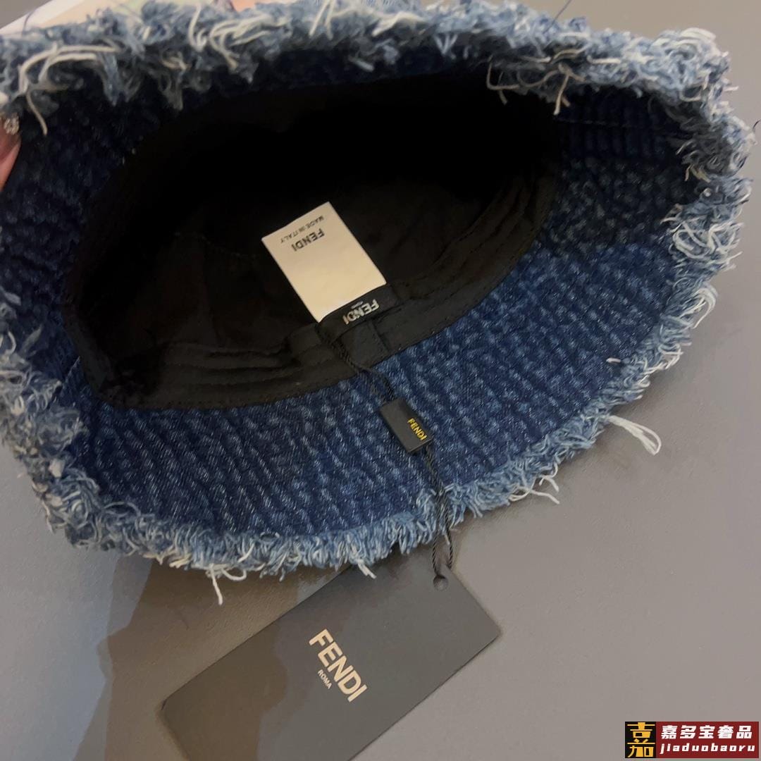 芬迪新款渔夫帽牛仔飞边遮阳帽可折叠头围