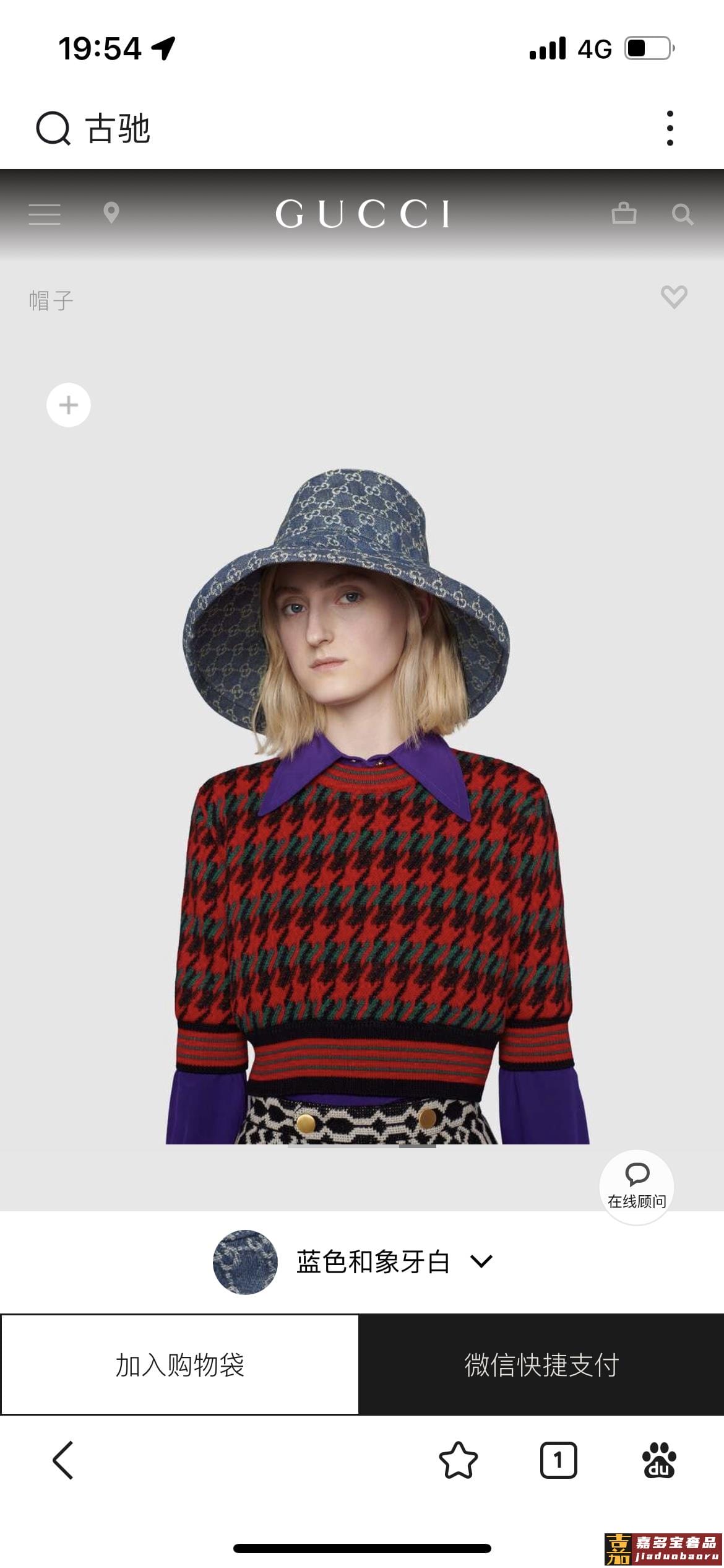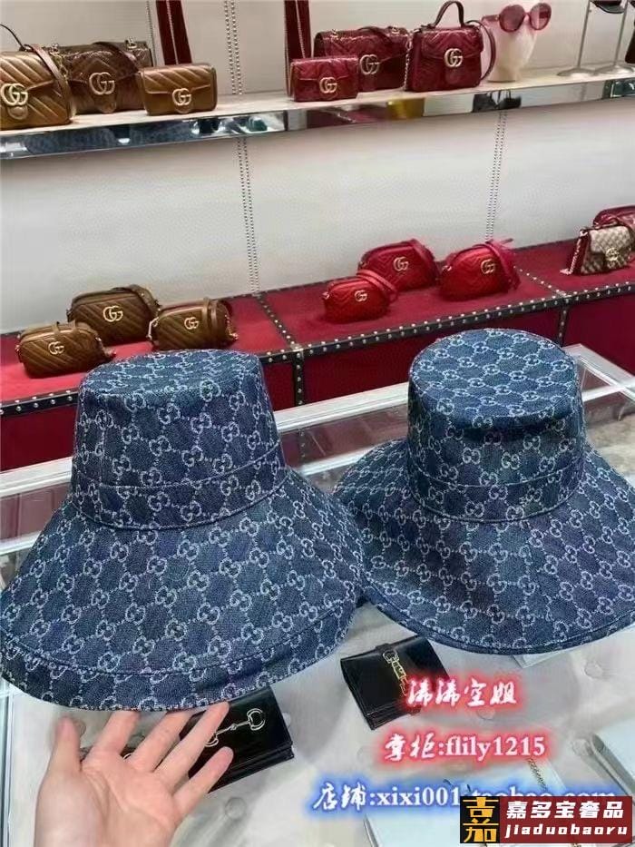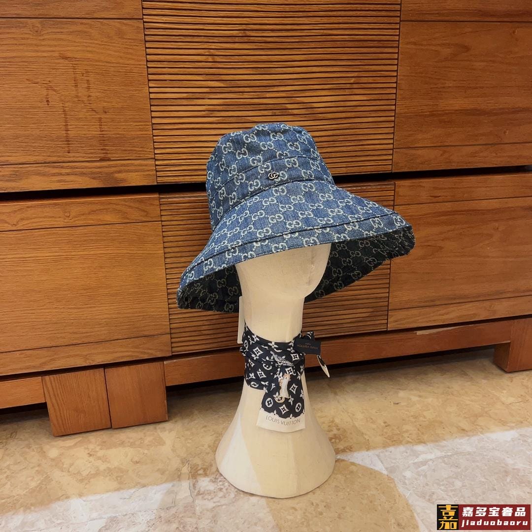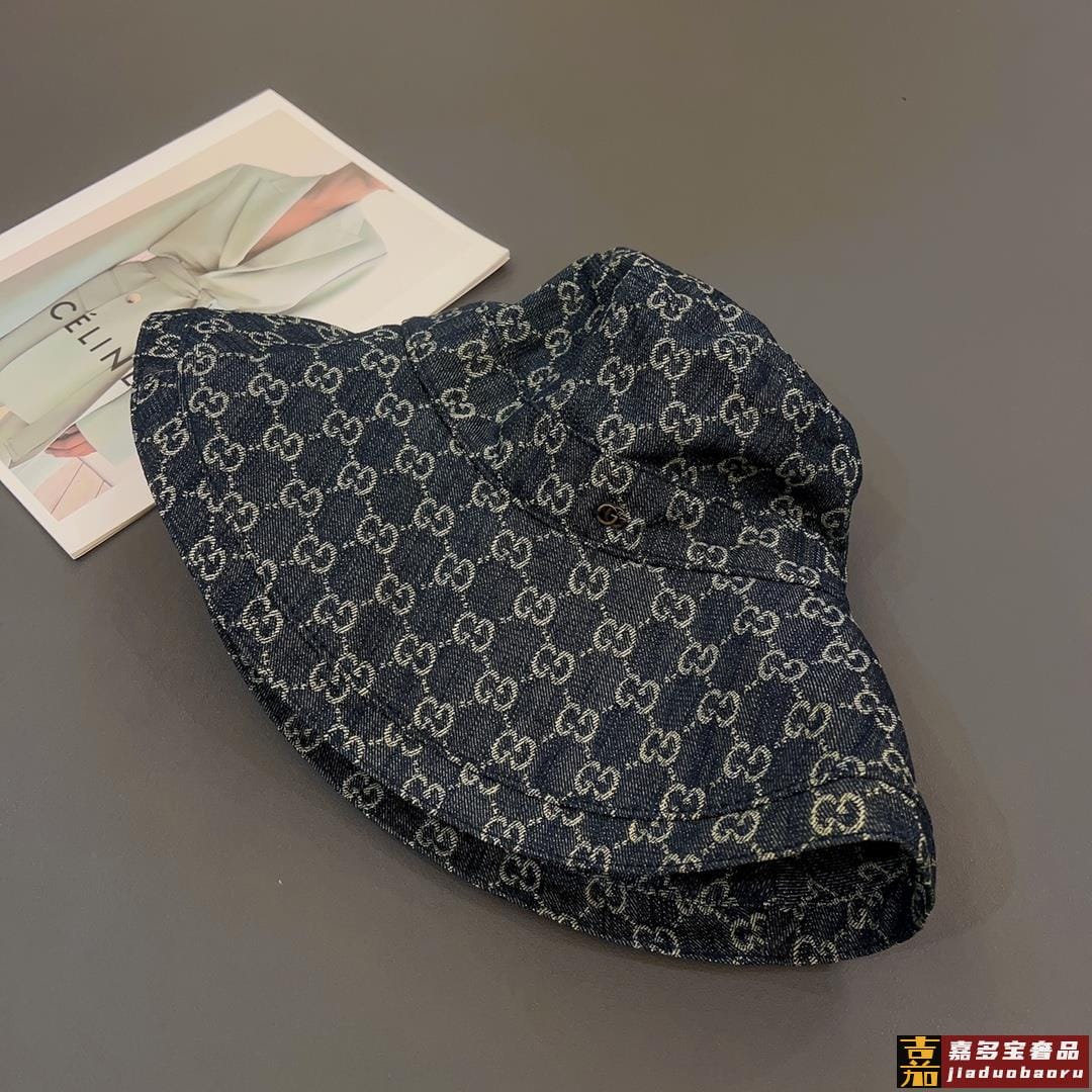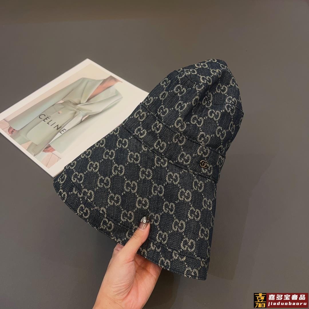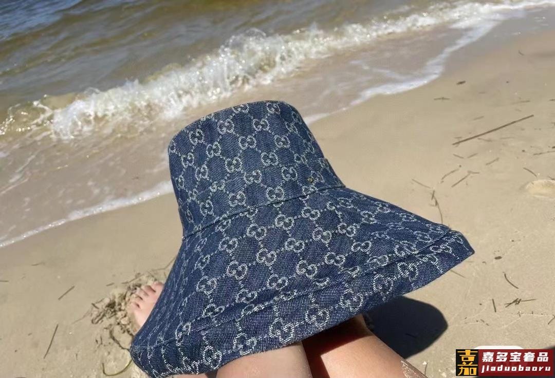古琦新款渔夫帽高版本牛仔遮阳帽可折叠头围