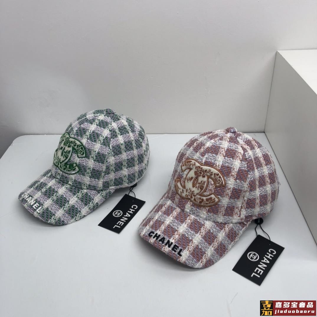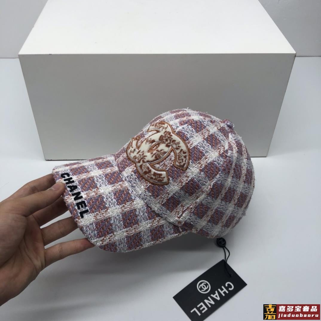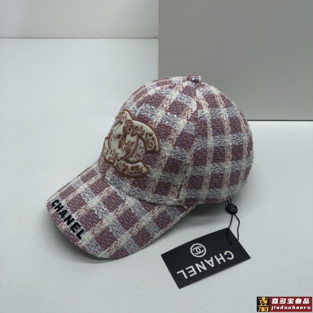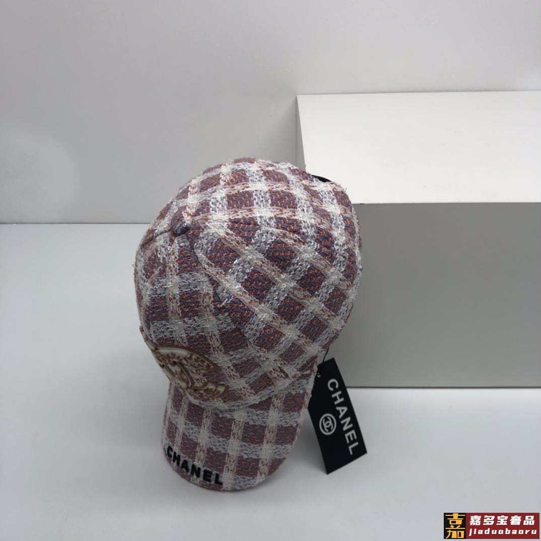 香奈儿秋冬新品精细刺绣棒球帽鸭舌帽格纹大气休闲时尚潮流又有范