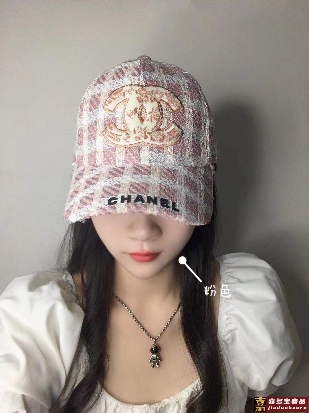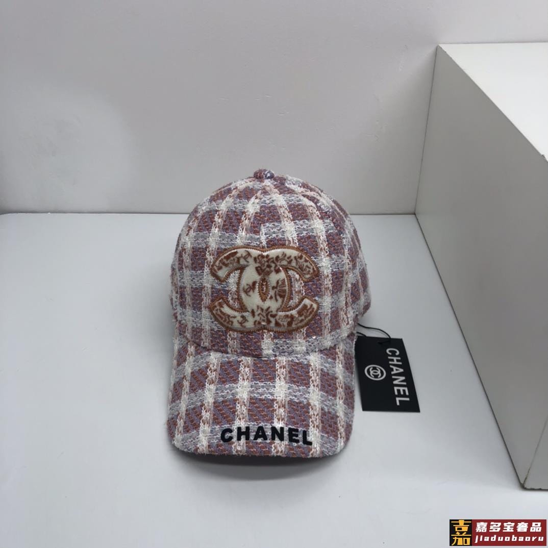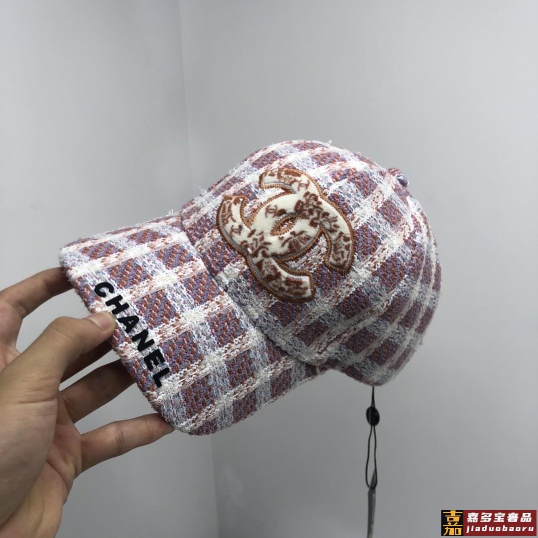 香奈儿秋冬新品精细刺绣棒球帽鸭舌帽格纹大气休闲时尚潮流又有范