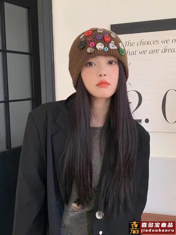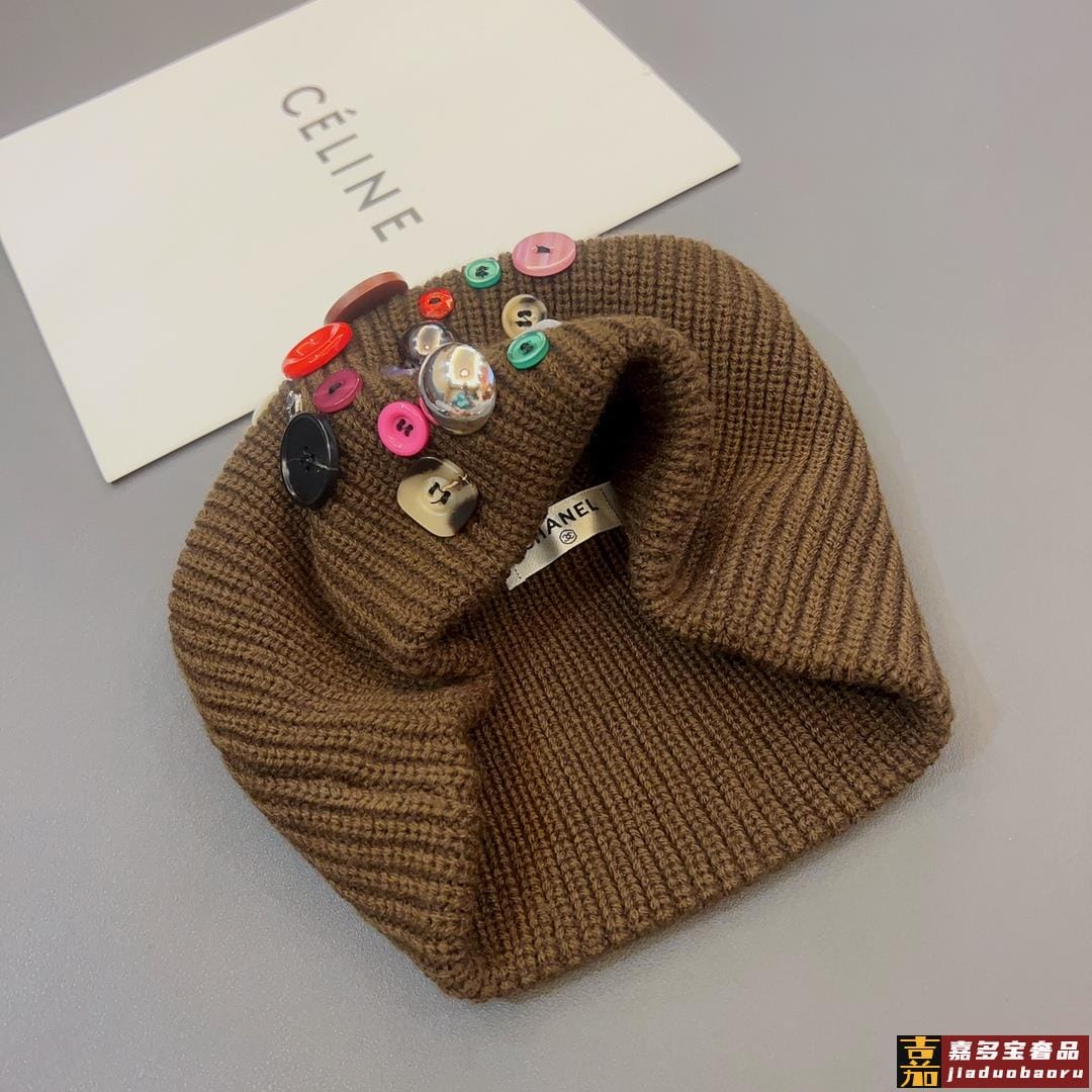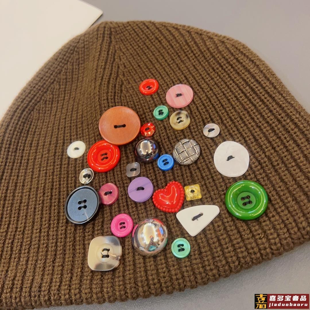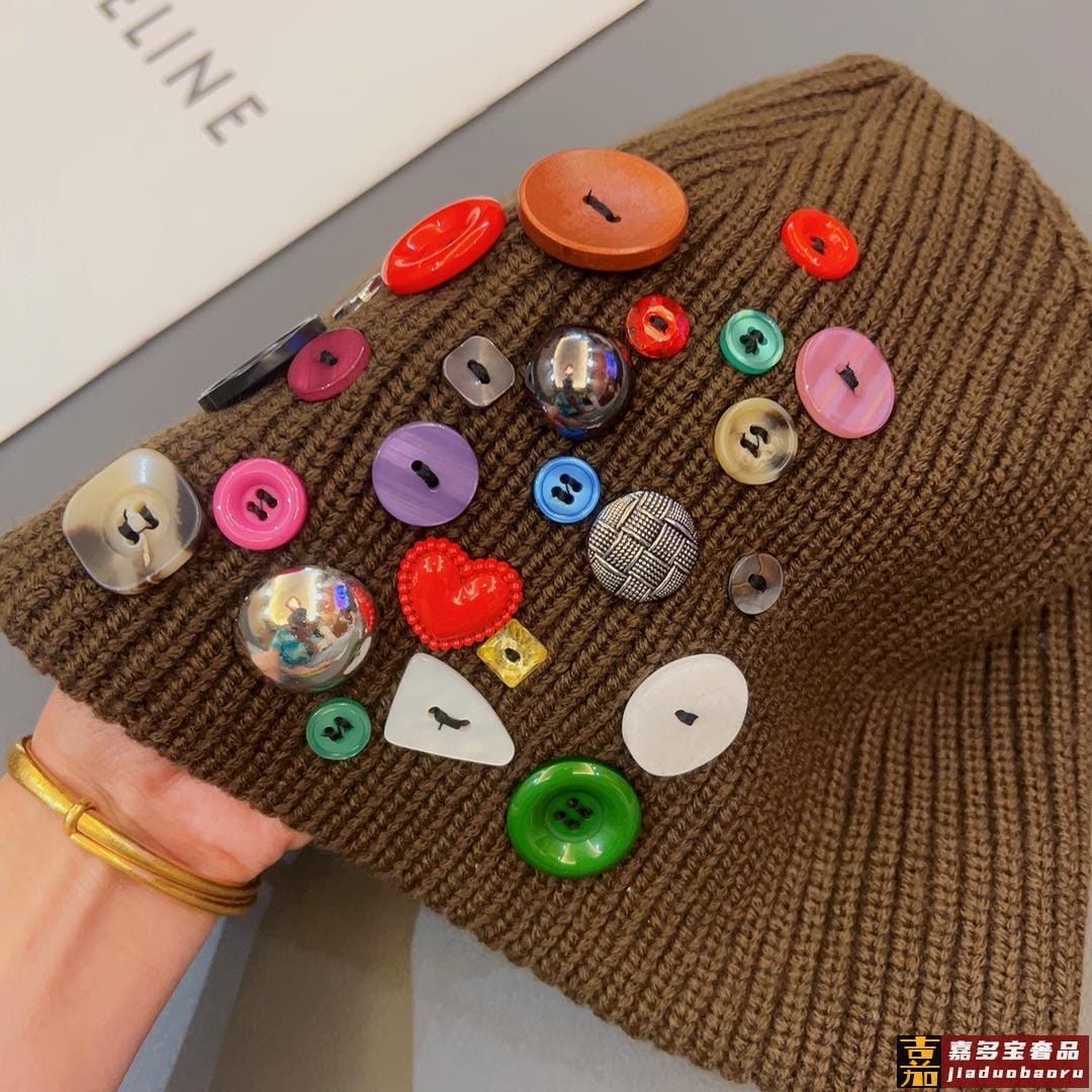 香奈儿纯手工五彩纽扣缝制针织帽秋冬必备帽子之一设计感十足每个